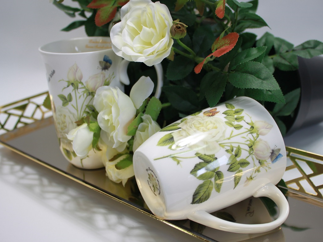 Elegancki kubek o pojemności 400ml to doskonały wybór dla miłośników wysokiej jakości produktów. Wysokiej jakości porcelana kostna bone china zapewnia trwałość i jakość, a ręczne formowanie i wypalanie w specjalnych piecach d odaje im niepowtarzalnego charakteru. W celu zachowania oryginalnego wzoru oraz złotych zdobień zaleca się mycie ręczne użyciem delikatnego detergentu.