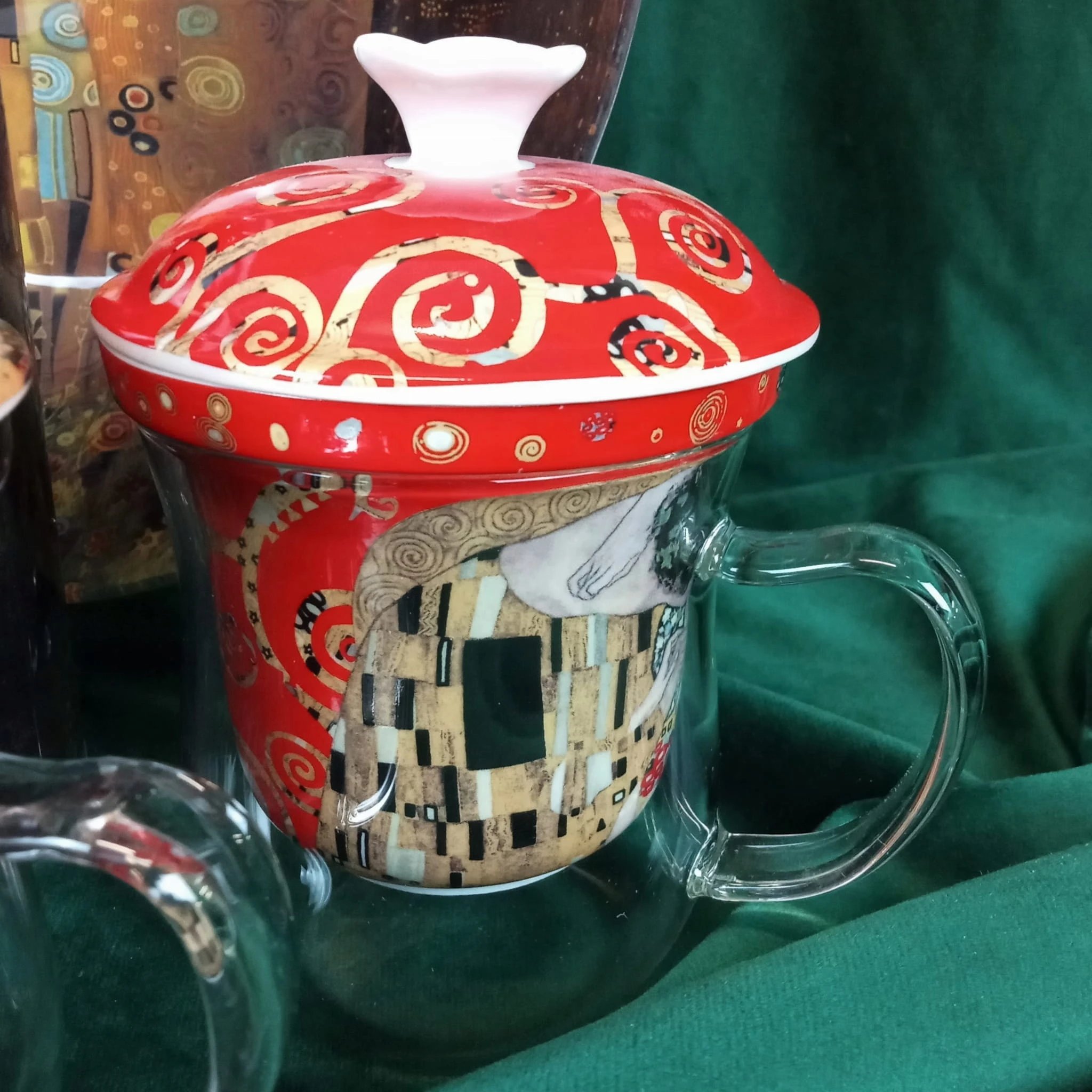 Kubek ze sławnym obrazem "Pocałunek" będzie idealnym prezentem dla miłośników twórczości Gustava Klimta lub sztuki secesji. Będzie też świetnym prezentem dla pasjonata herbat i innych ciepłych napojów.