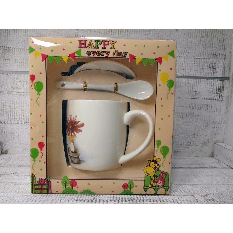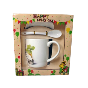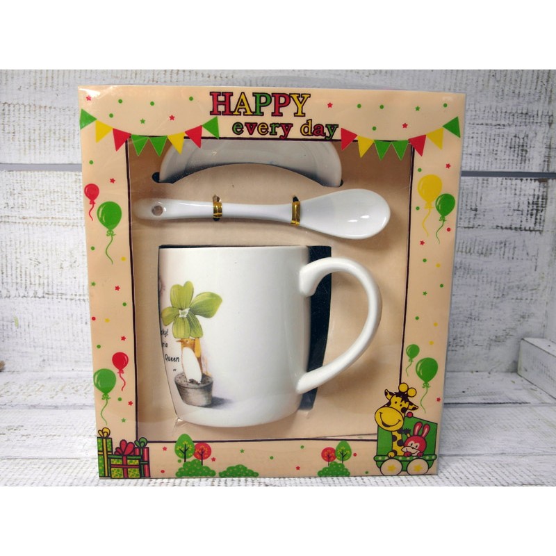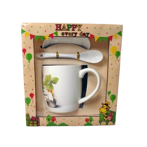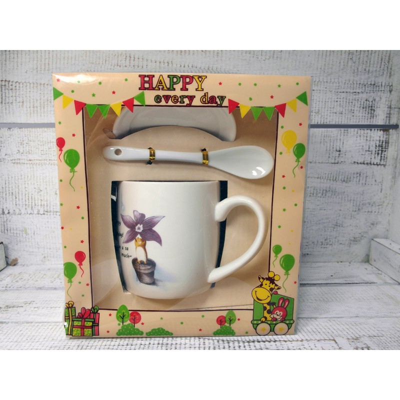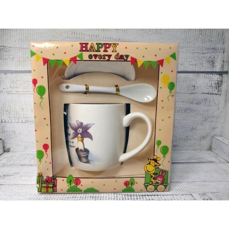Ceramiczny kubek z łyżeczką i podstawką. Będzie idealny na napoje w jesienne dni i nie tylko. Polecamy na prezent lub dodatek do prezentu na każdą okazję. Idealny na walentynki