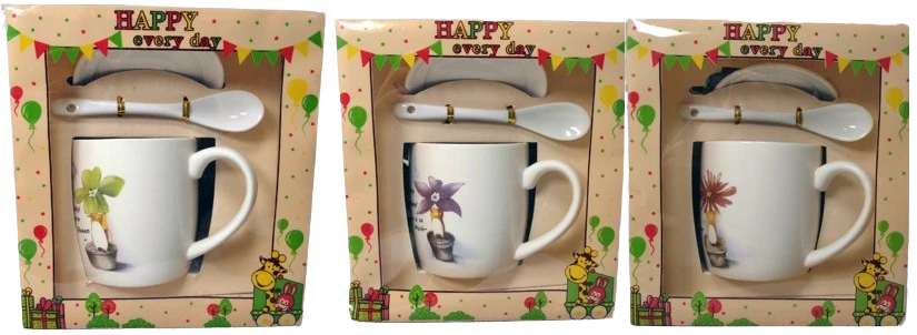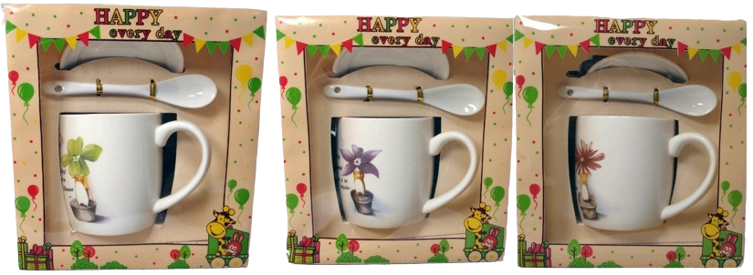 KUBEK Z ŁYŻECZKĄ I PODSTAWKĄ MIX WZORÓW