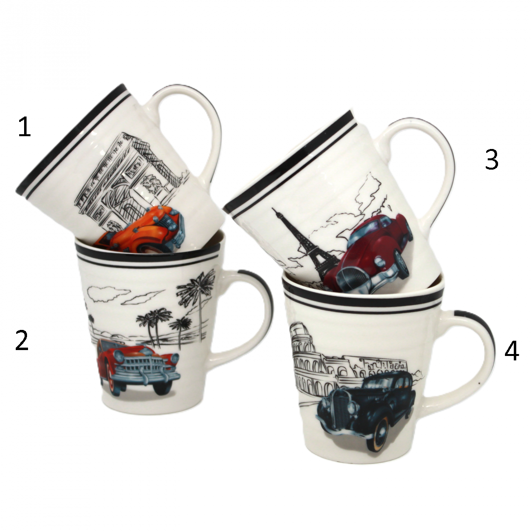 KUBEK Z SAMOCHODEM RETRO MIX WZORÓW 300ML
