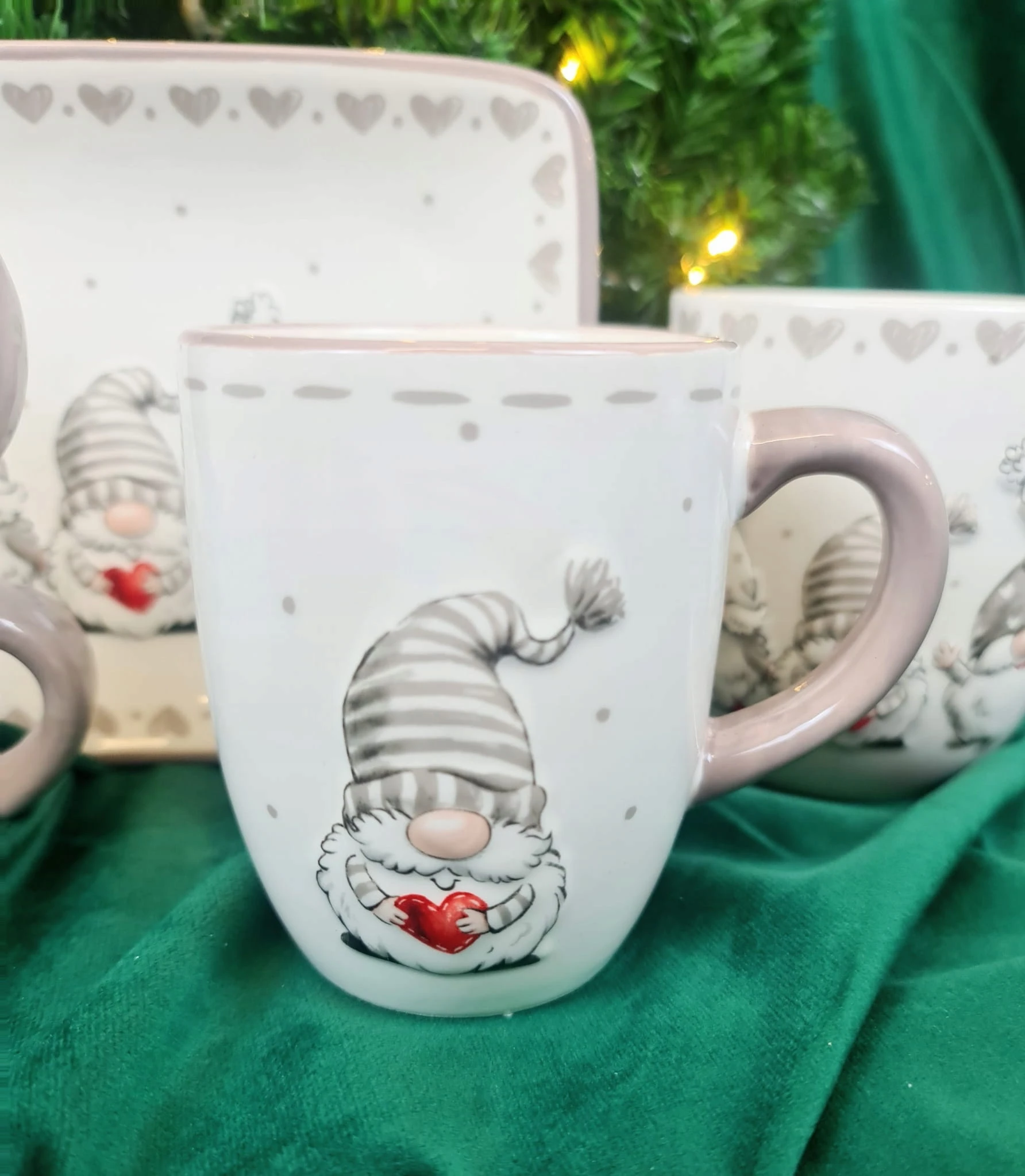 Sympatyczny ceramiczny kubek z Mikołajami.