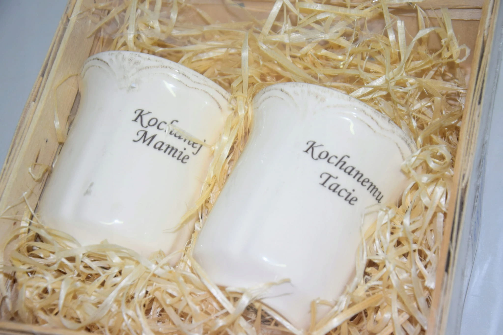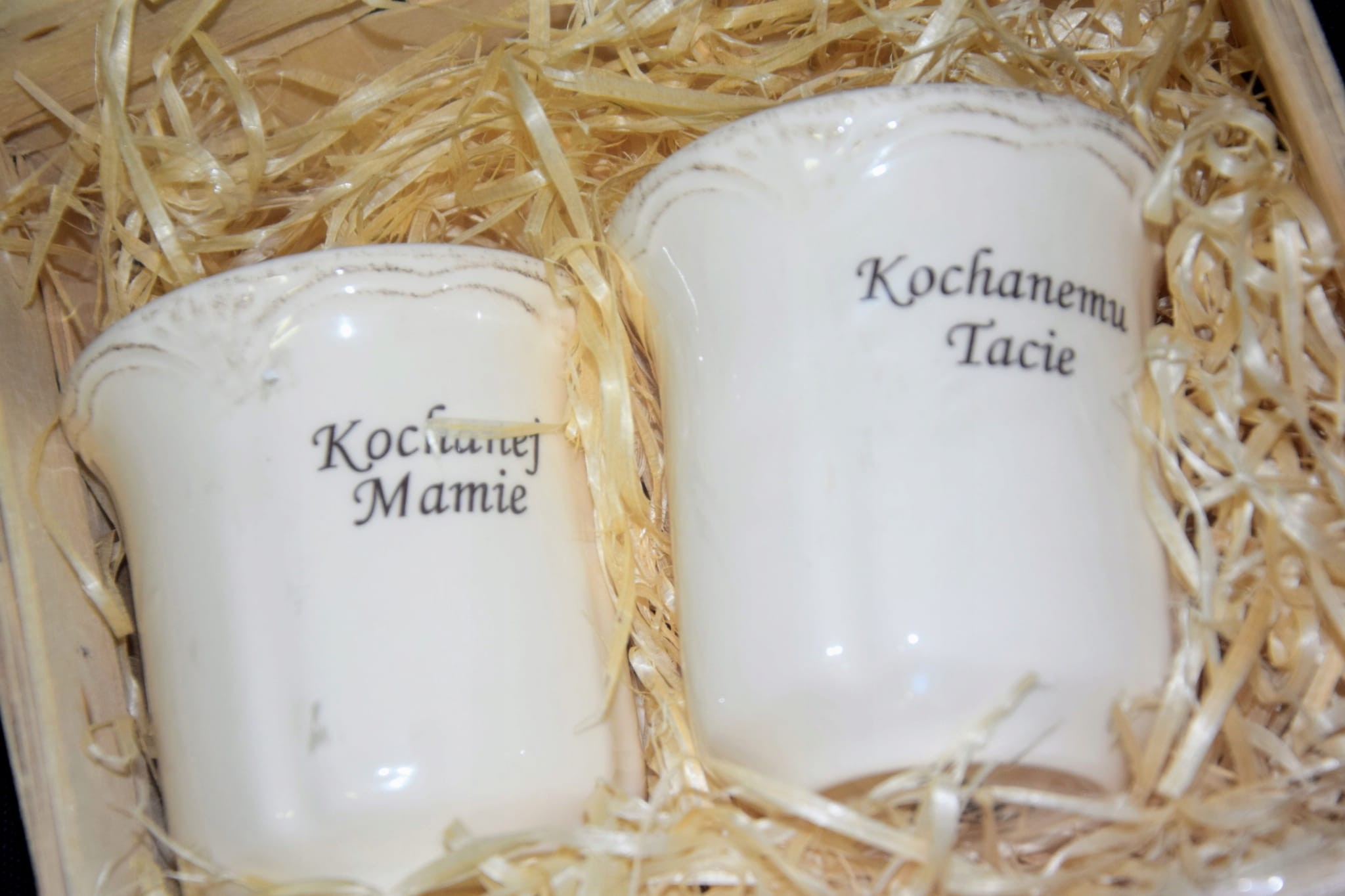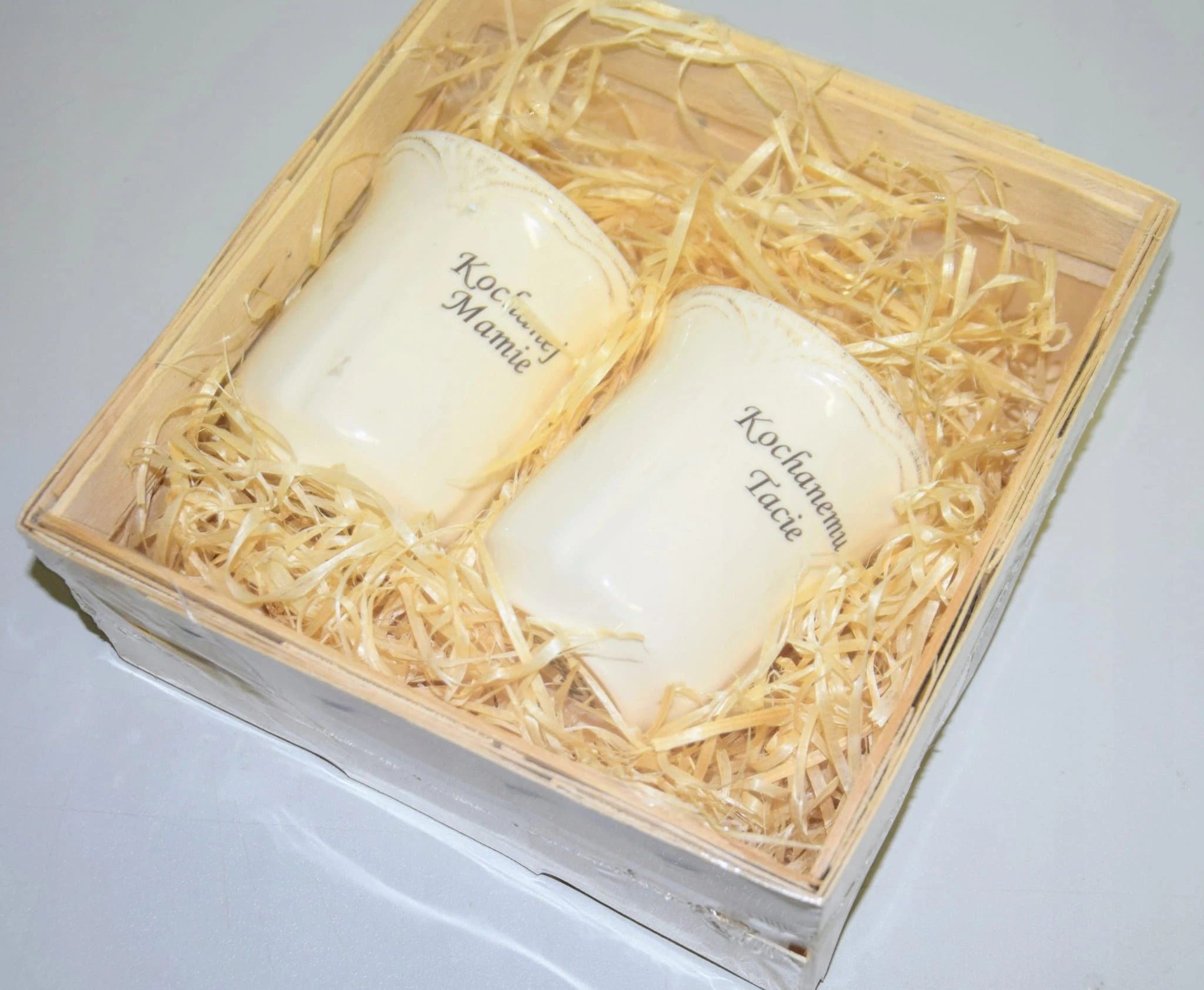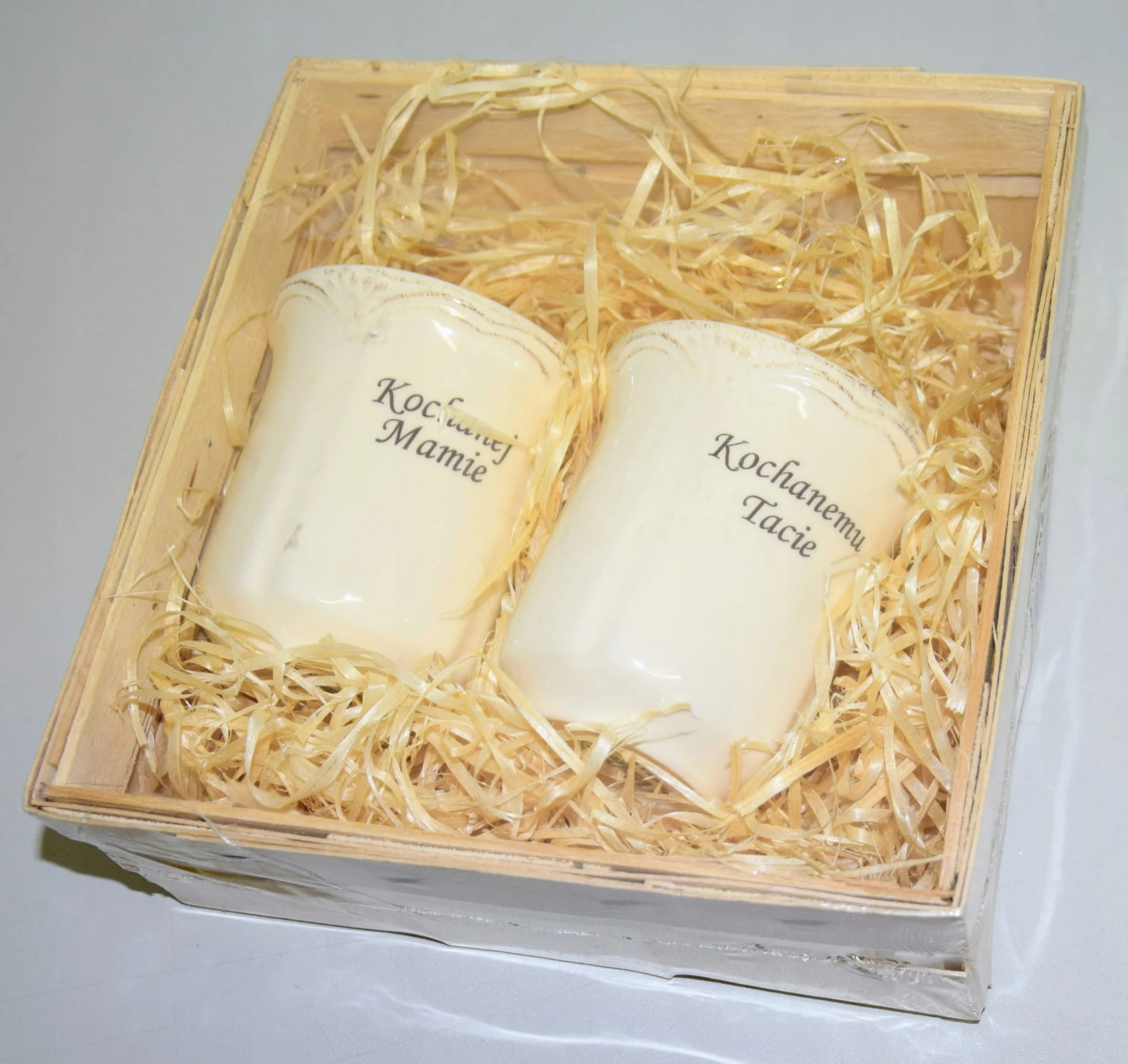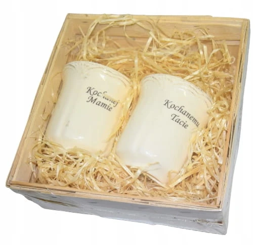 Są one wykonane z polskiej porcelany, elegancko i bezpiecznie zapakowane w drewnianą skrzynkę z wiórkami sosnowymi.