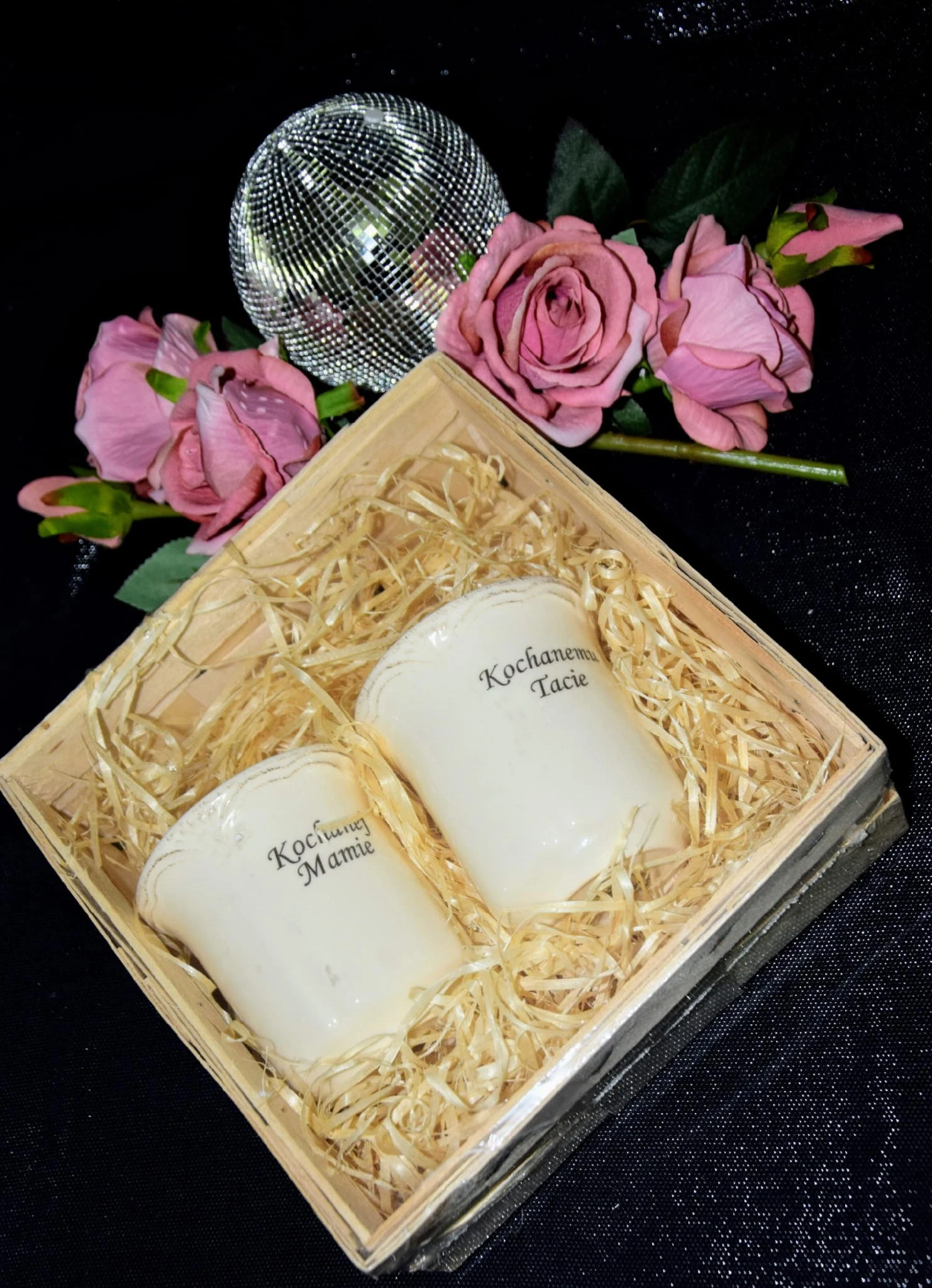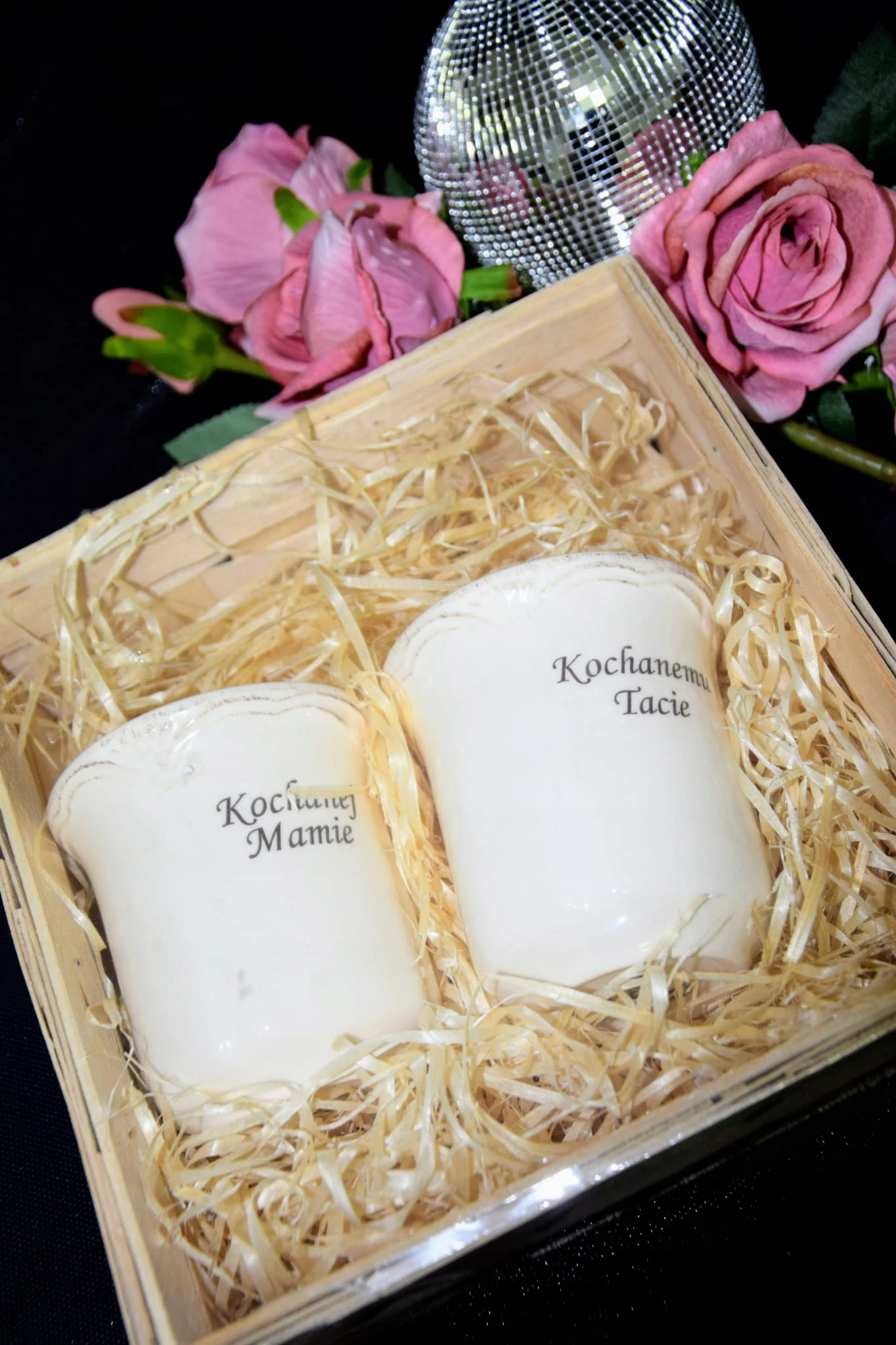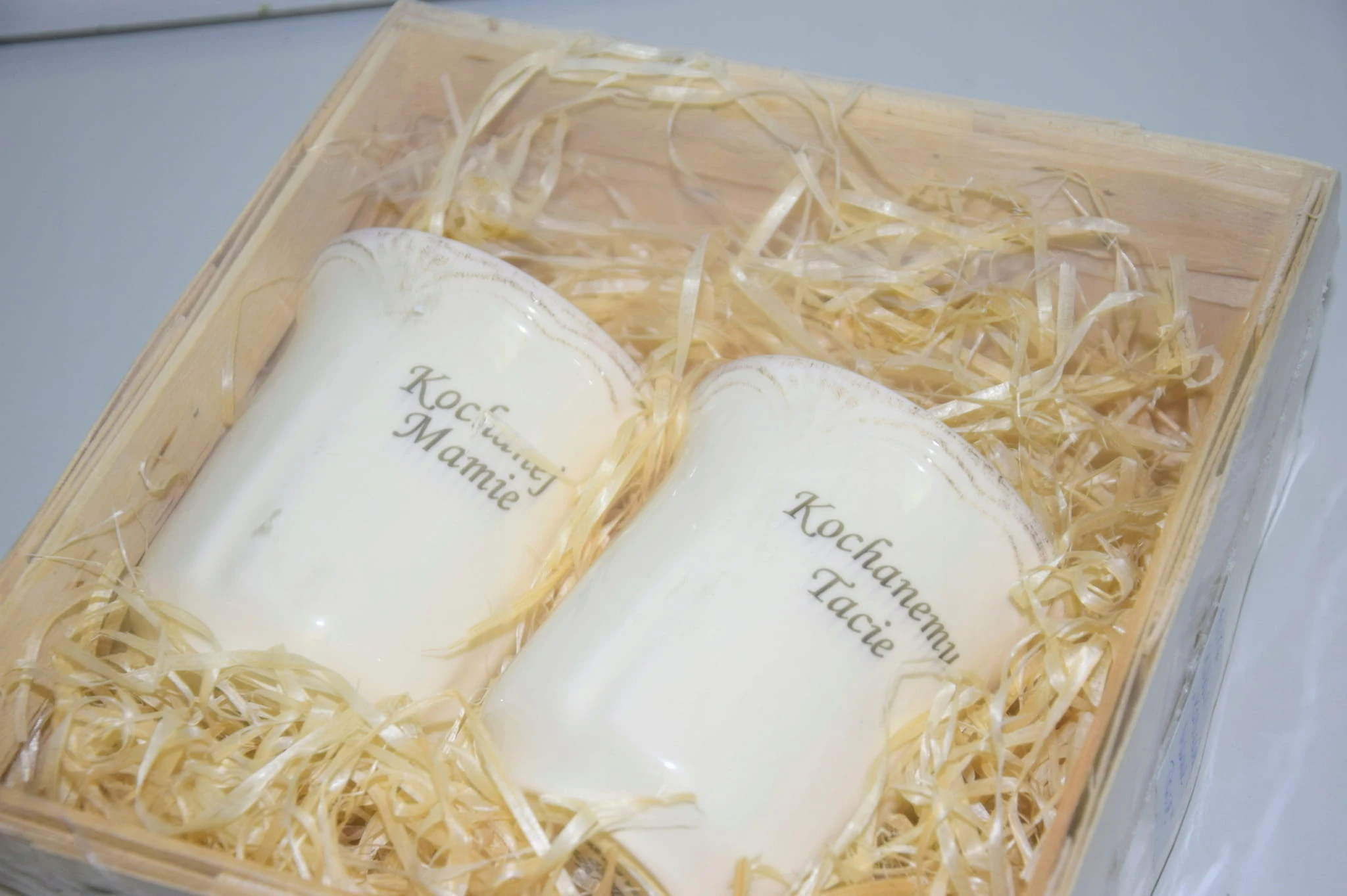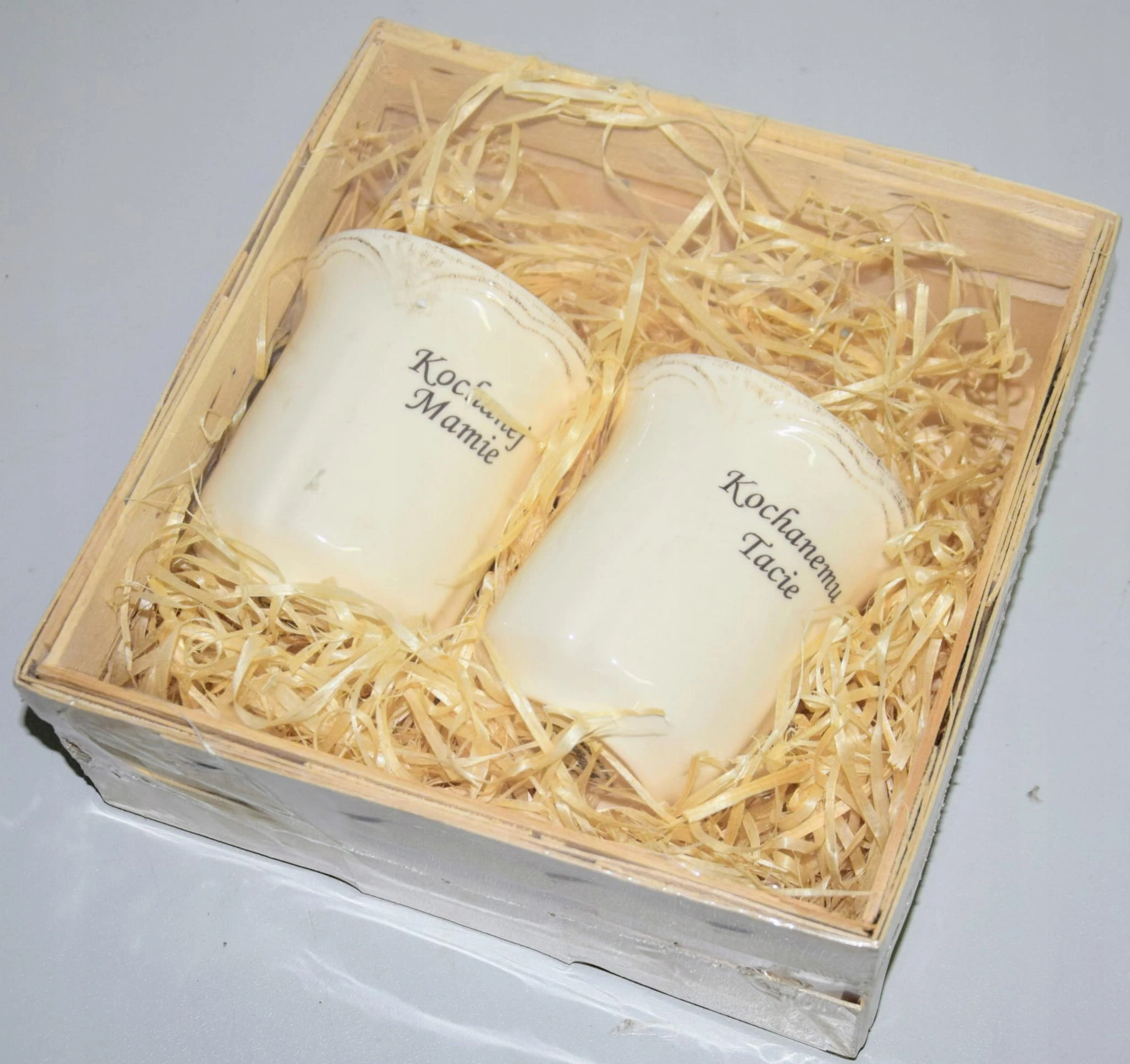 Są one wykonane z polskiej porcelany, elegancko i bezpiecznie zapakowane w drewnianą skrzynkę z wiórkami sosnowymi.