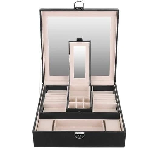 LUSTERKO – wewnątrz kuferka znajduje się uchylne lusterko. Doskonale sprawdzi się do zakładania biżuterii, a także do wykonania makijażu. Pod lusterkiem znajduje się schowek, który umożliwi przechowywanie najcenniejszej biżuterii.