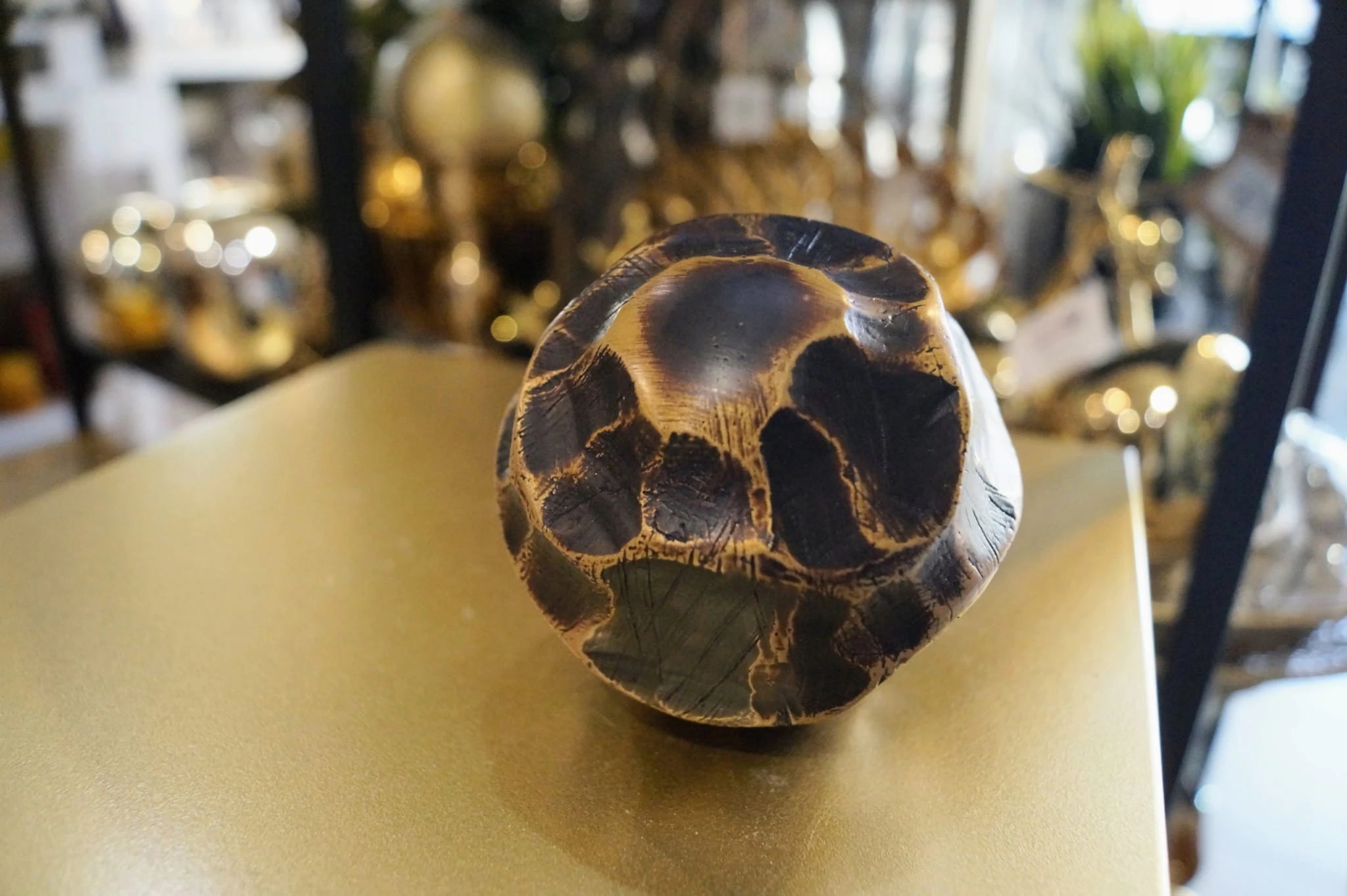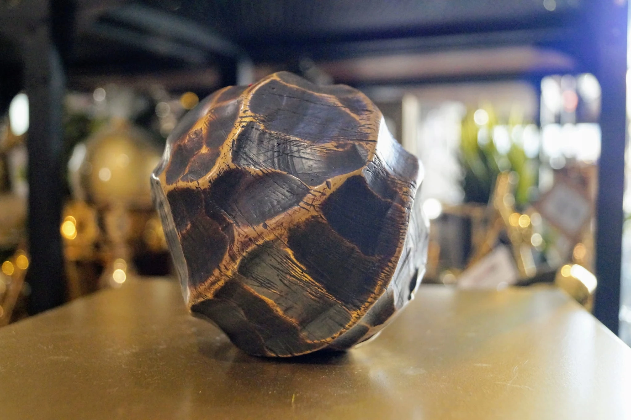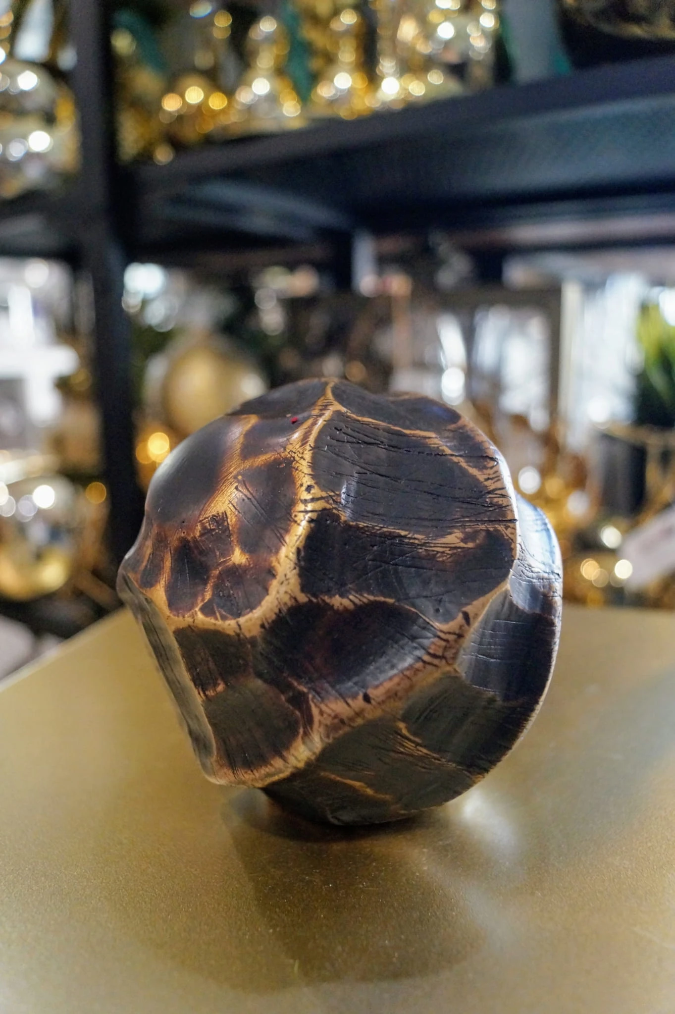 Kula dekoracyjna inspirowana etniczną sztuką afrykańską, charakteryzuje się wyjątkową, niejednorodną powierzchnią w kolorze ciepłego brązu.