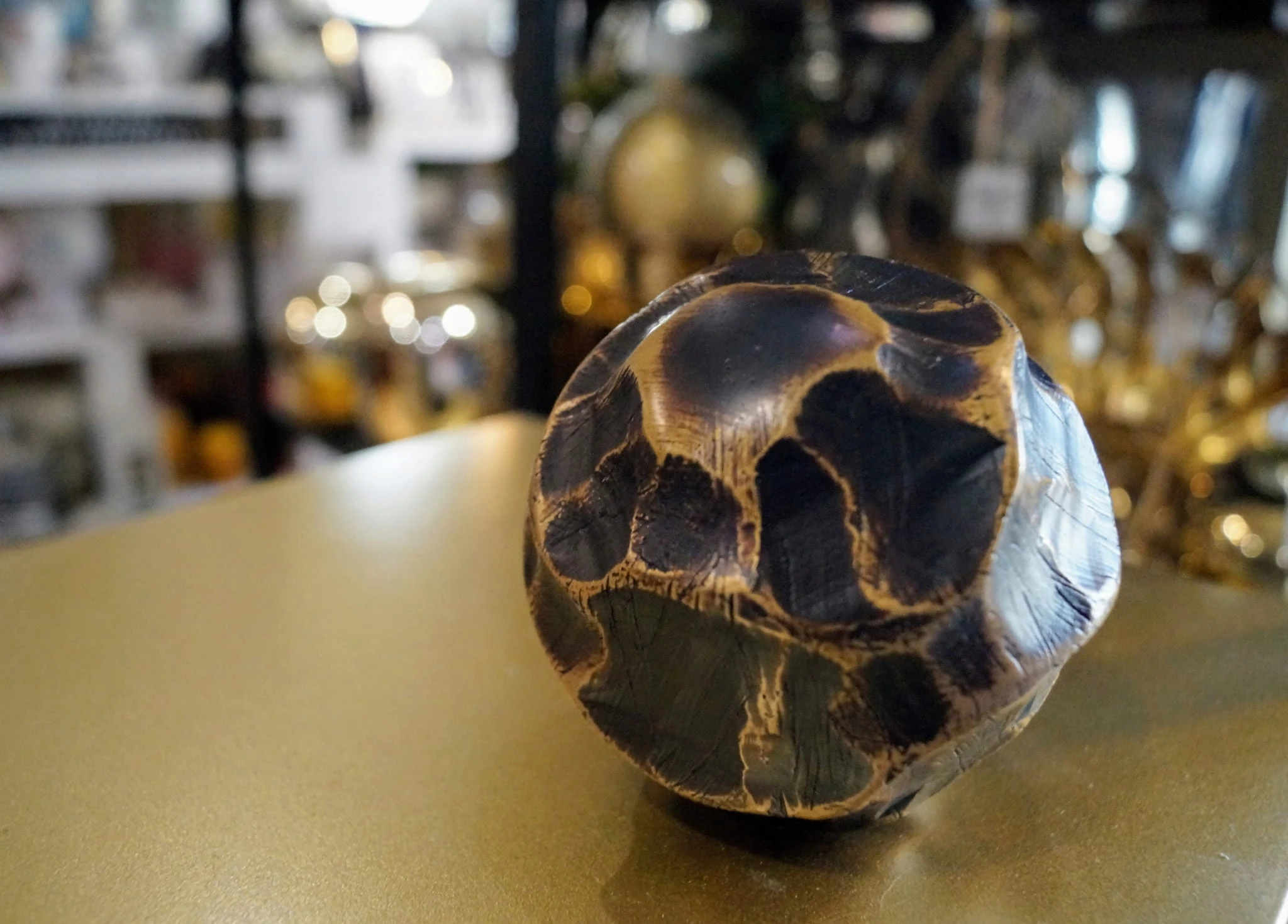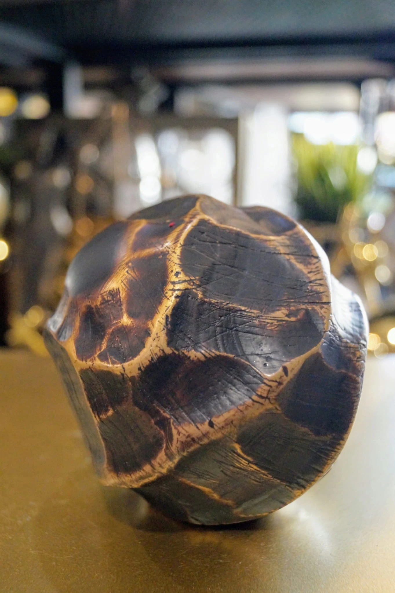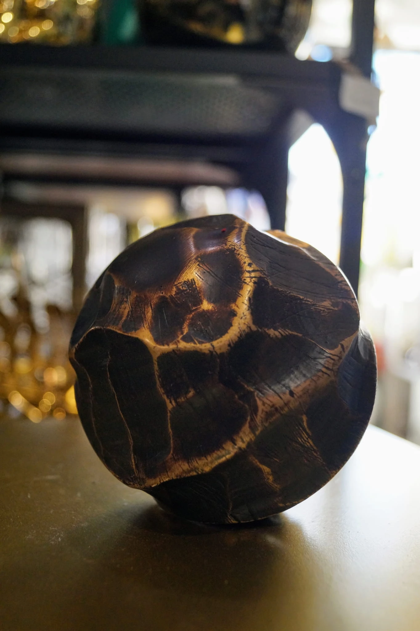 Kula dekoracyjna inspirowana etniczną sztuką afrykańską, charakteryzuje się wyjątkową, niejednorodną powierzchnią w kolorze ciepłego brązu.