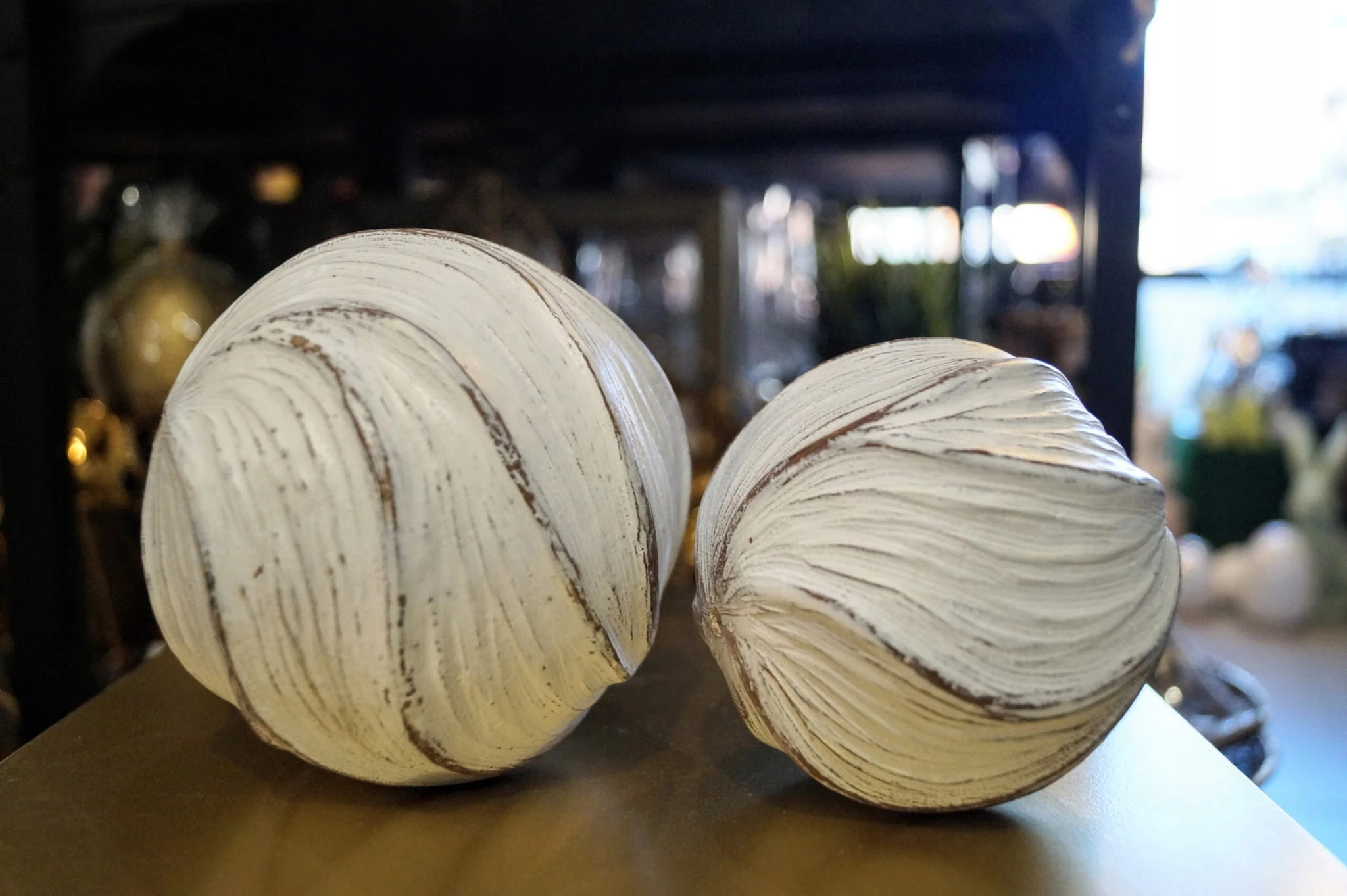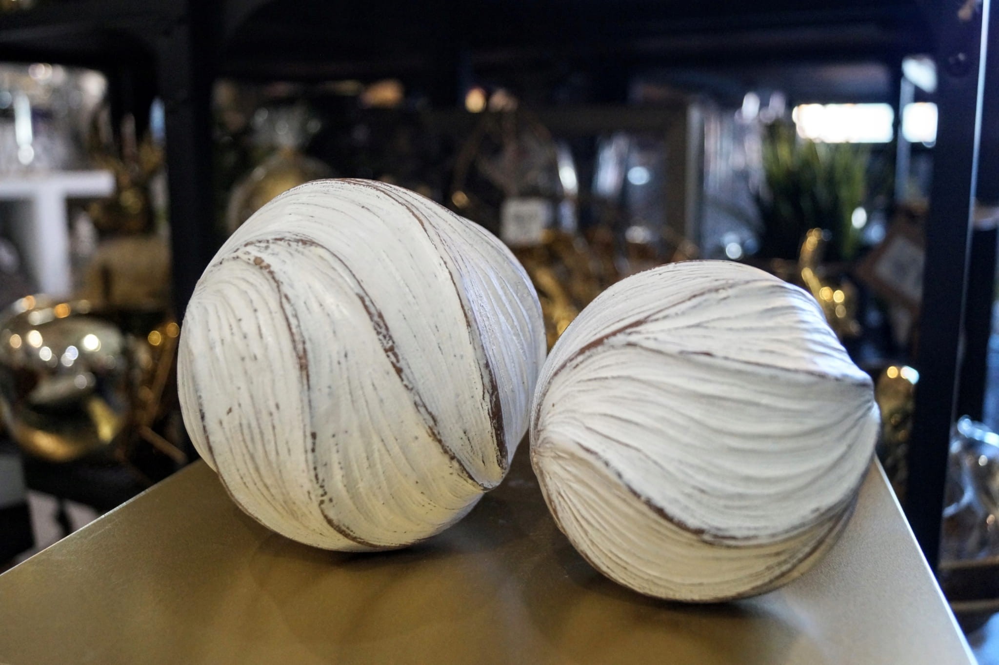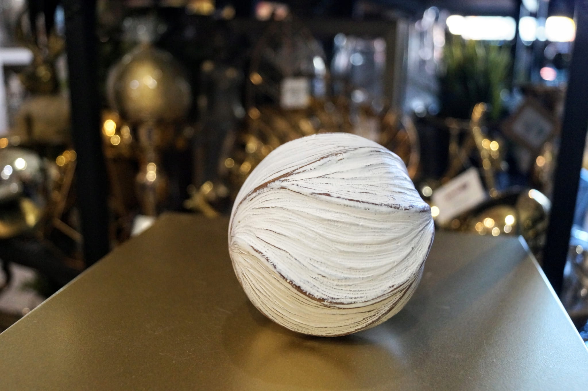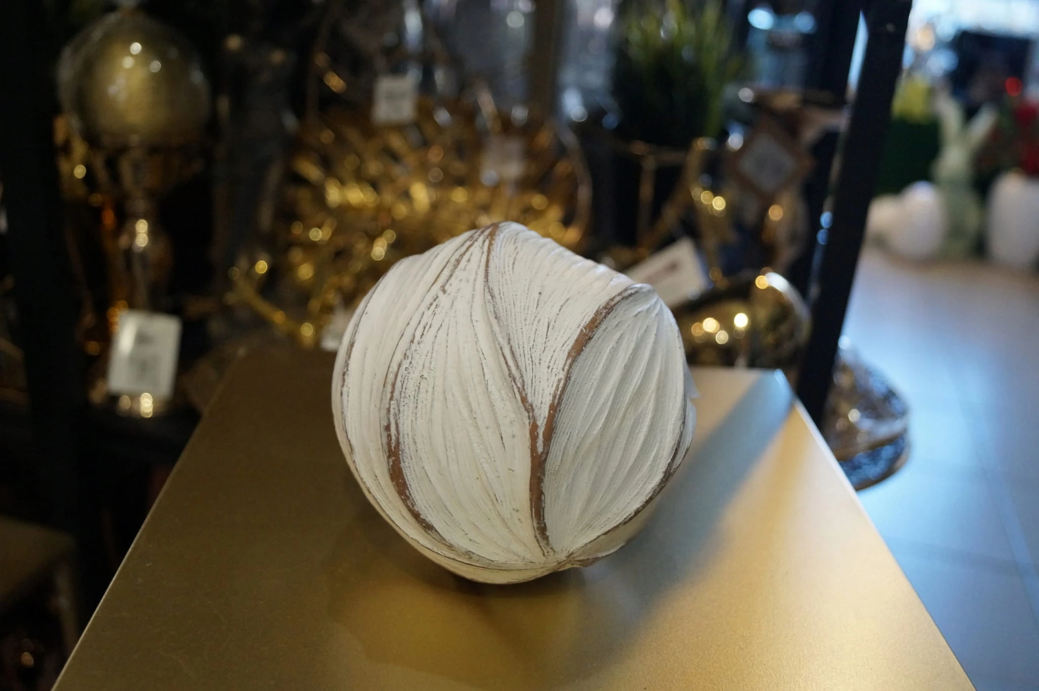 Bez dekoracyjnych drobiazgów nawet najbardziej wyszukany salon nie jest kompletny. Dekoracyjne dodatki ocieplają wnętrze i tworzą przytulną atmosferę. Jeśli lubisz niebanalne dodatki wybierz kulę dekoracyjną w stylu shabby chic z kolekcji CALEN. Kula z pewnością przypadnie do gustu wielbicielom bibelotów, którymi można udekorować komody i półki. Kula wykonana została z żywicy poliestrowej i jak przystało na styl shabby chic posiada lekkie przetarcia i niejednorodną, rzeźbioną powierzchnię.
