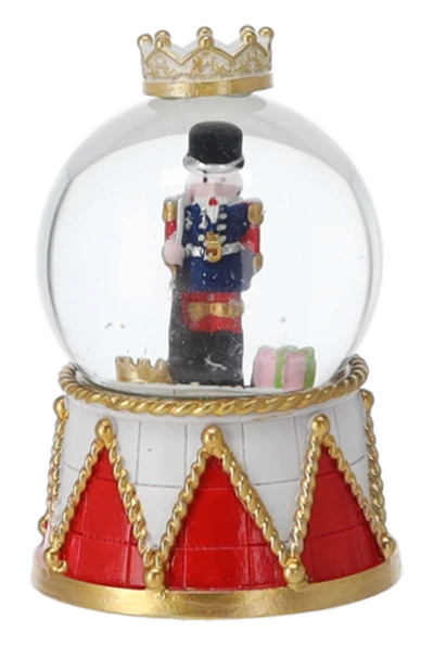 Urocza bożonarodzeniowa kula śnieżna z dziadkiem do orzechów to idealna dekoracja, która wprowadzi świąteczny nastrój do każdego wnętrza. Po potrząśnięciu kula wypełnia się wirującym śniegiem, tworząc magiczny, zimowy efekt. To doskonały pomysł na drobny upominek lub element świątecznej dekoracji stołu, półki czy biurka.