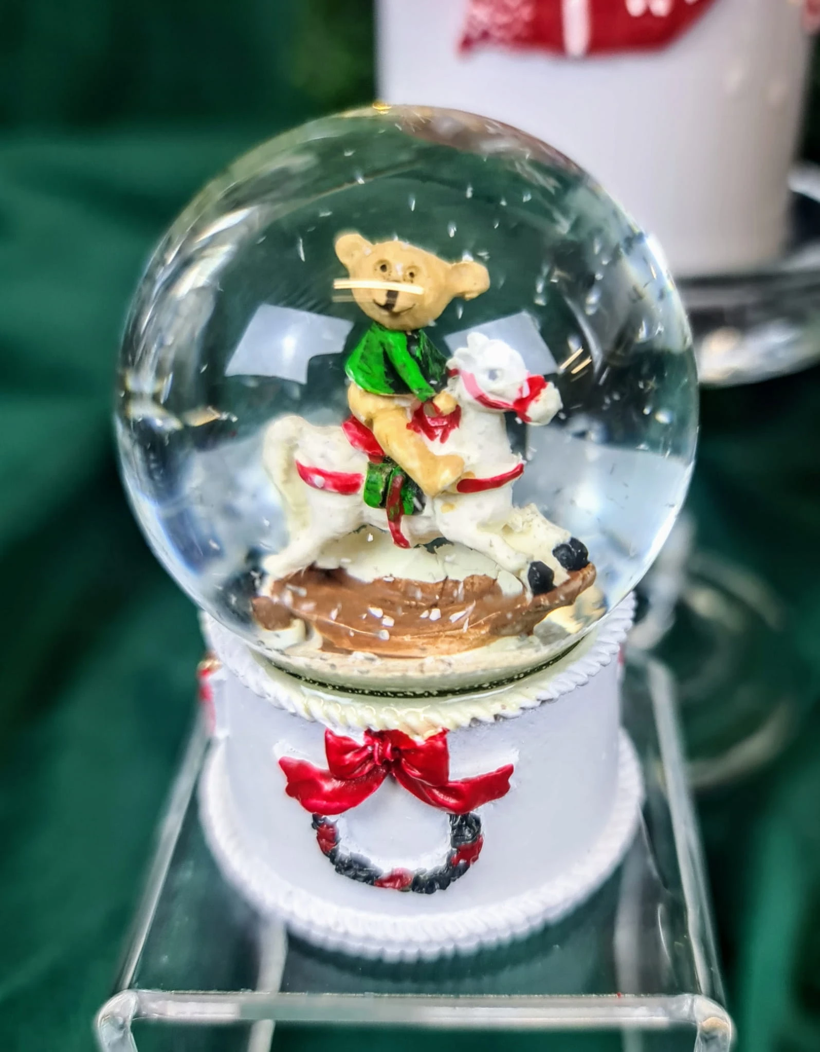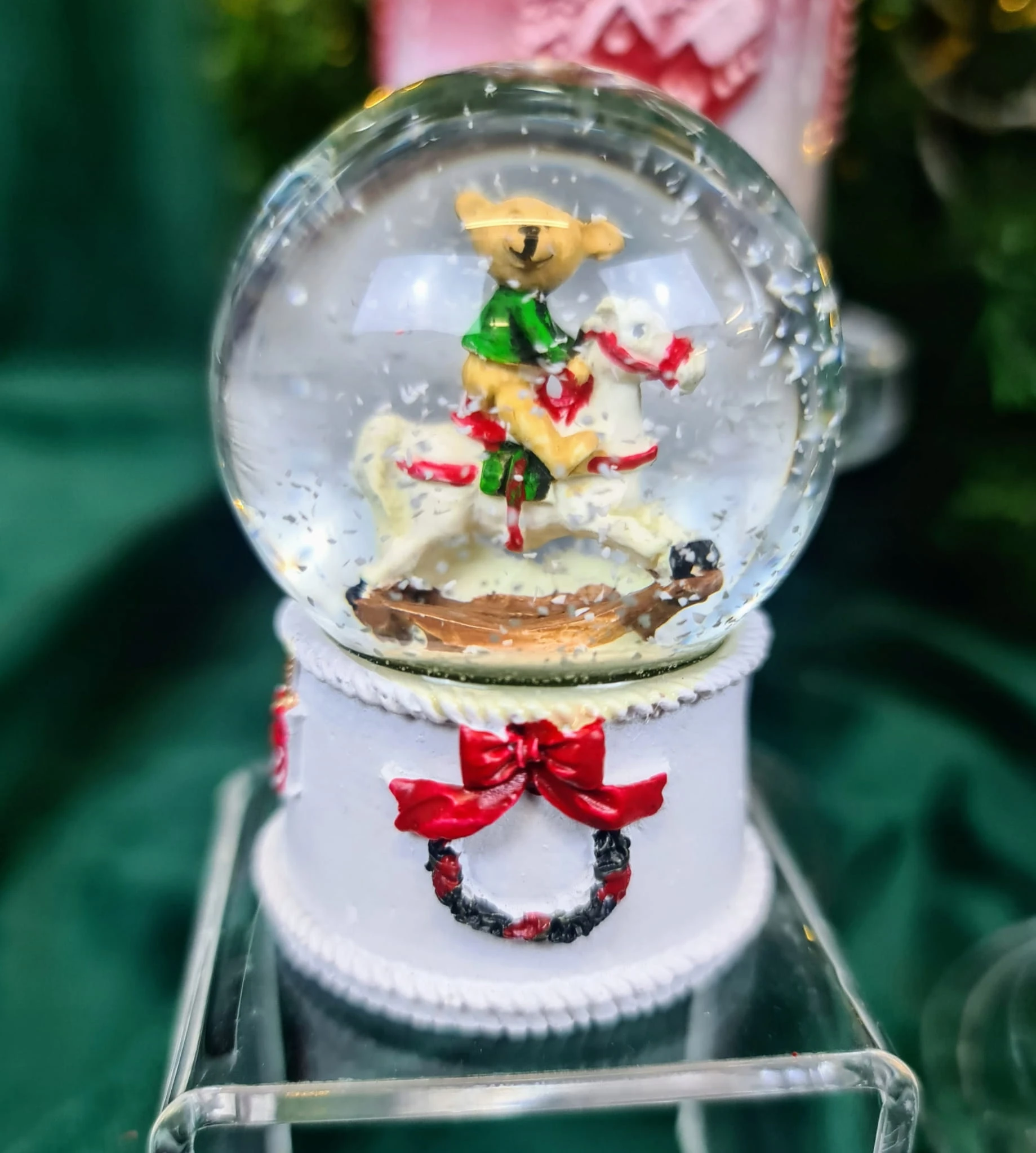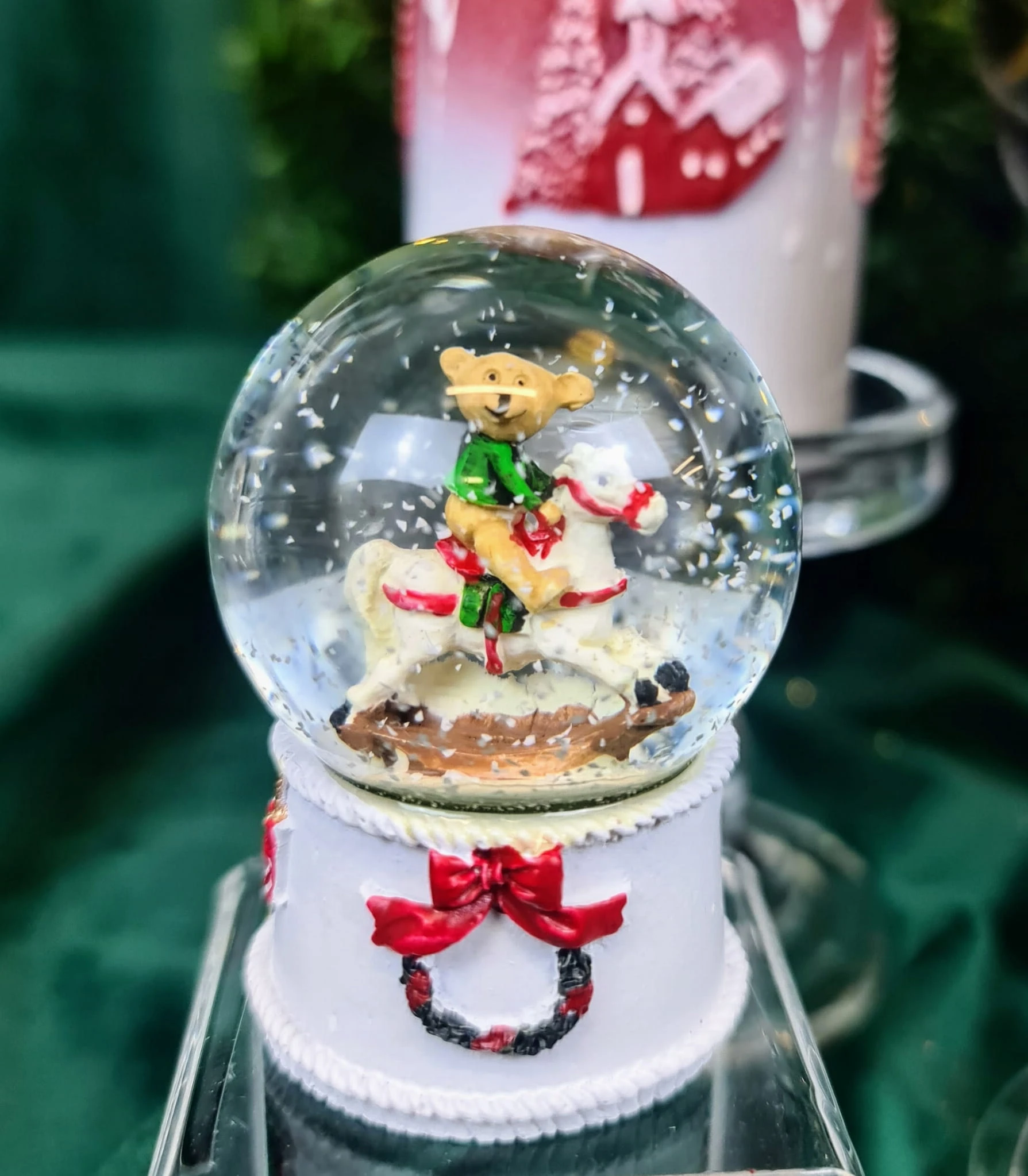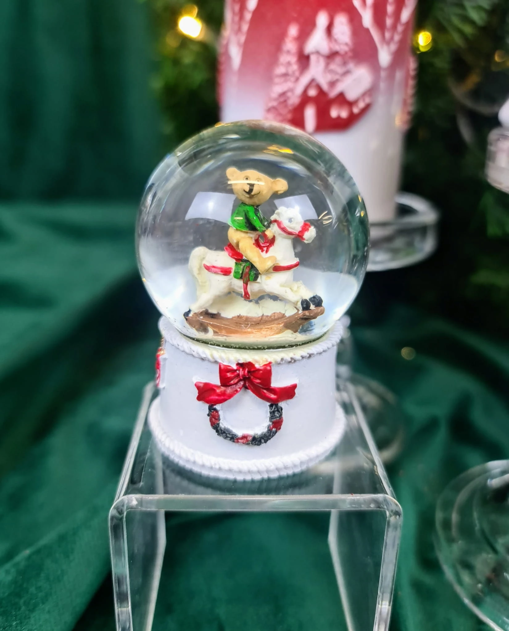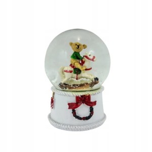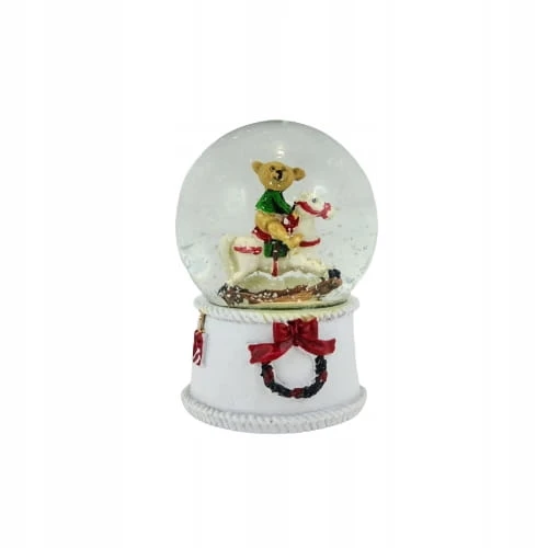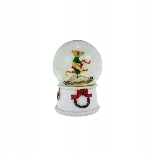 Piękna świąteczna kula wodna ze śniegiem. W środku postać misia na koniu. Stwórz cudowną świąteczną kolekcję w swoim mieszkaniu, obdaruj znajomych niezwykłym prezentem kupując ozdobę wraz z innymi produktami dostępnymi w katalogu ALMADECOR.