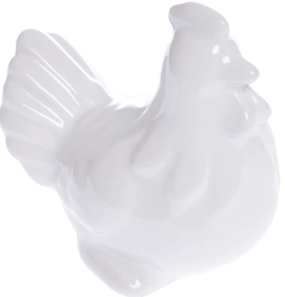 Ceramiczna, biała kurka urozmaici półkę jak i stół w okresie świątecznym. Nada niepowtarzalnego charakteru wnętrzu. Zachwyci jako dodatek do prezentu lub jako sam prezent.