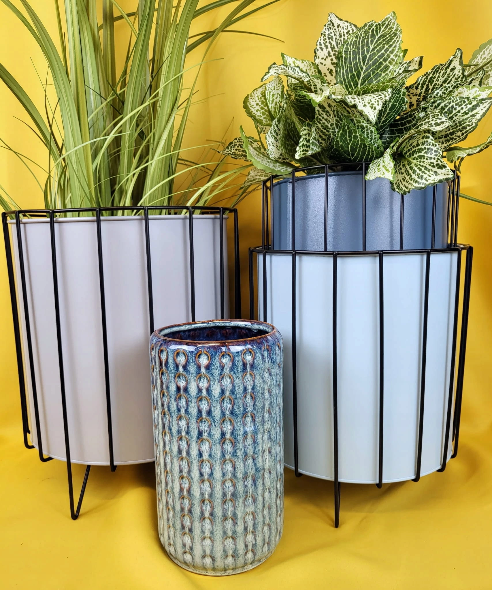 Oryginalny element dekoracyjny. Osłonka/kwietnik na czarnym stelażu będzie nowoczesnym i uniwersalnym elementem wystroju naszych wnętrz.