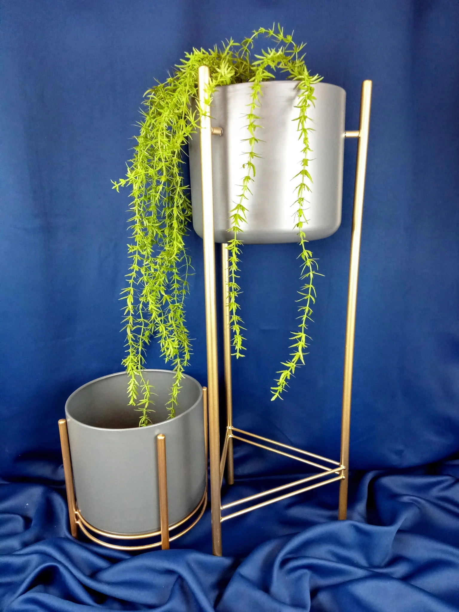 KWIETNIK SZARY WYSOKI ZE ZŁOTYM METALOWYM STELAŻEM