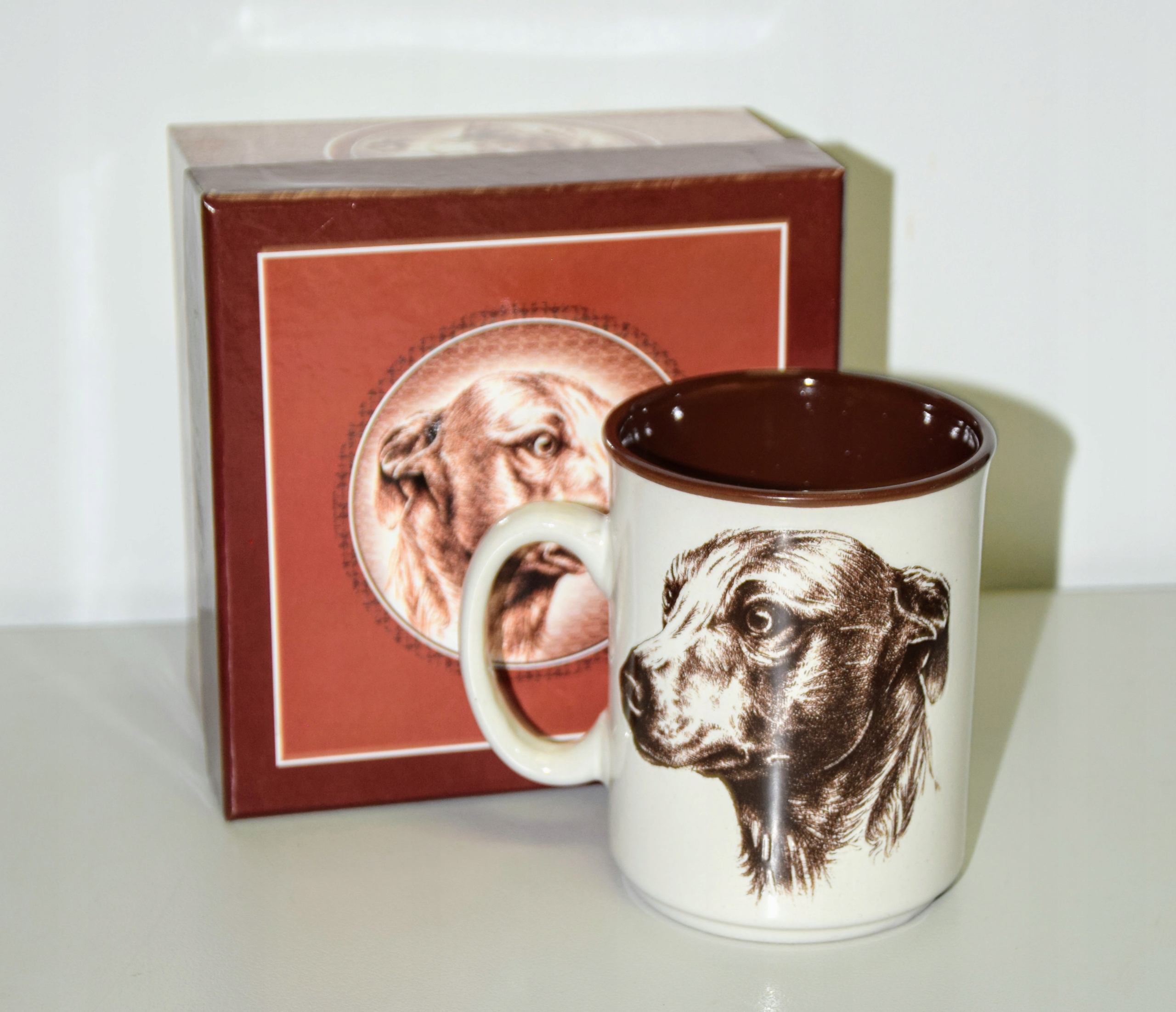 Kubek zapakowany jest w prezentowe, tekturowe pudełko z motywem pieska.