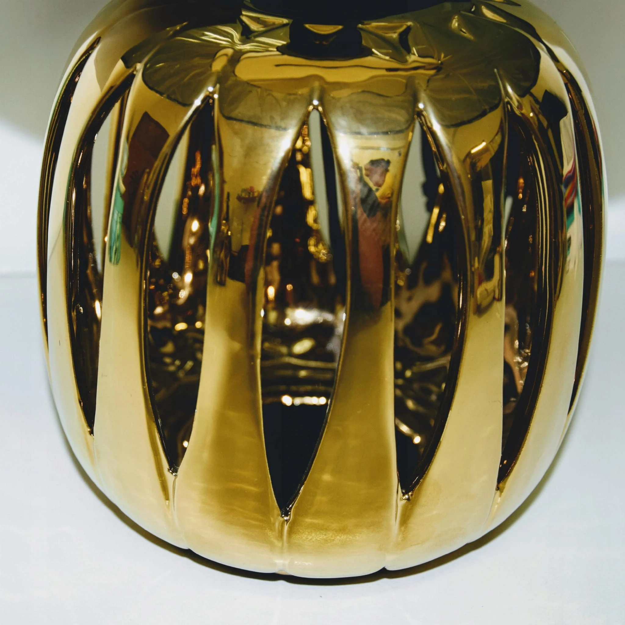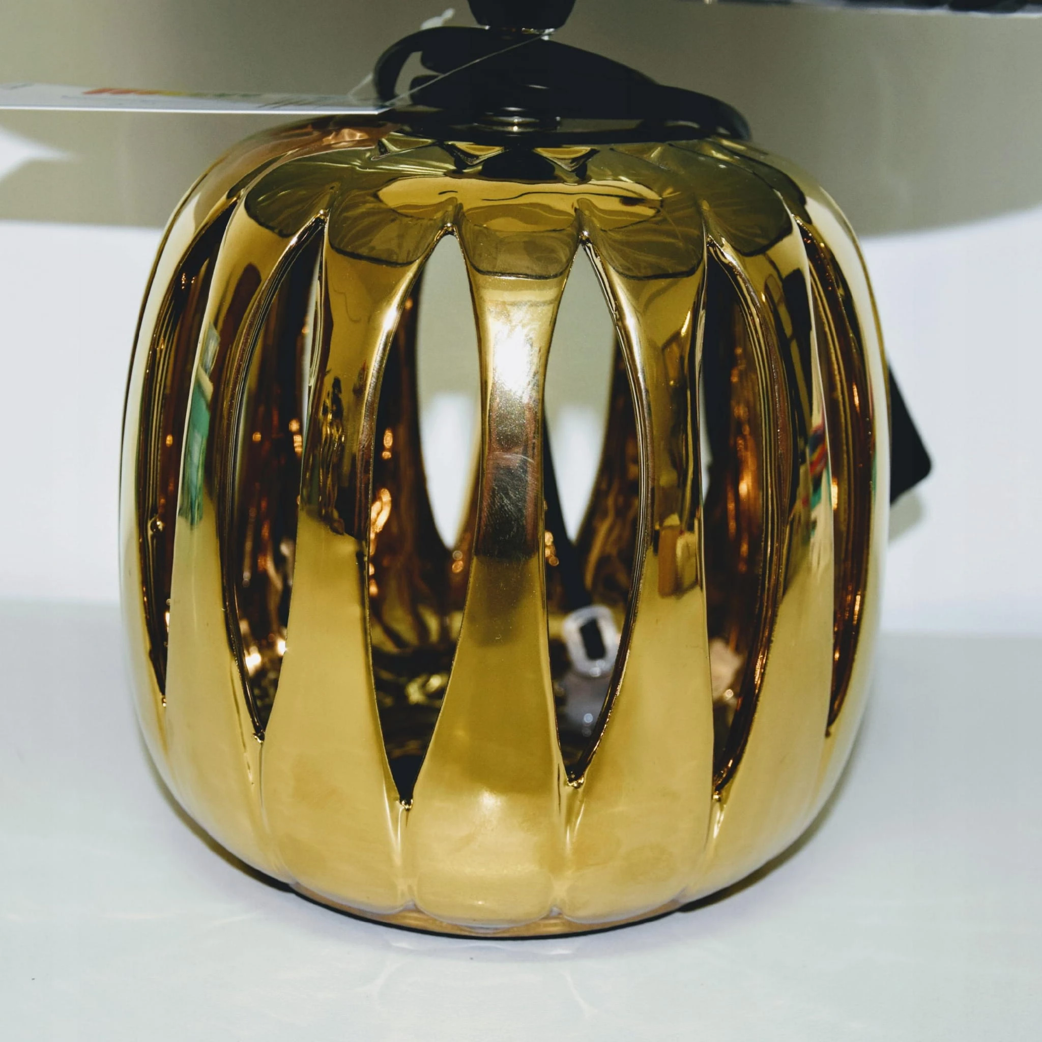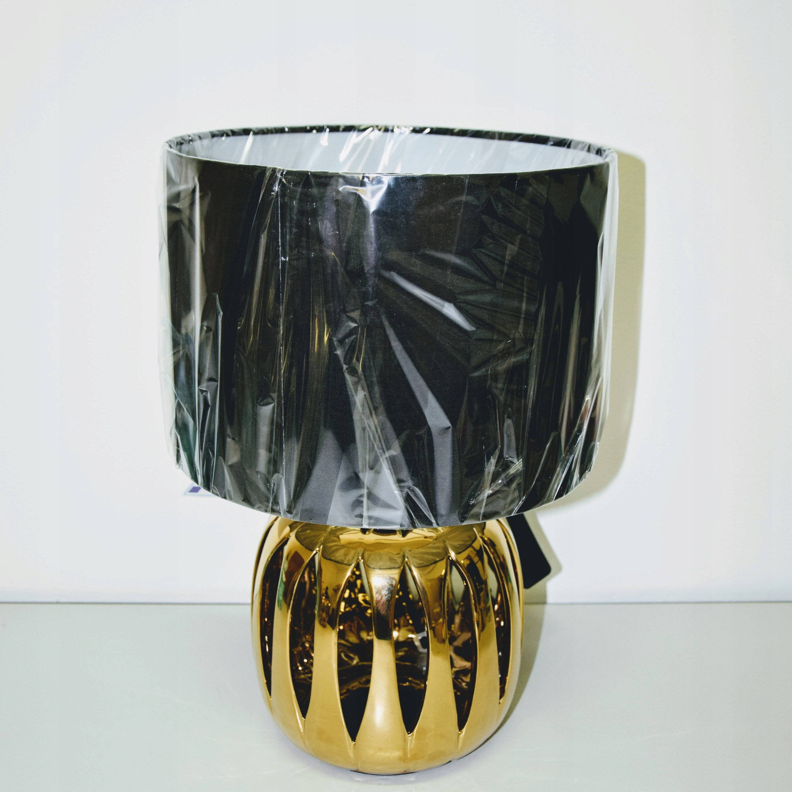 Lampa stołowa – nocna, wykonana z ceramiki w kolorze złotym. Powierzchnia podstawy błyszcząca. Lampa idealnie wpasuje się w styl glamour jak i ponadczasową klasykę.