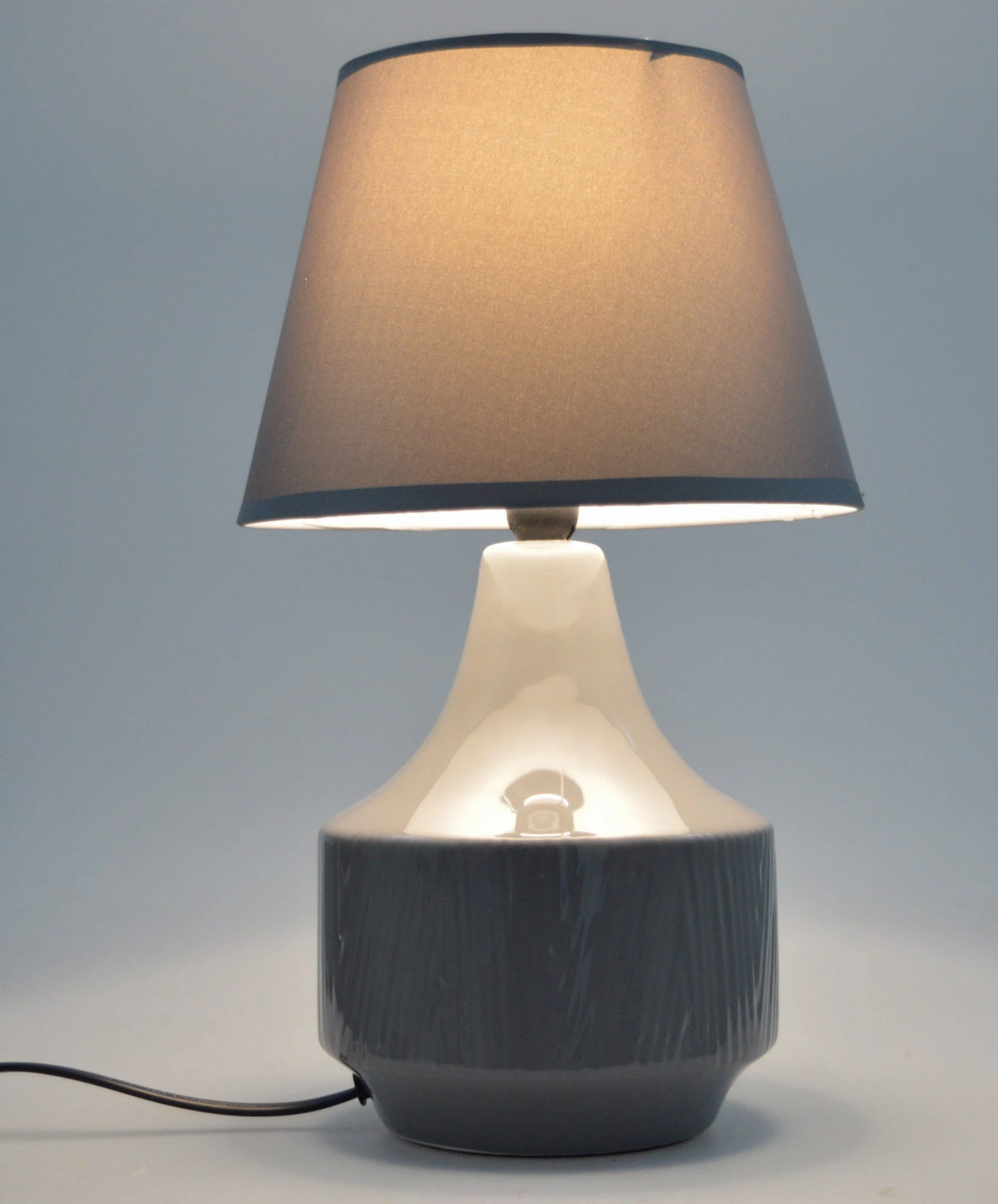 LAMPA CERAMICZNA SZARA W PRĄŻKI 36cm