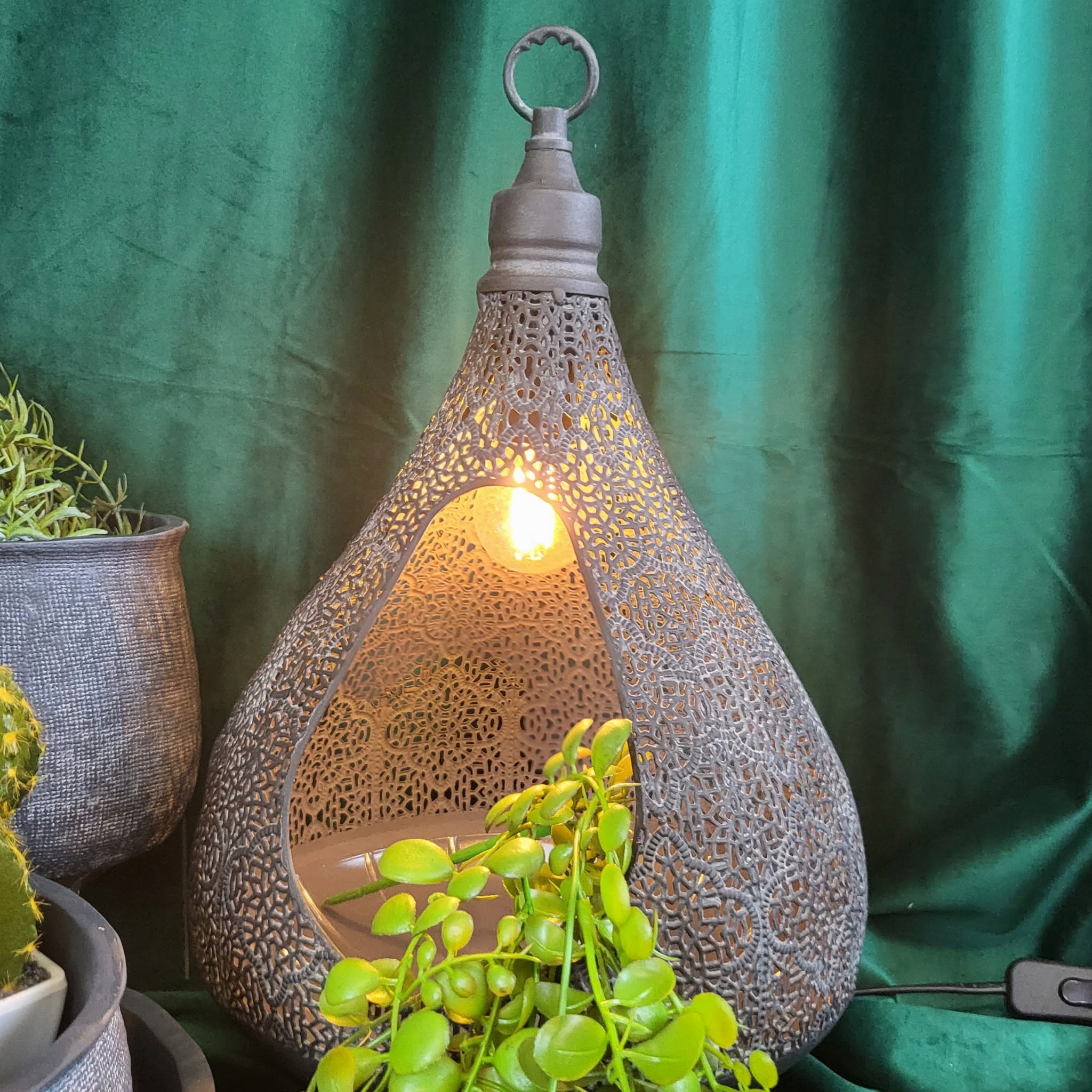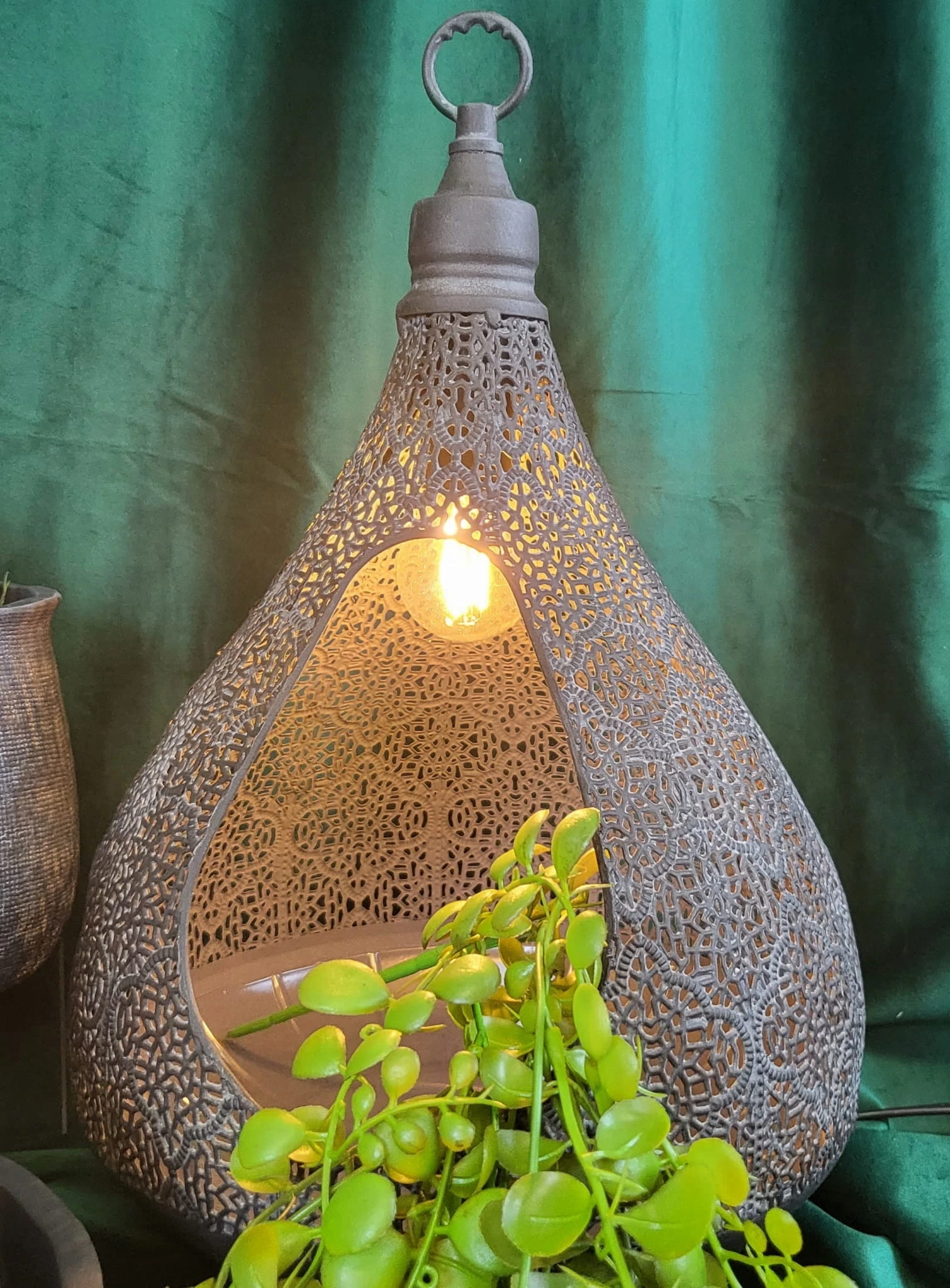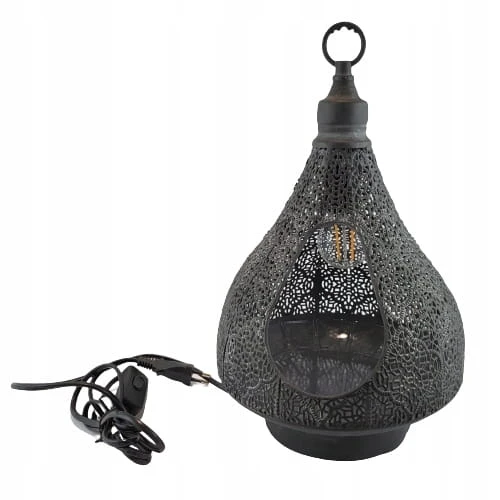 Lampka stołowa/wisząca o dekoracyjnym ażurowym wzorze . Idealnie wkomponuje się we wnętrze w stylu boho jak i nowoczesne.