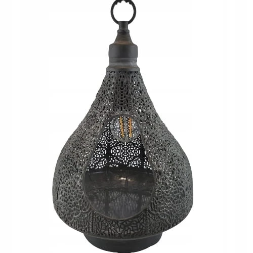LAMPA MAROCCO CZARNA H40 FI25 CM BOHO AŻUROWA