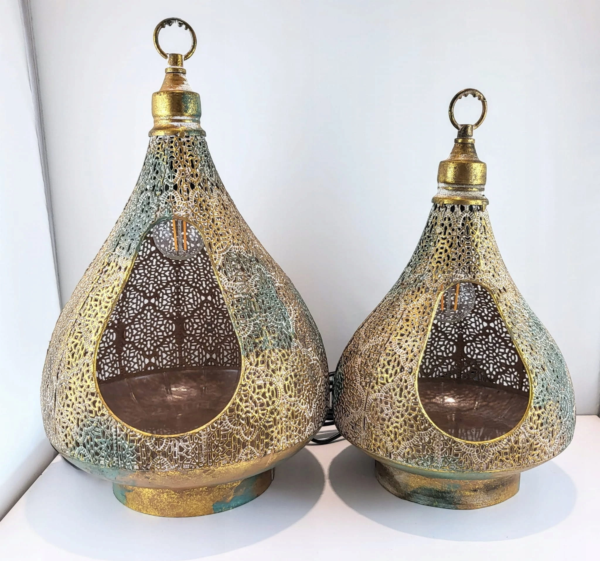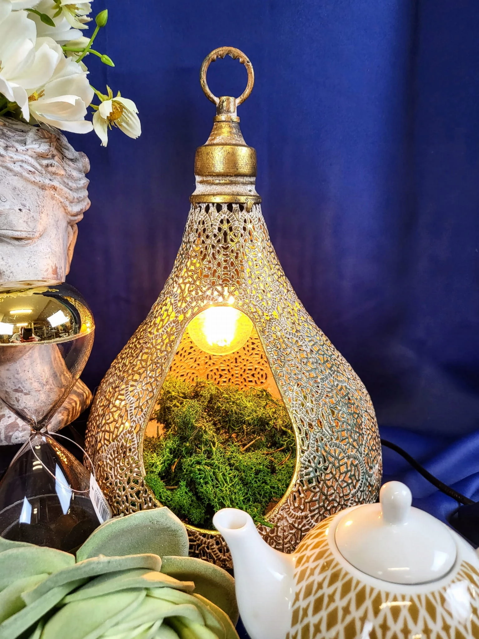 Lampka stołowa/wisząca o dekoracyjnym ażurowym wzorze . Idealnie wkomponuje się we wnętrze w stylu maroccan jak i nowoczesne.