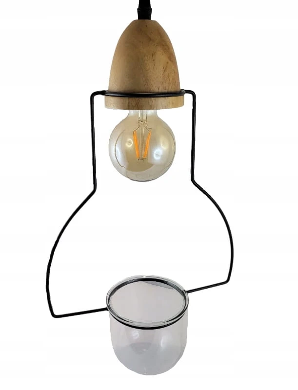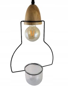 Lampka wisząca o prostej formie ze szklanym naczyniem, które może być wykorzystane jako osłonka na roślinę. Idealnie wkomponuje się we wnętrze w stylu loft jak i nowoczesne.