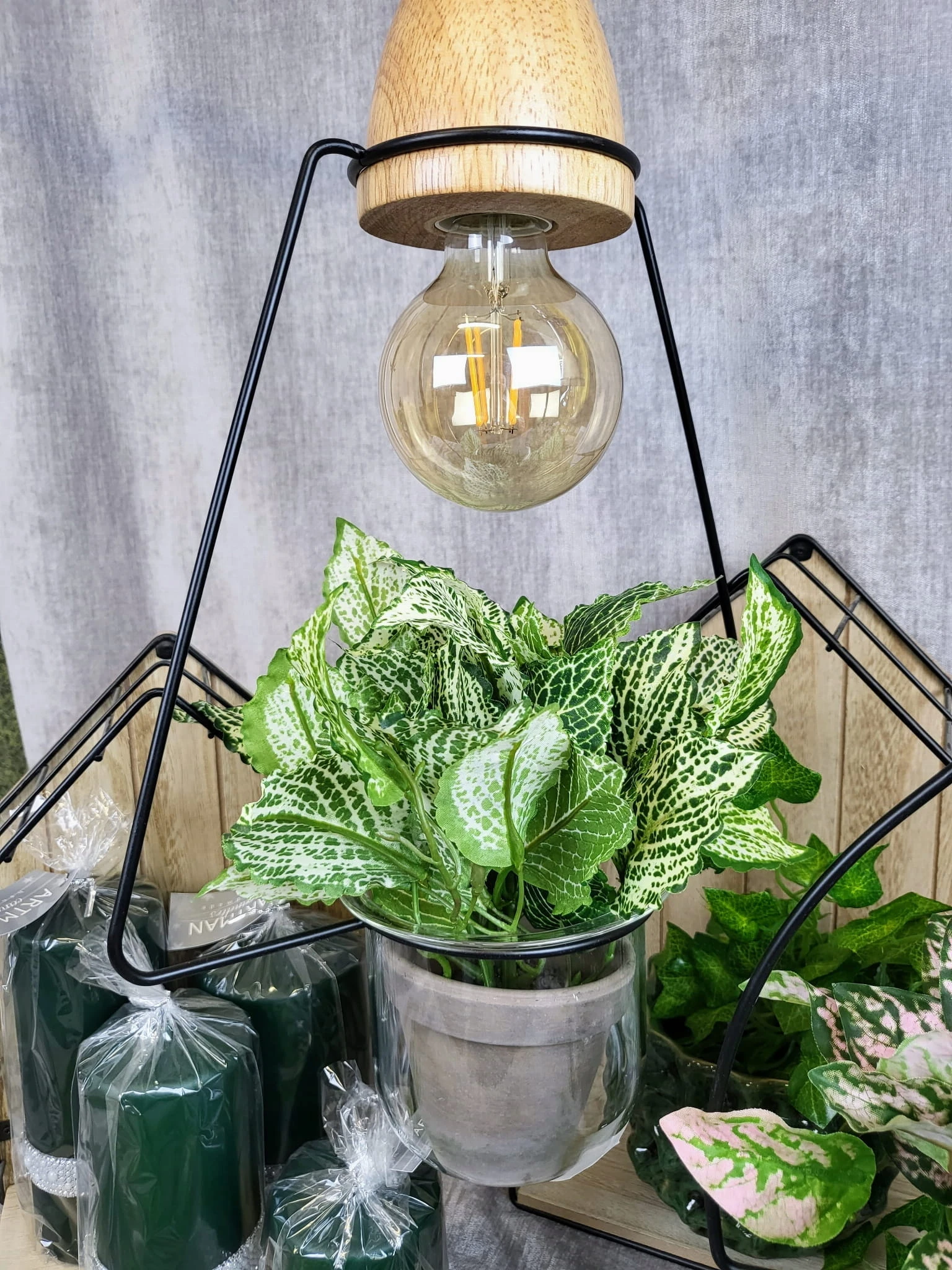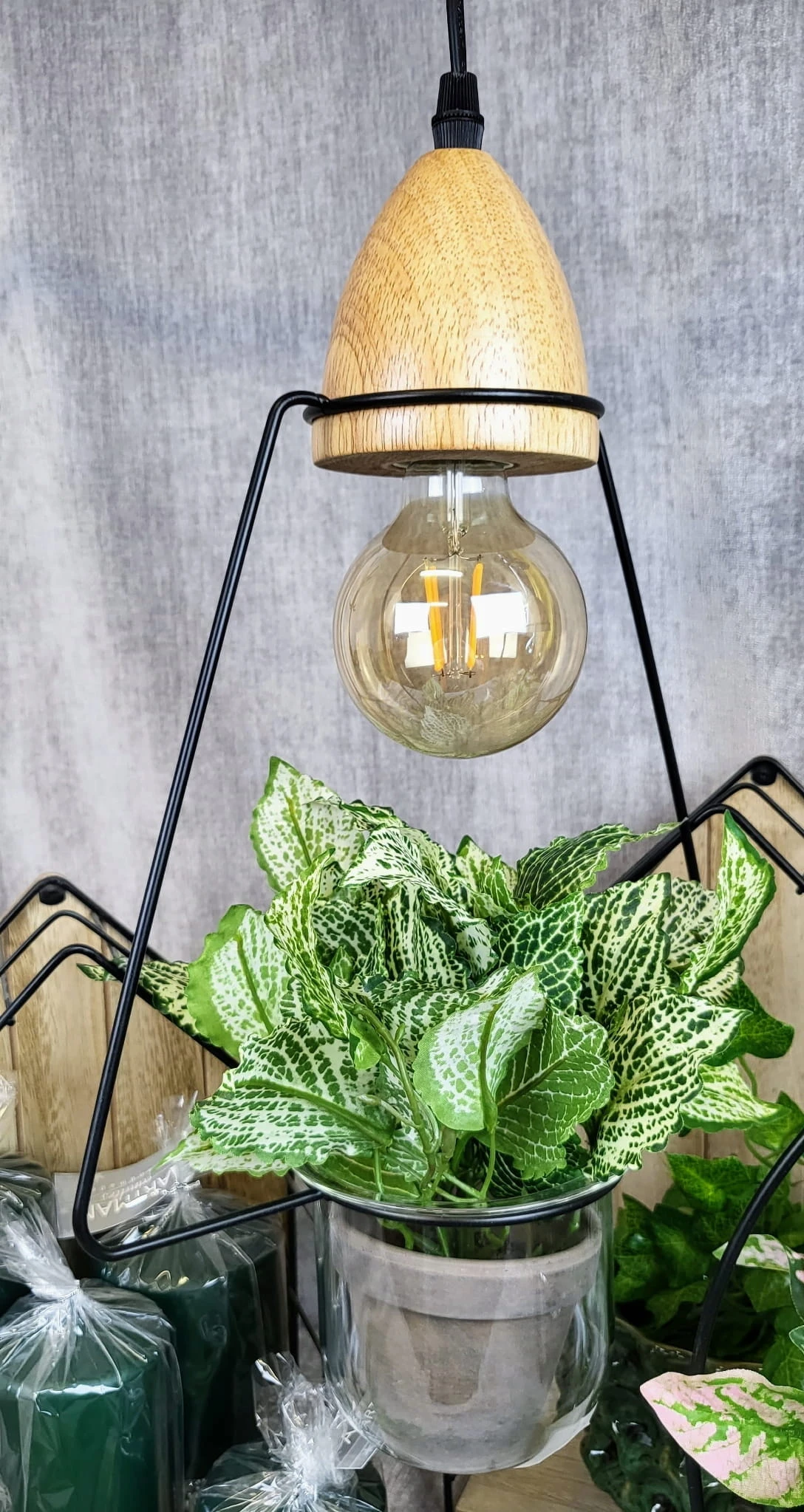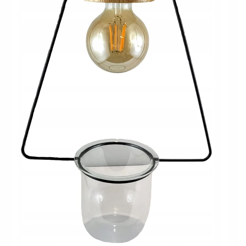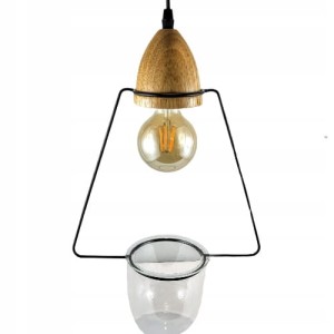 Lampka wisząca o prostej formie ze szklanym naczyniem, które może być wykorzystane jako osłonka na roślinę. Idealnie wkomponuje się we wnętrze w stylu loft jak i nowoczesne.