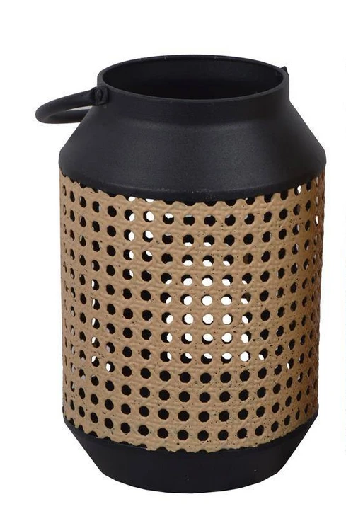 LAMPION AŻUROWY CZARNO BEŻOWY Z RĄCZKĄ 25CM
