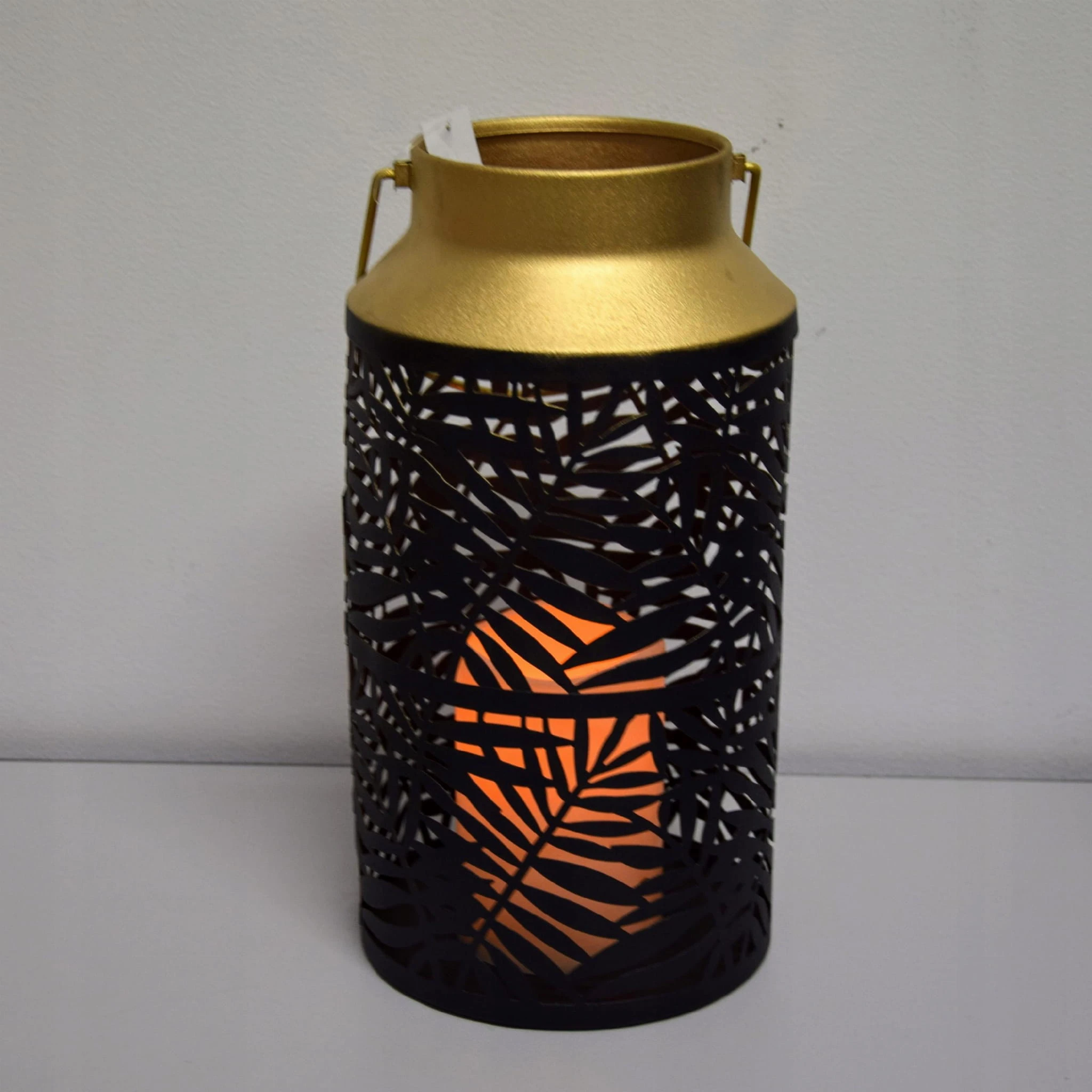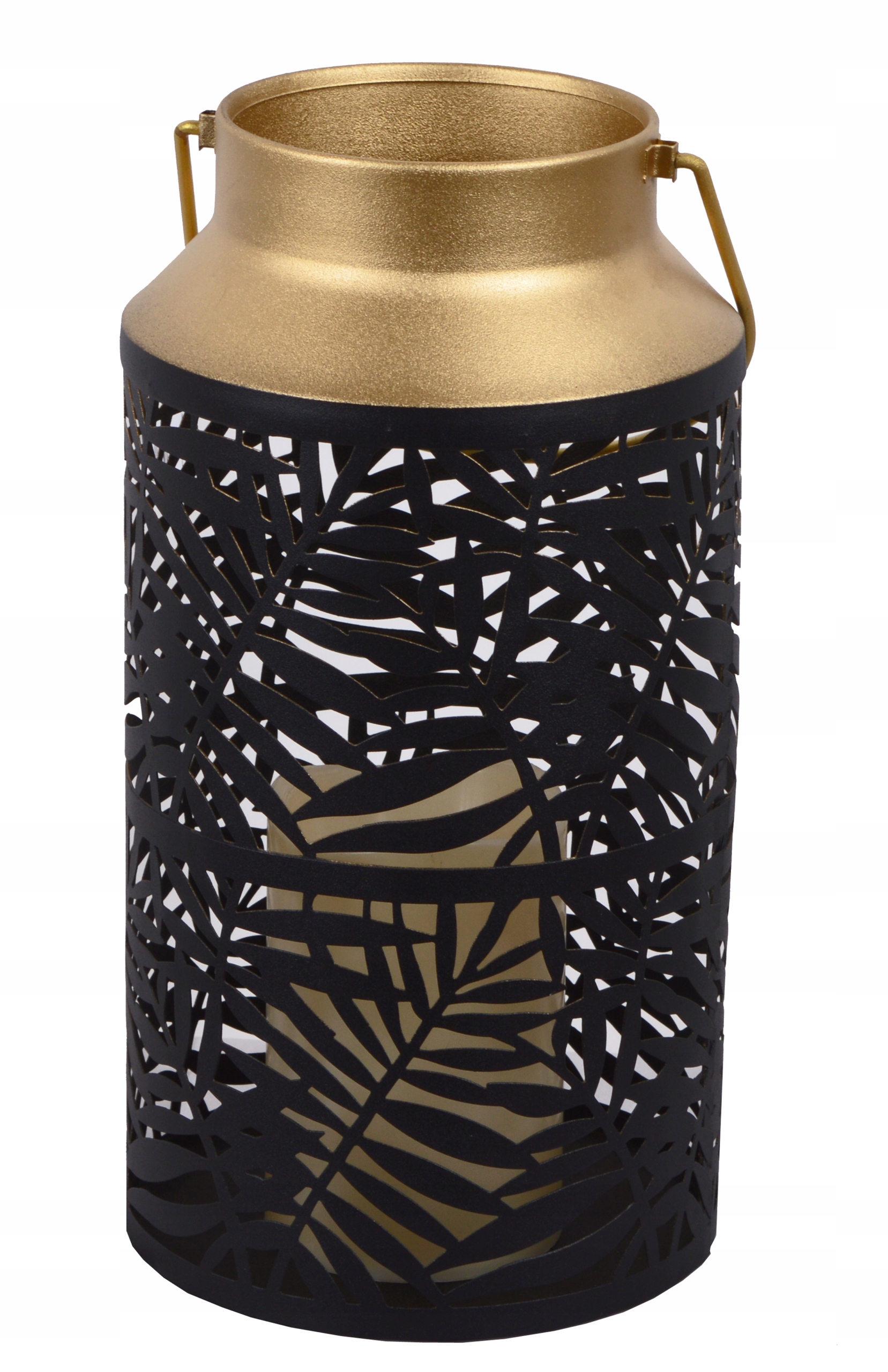 LAMPION CZARNO-ZŁOTY ZE ŚWIECĄ LED H29CM