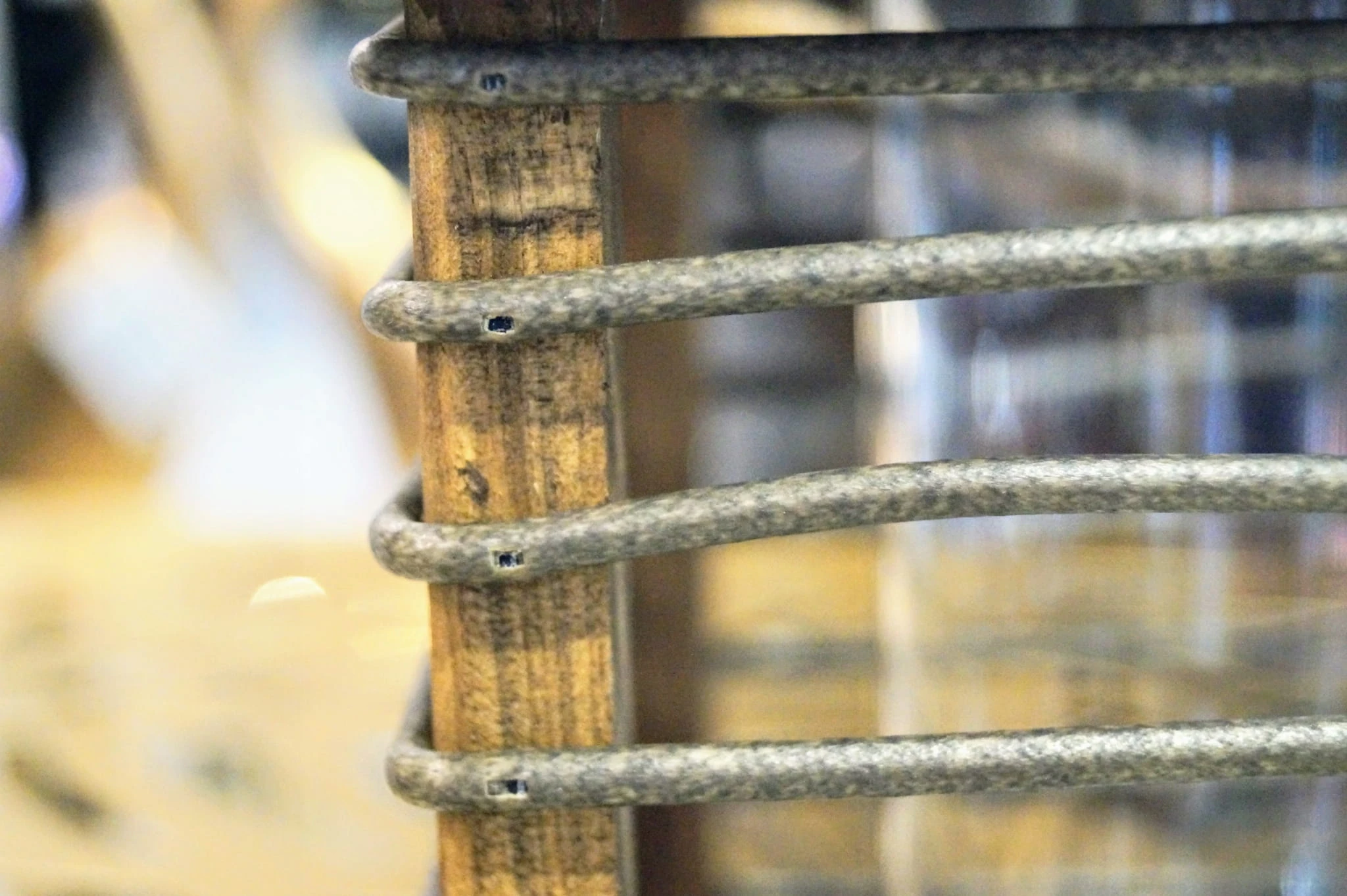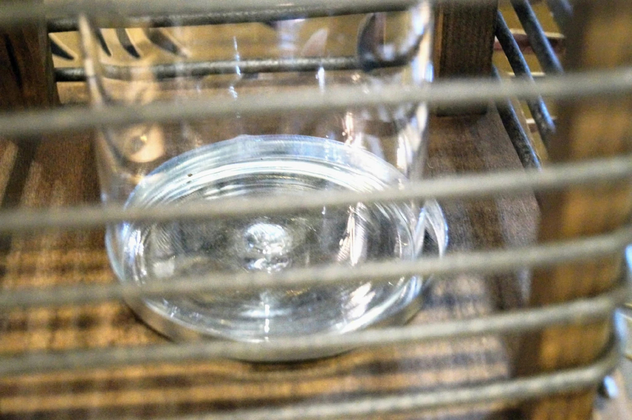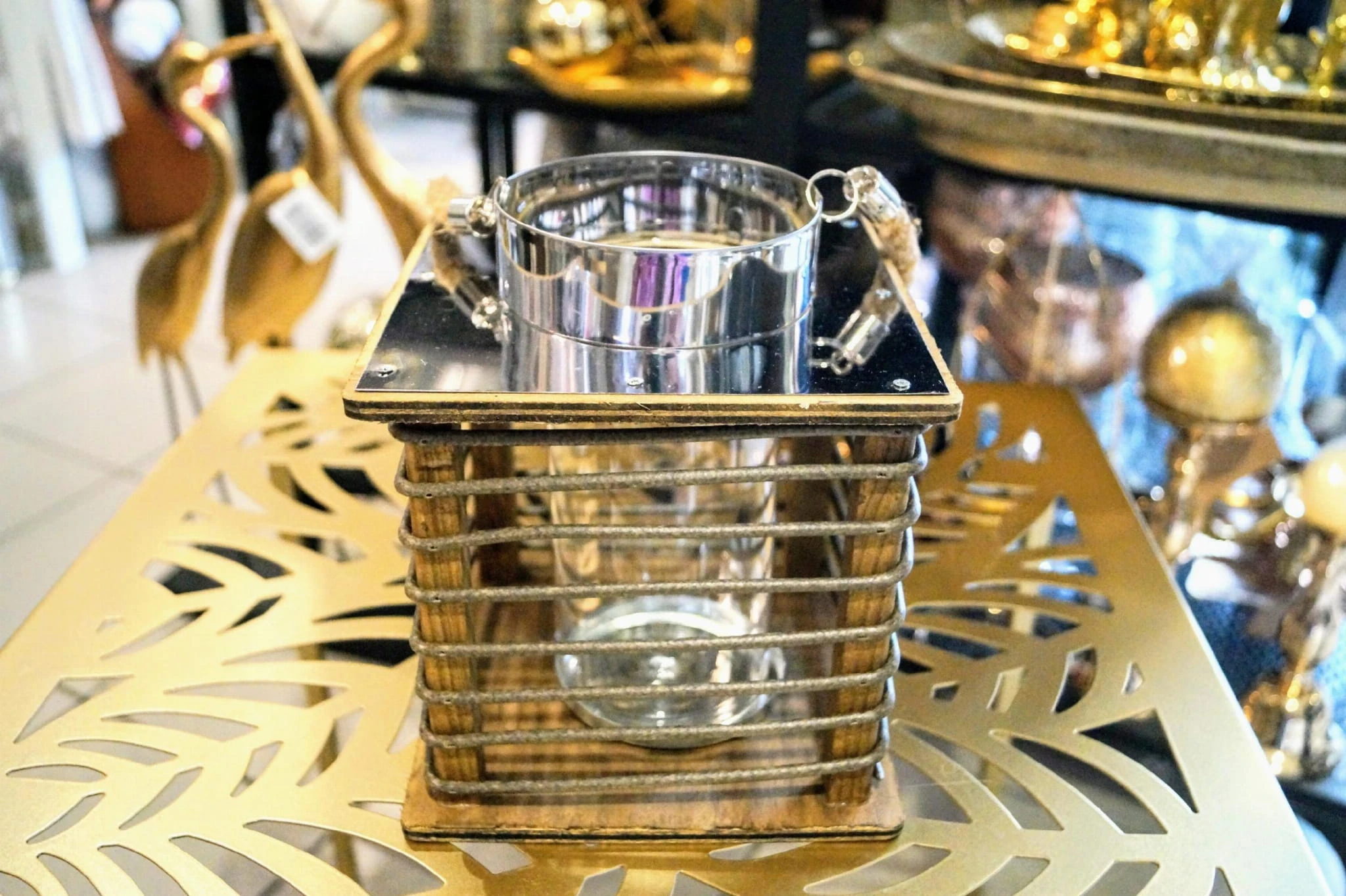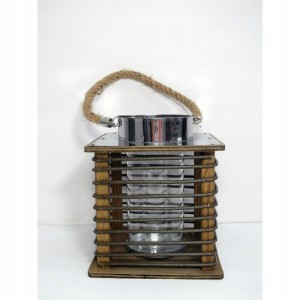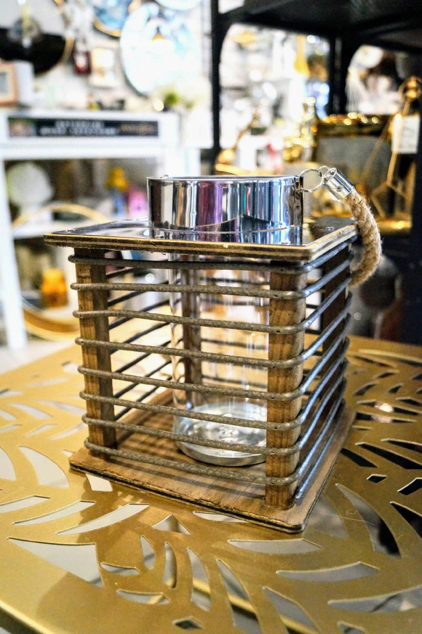 Drewniano-metalowy lampion z możliwością podwieszenia.