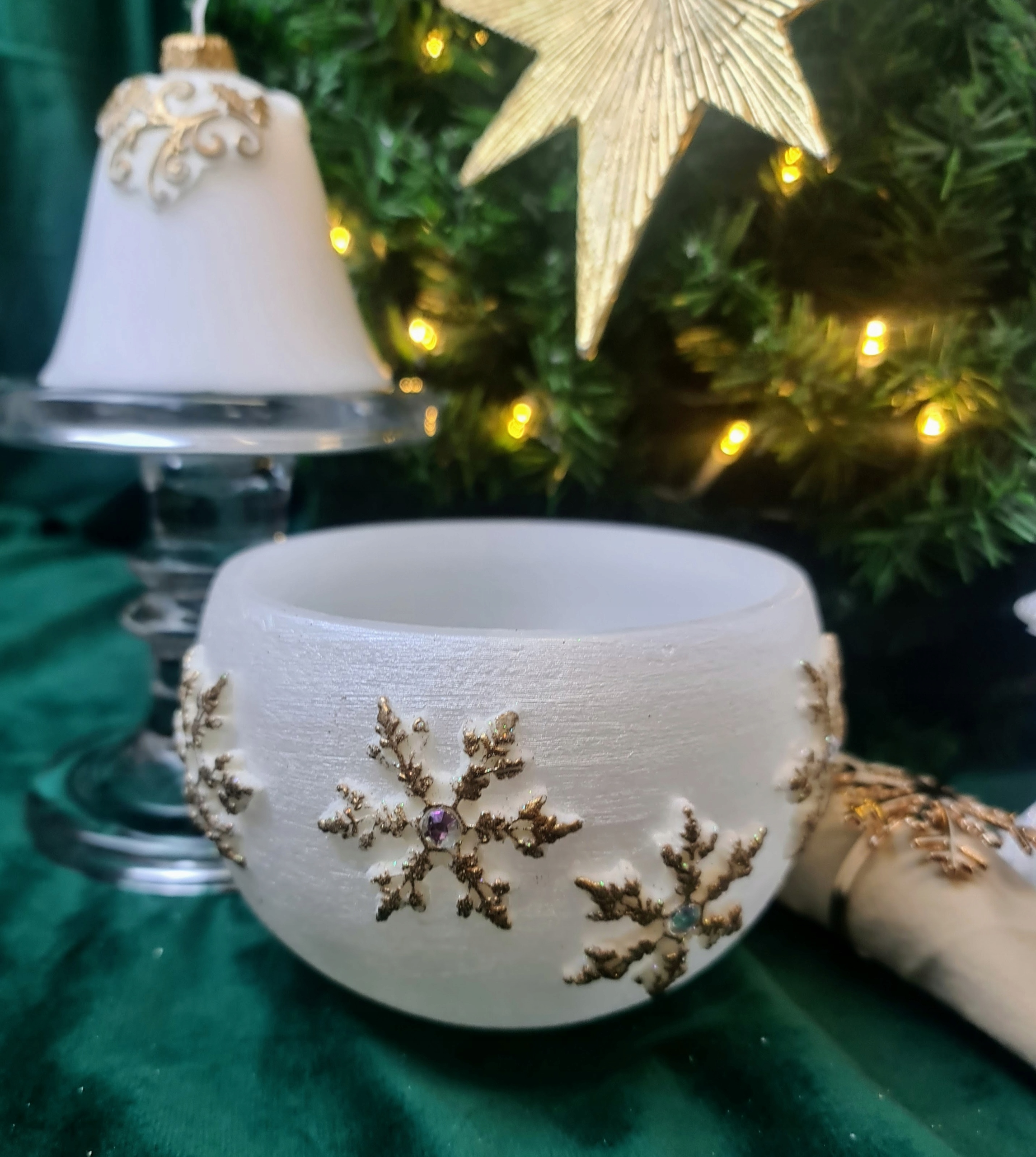 LAMPION ELEGANCKI FI120 ŚWIĘTA BIAŁY/PERŁOWY
