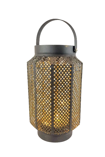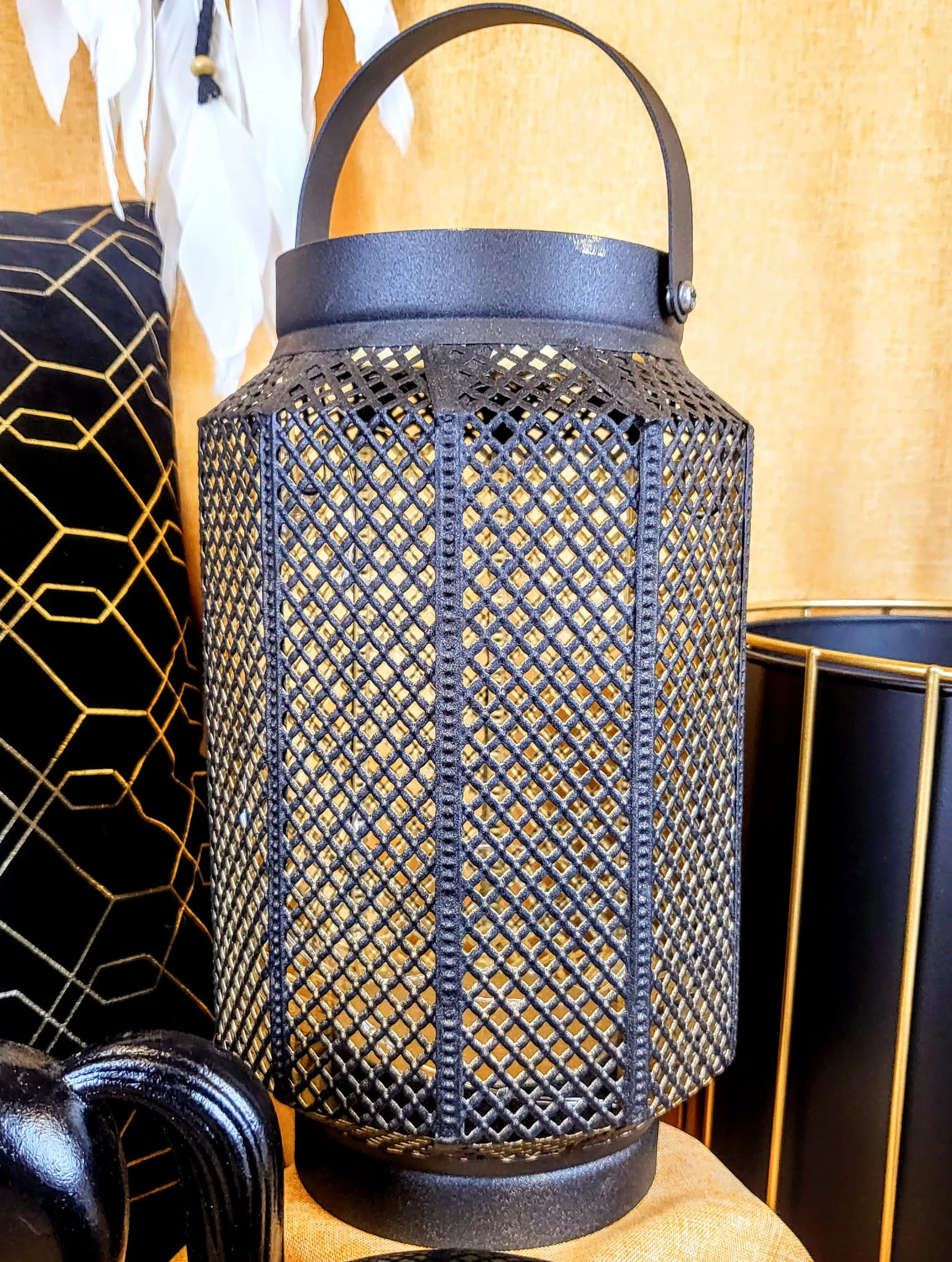 LAMPION METALOWY CZARNY Z LAMPKAMI LED 14,6X23CM