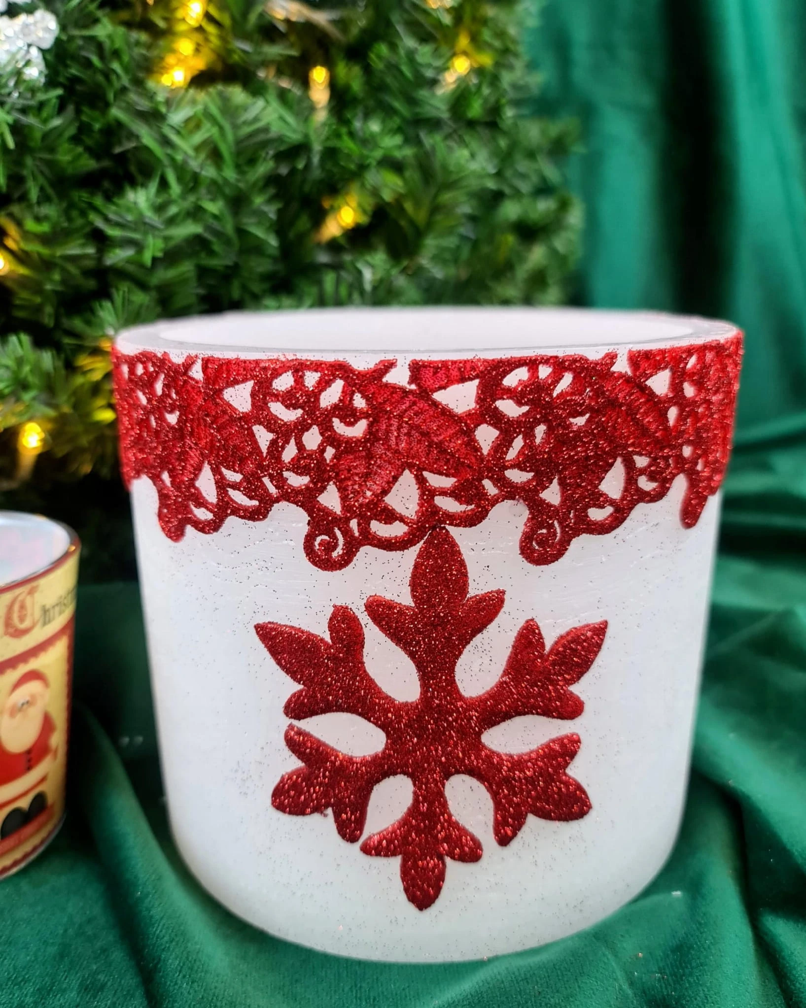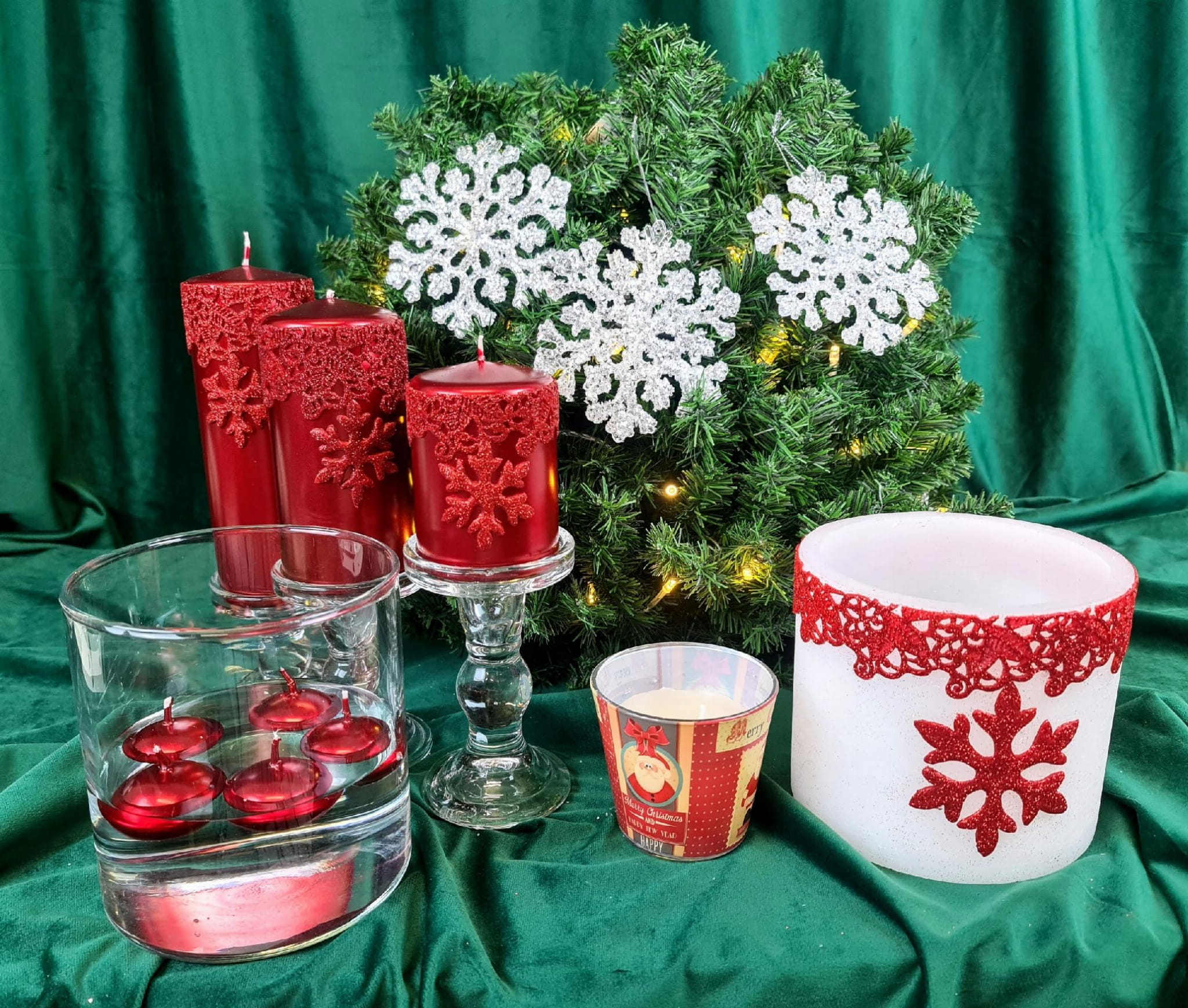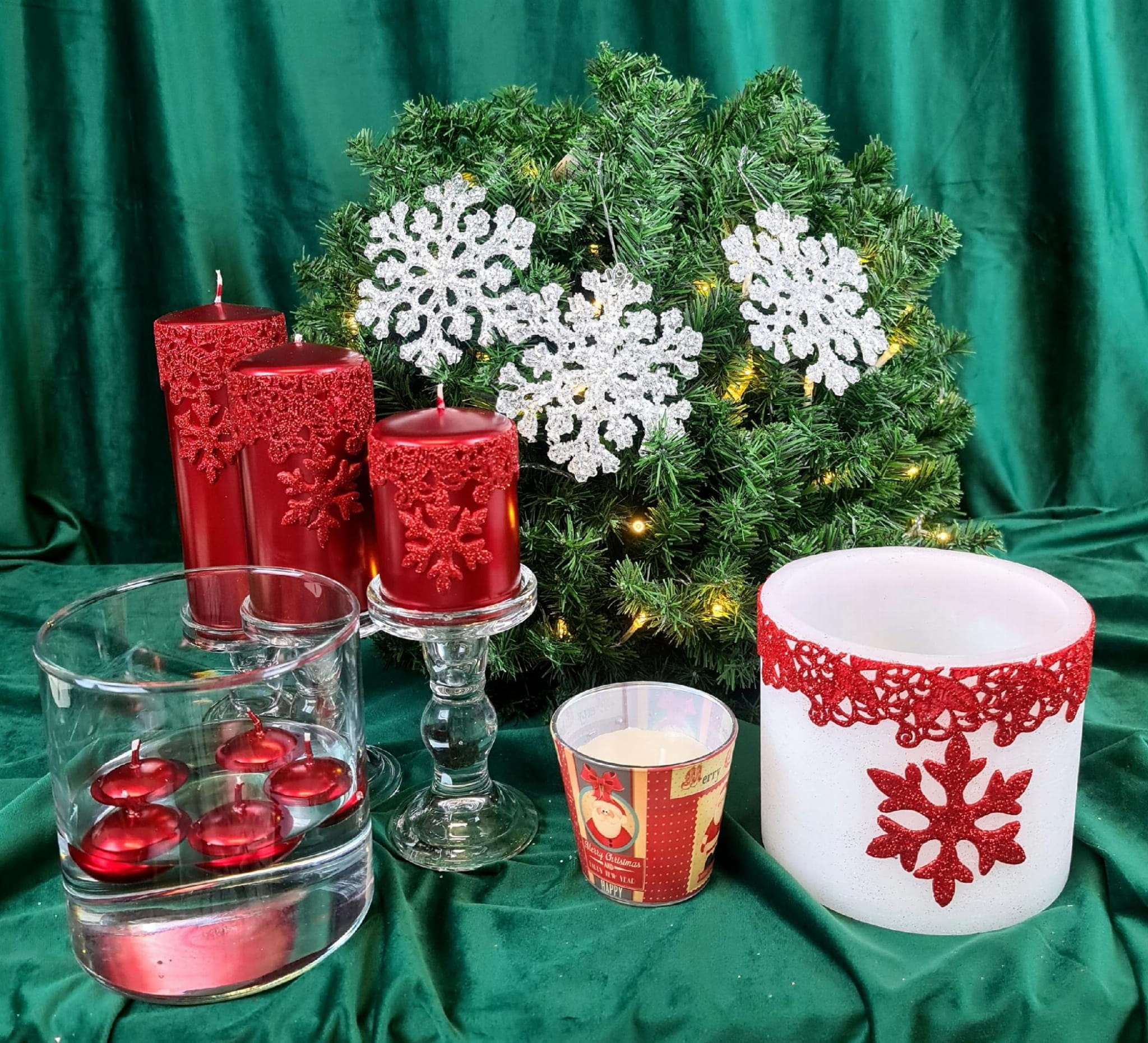 Świece i lampiony z serii BROKATOWA ŚNIEŻYNKA doskonale uprzyjemnią chwile spędzone wieczorem w domowym zaciszu lub dopełnią świąteczne aranżacje.