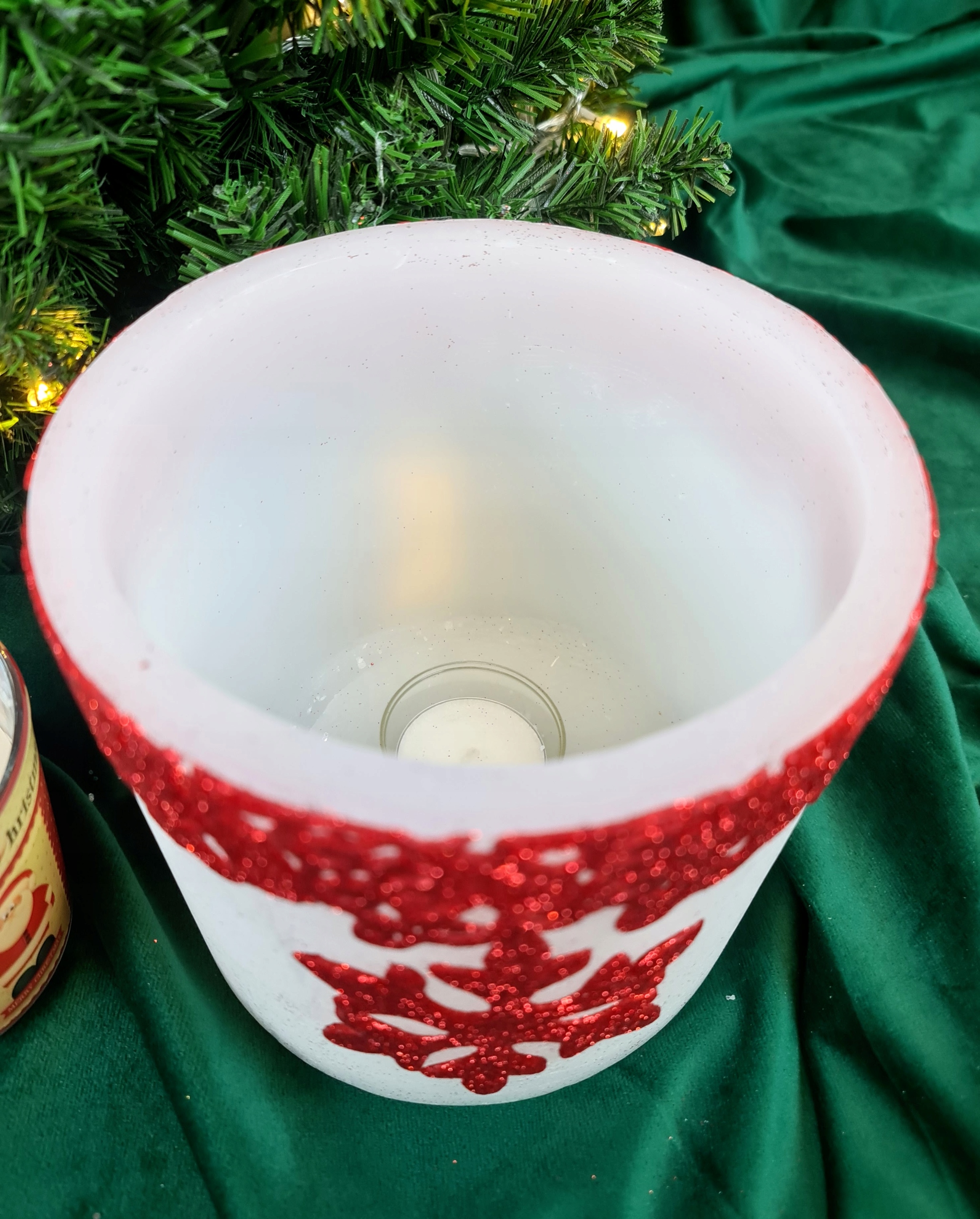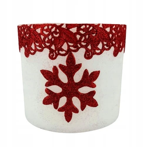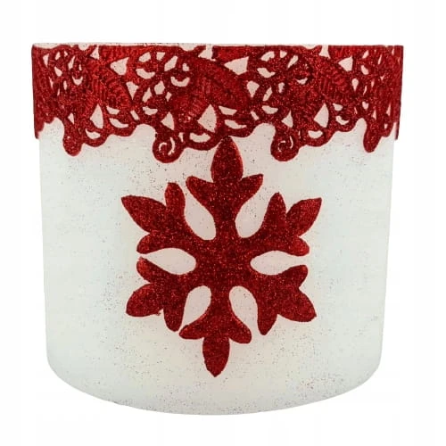 LAMPION OWAL BIAŁY GLITTER STAR ŚNIEŻYNKA CZERWONA