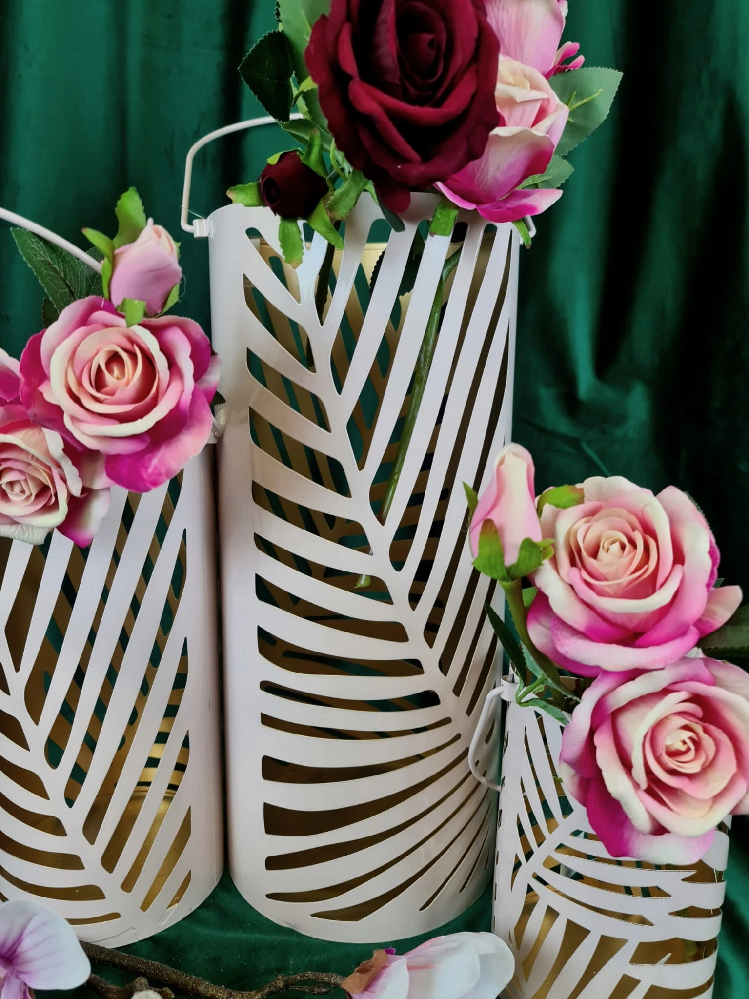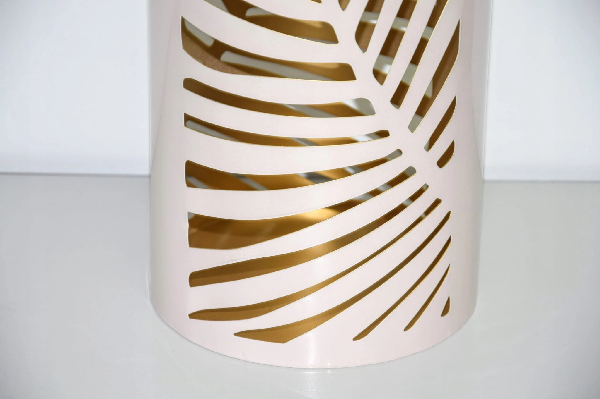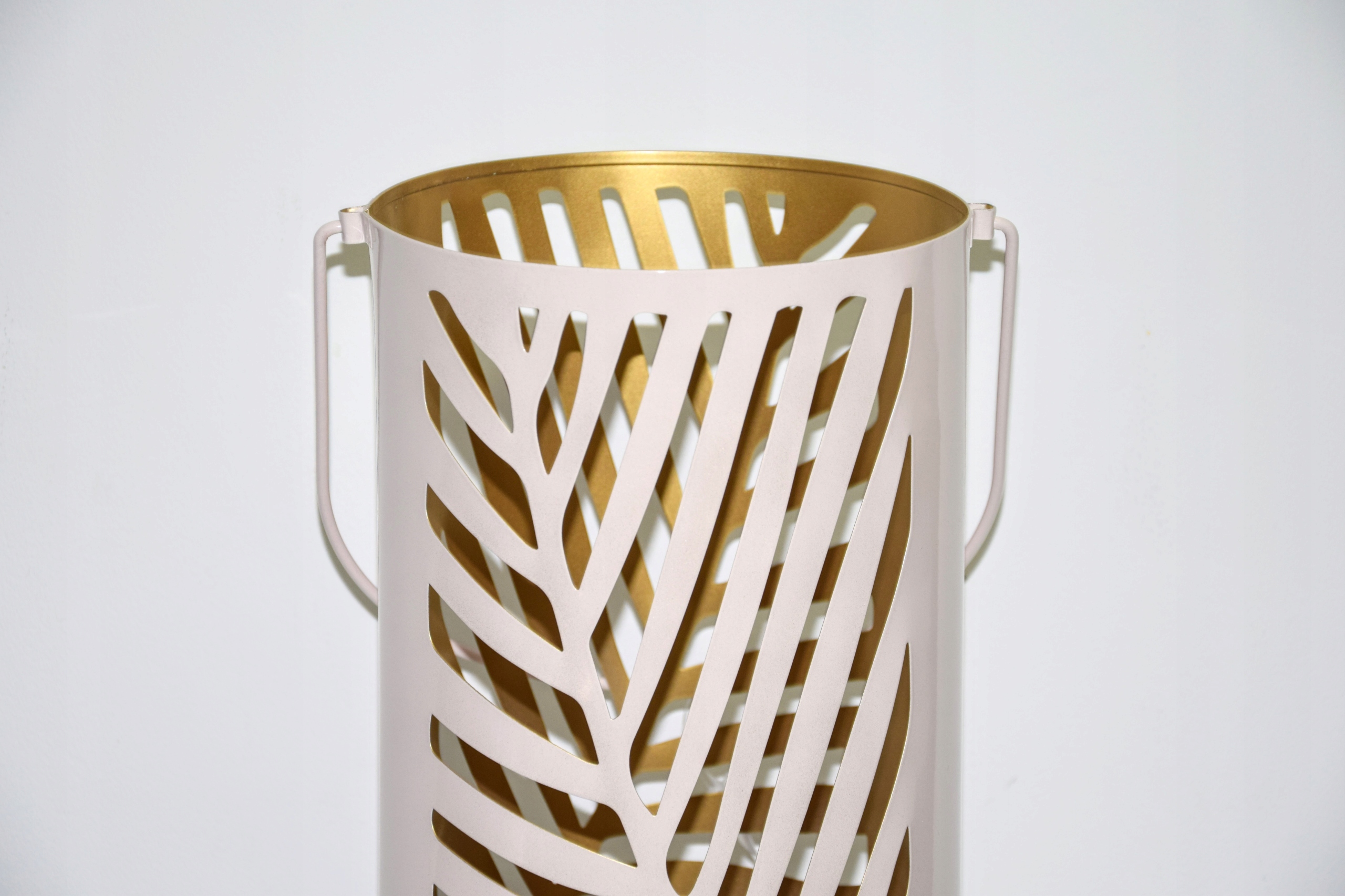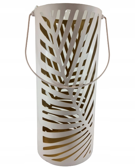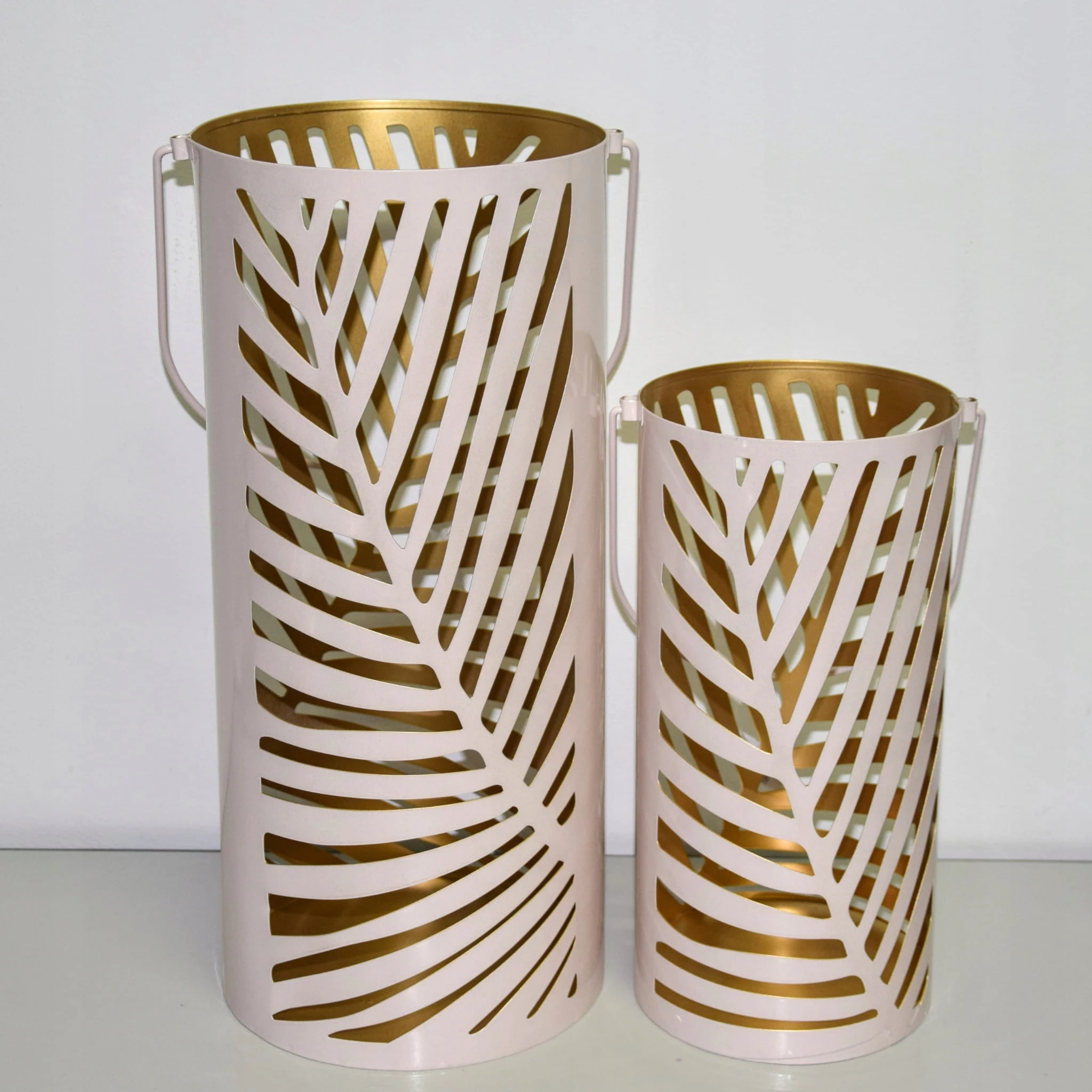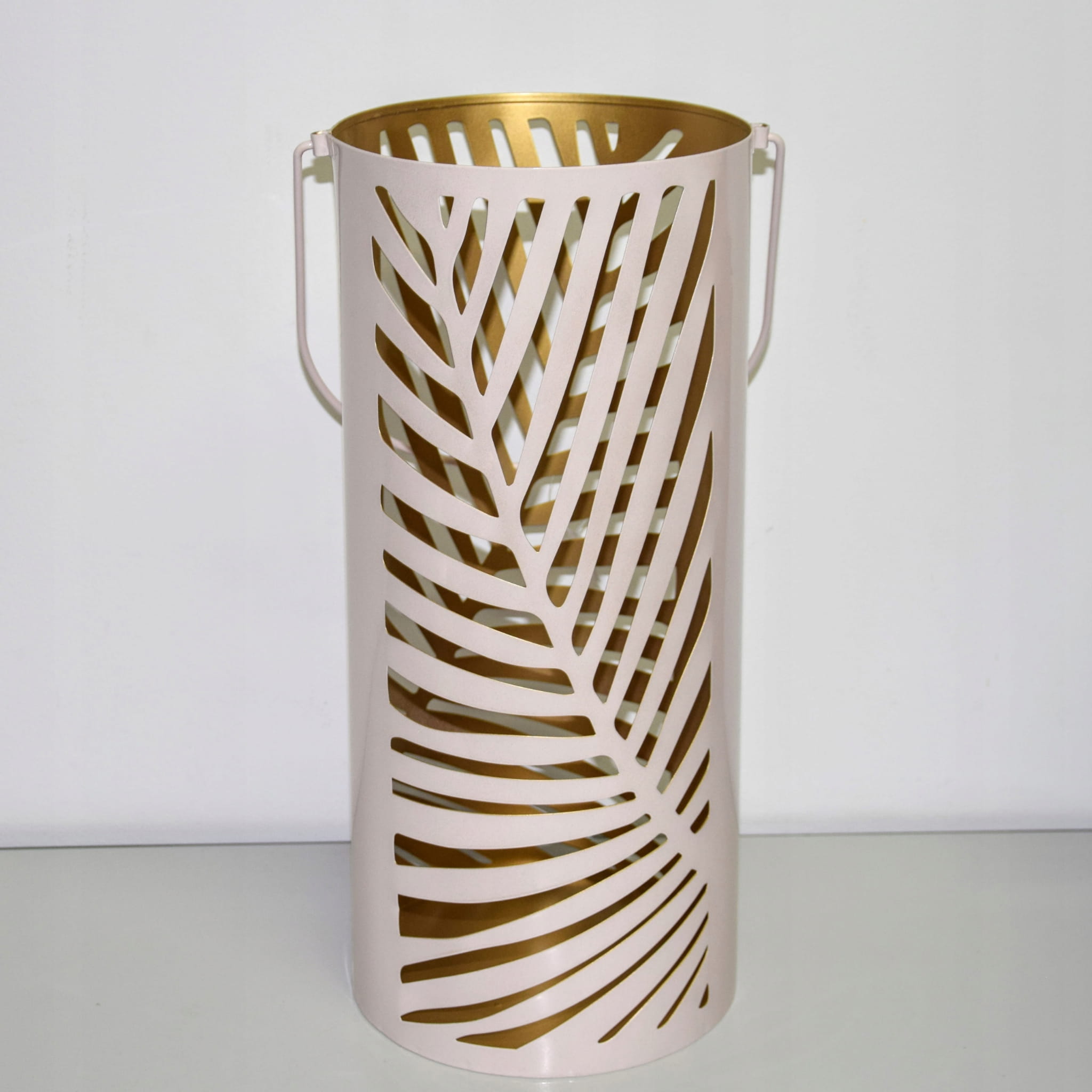 Ażurowa latarnia w jasnoróżowym kolorze, zdobiona motywem liści. Wprowadzi wyjątkową atmosferę w nowoczesnych wnętrzach.