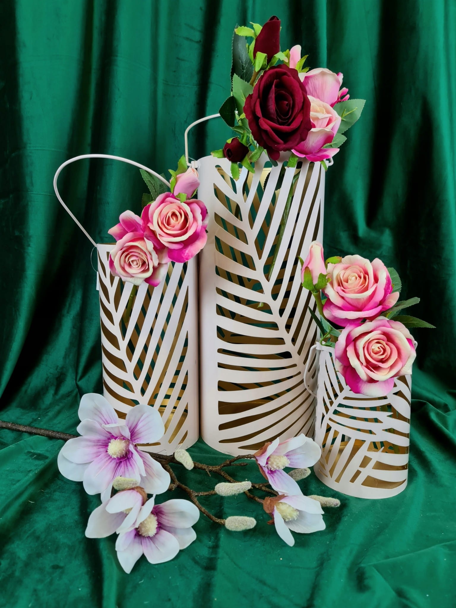 LAMPION PUDROWY RÓŻ W LIŚCIE DUŻY 20X44,50
