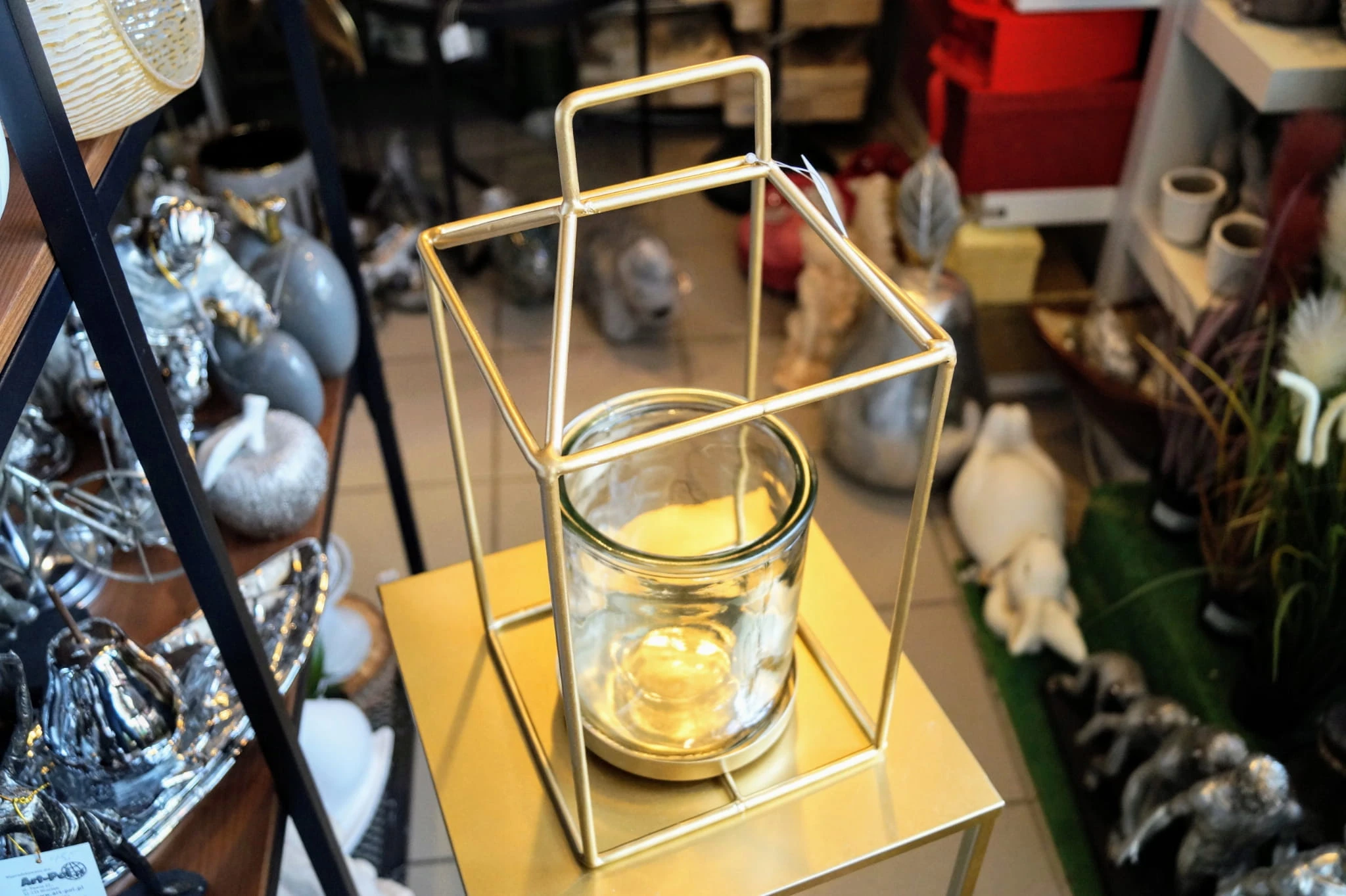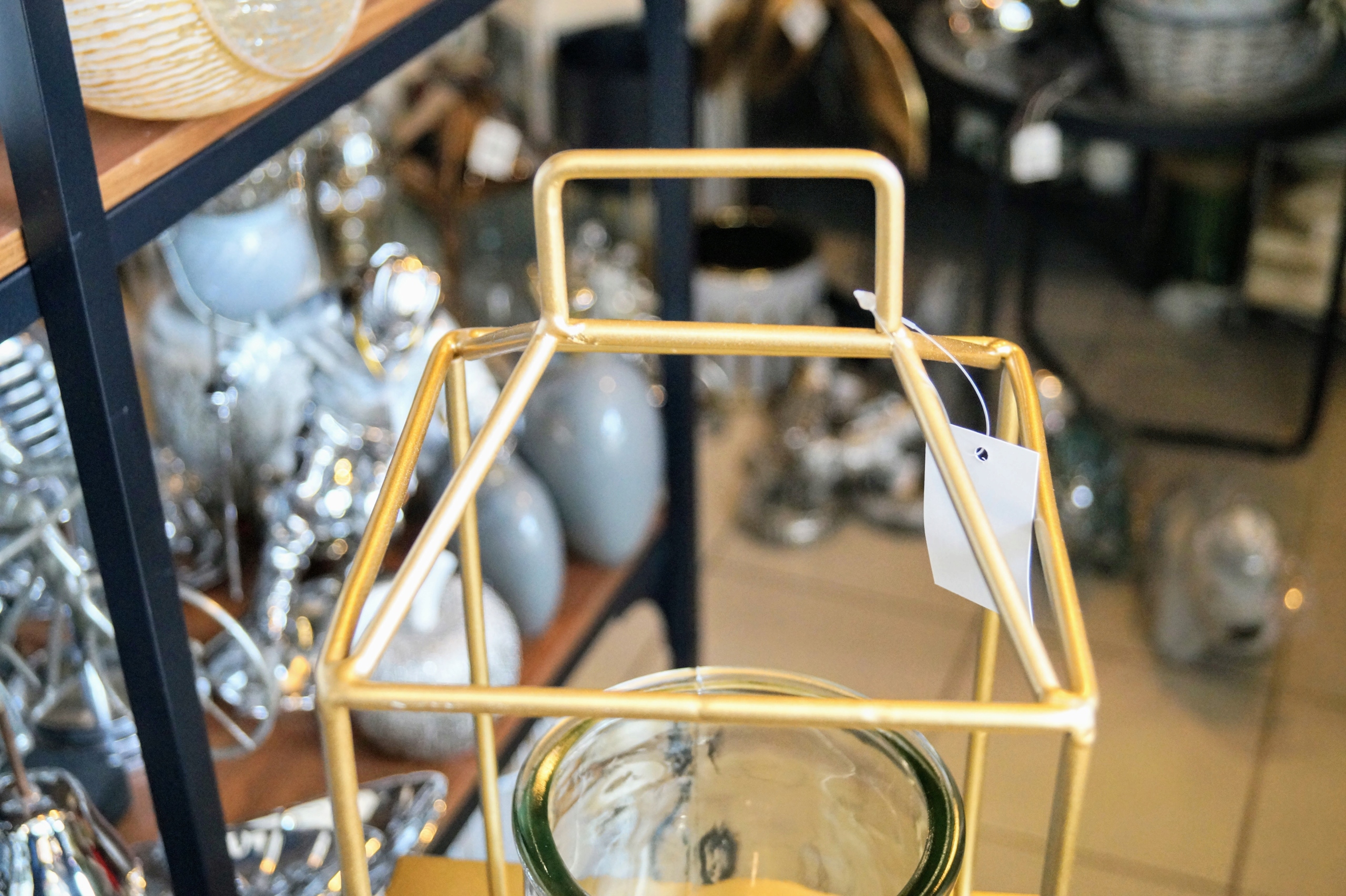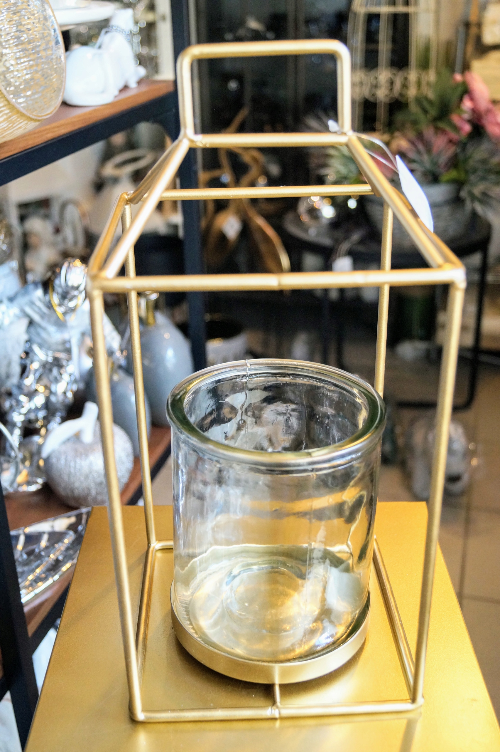 LATARNIA METALOWA ZŁOTA ŚREDNIA 33cm