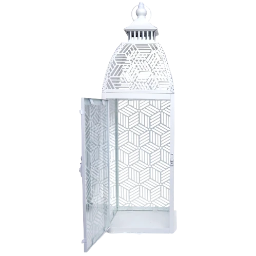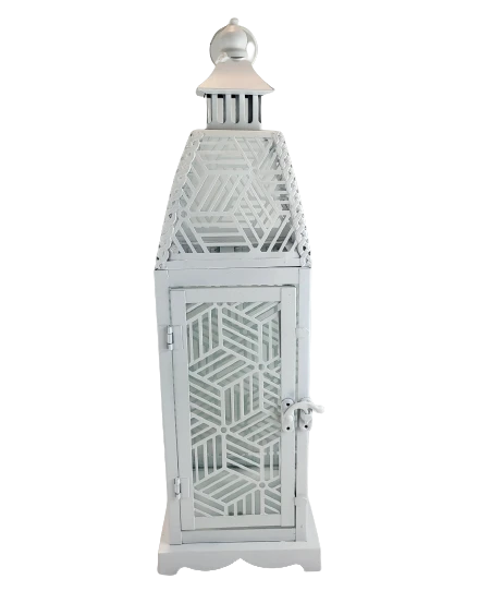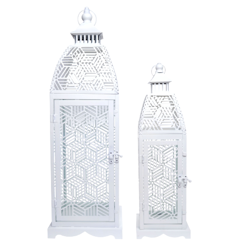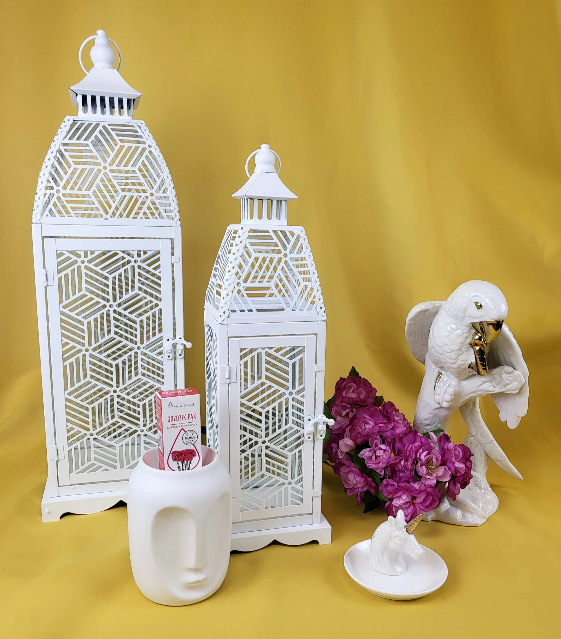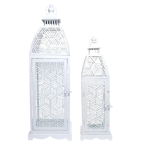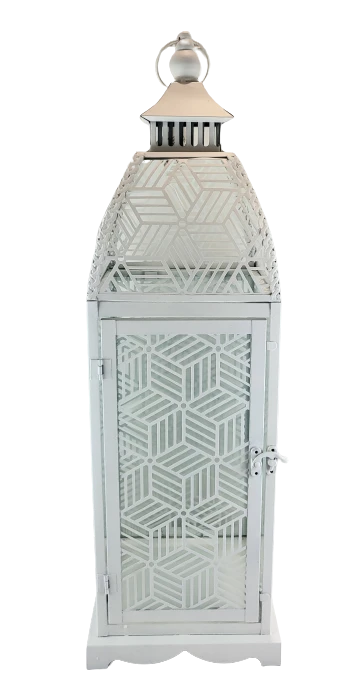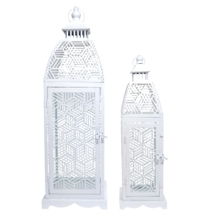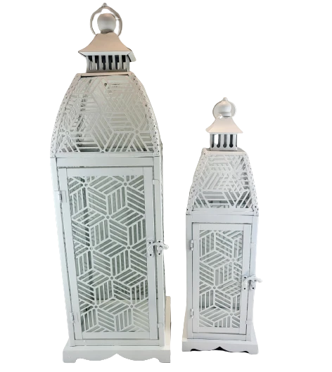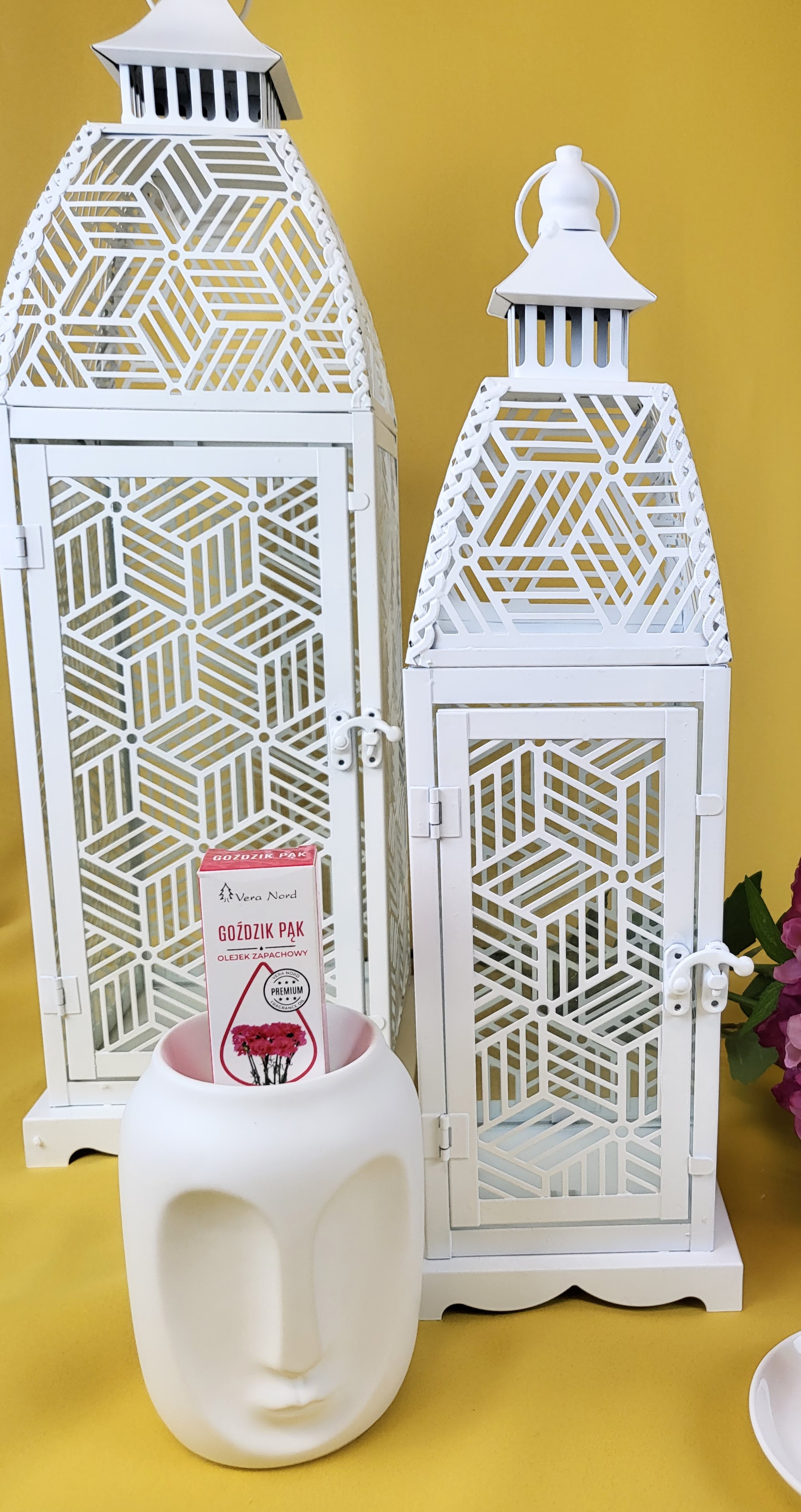LATARNIE KOMPLET METALOWA BIAŁA 13X13X42