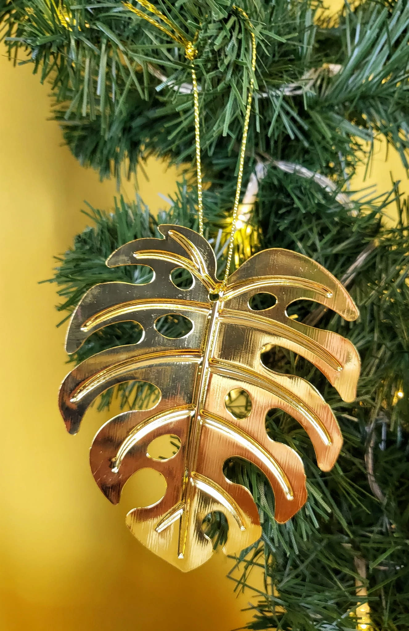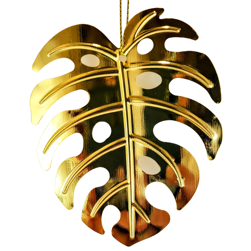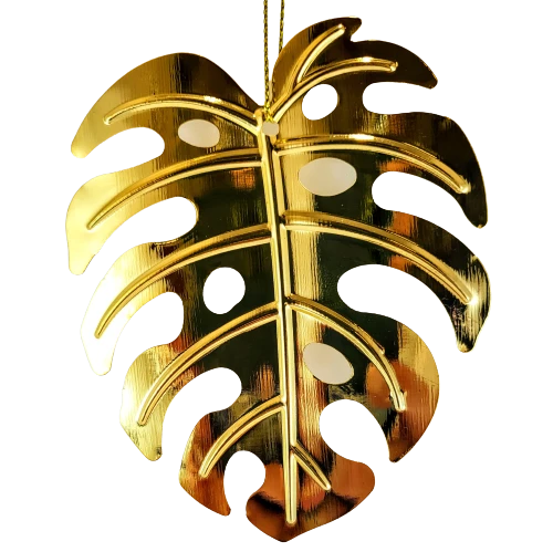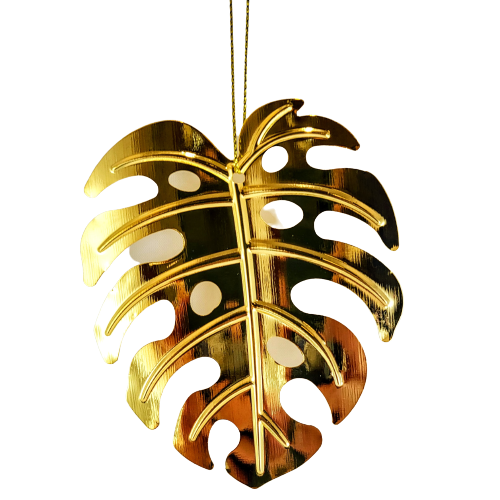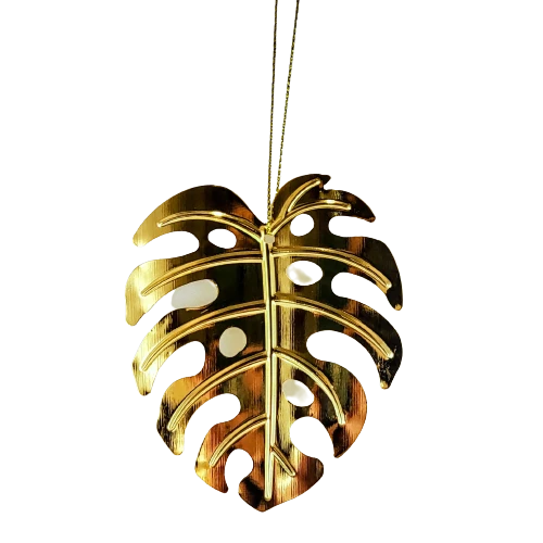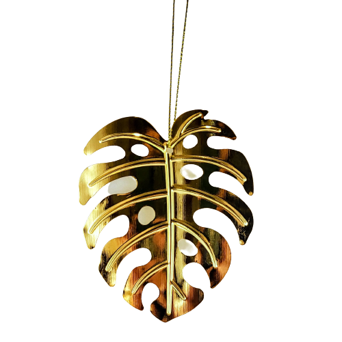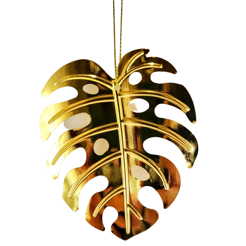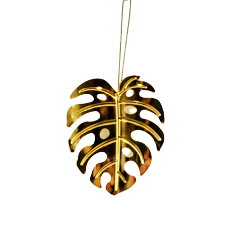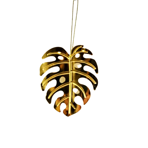 Metalowa zawieszka w formie liścia monstery, będzie perfekcyjnym akcentem jako ozdoba w oknie, na roślinie, przy prezencie lub na choince.