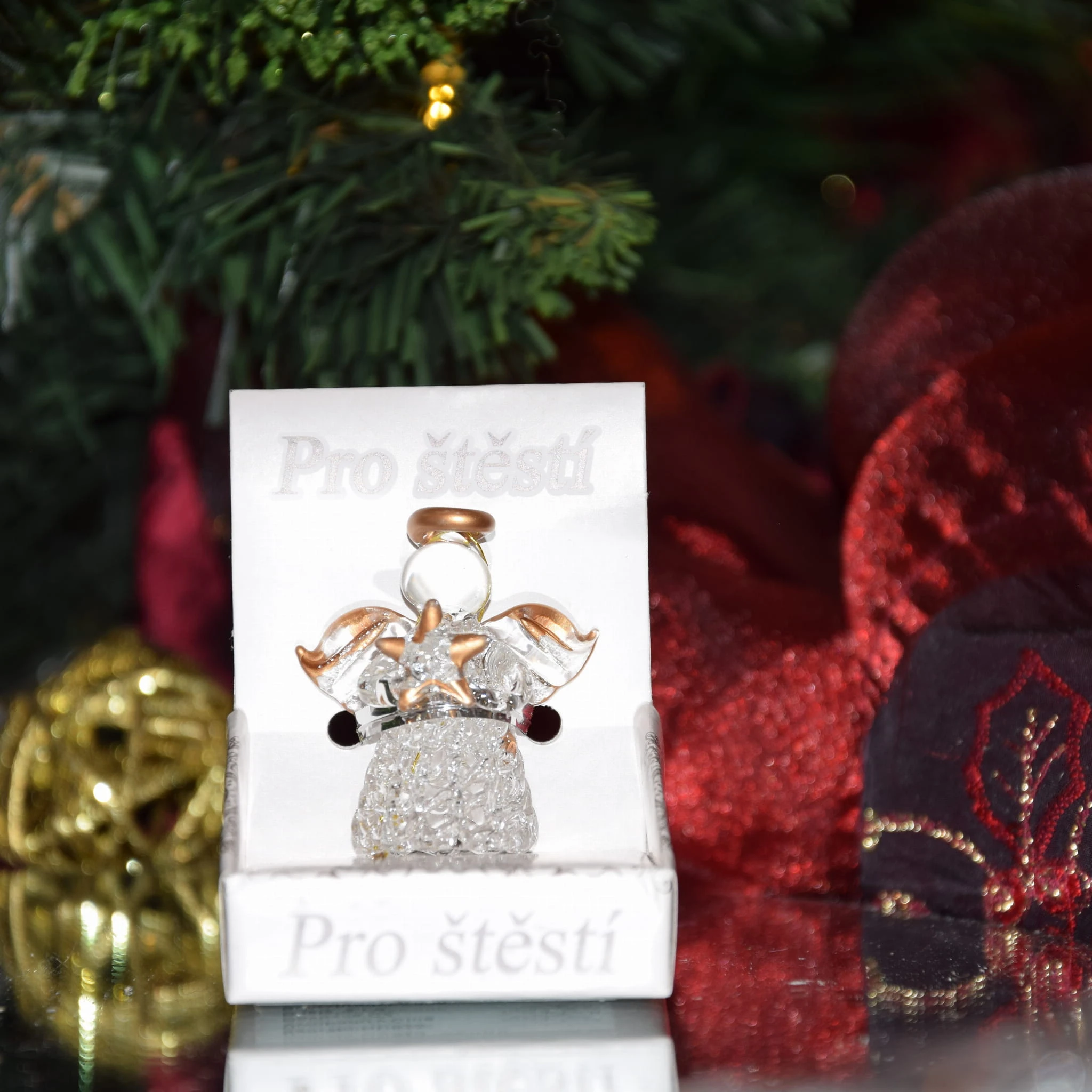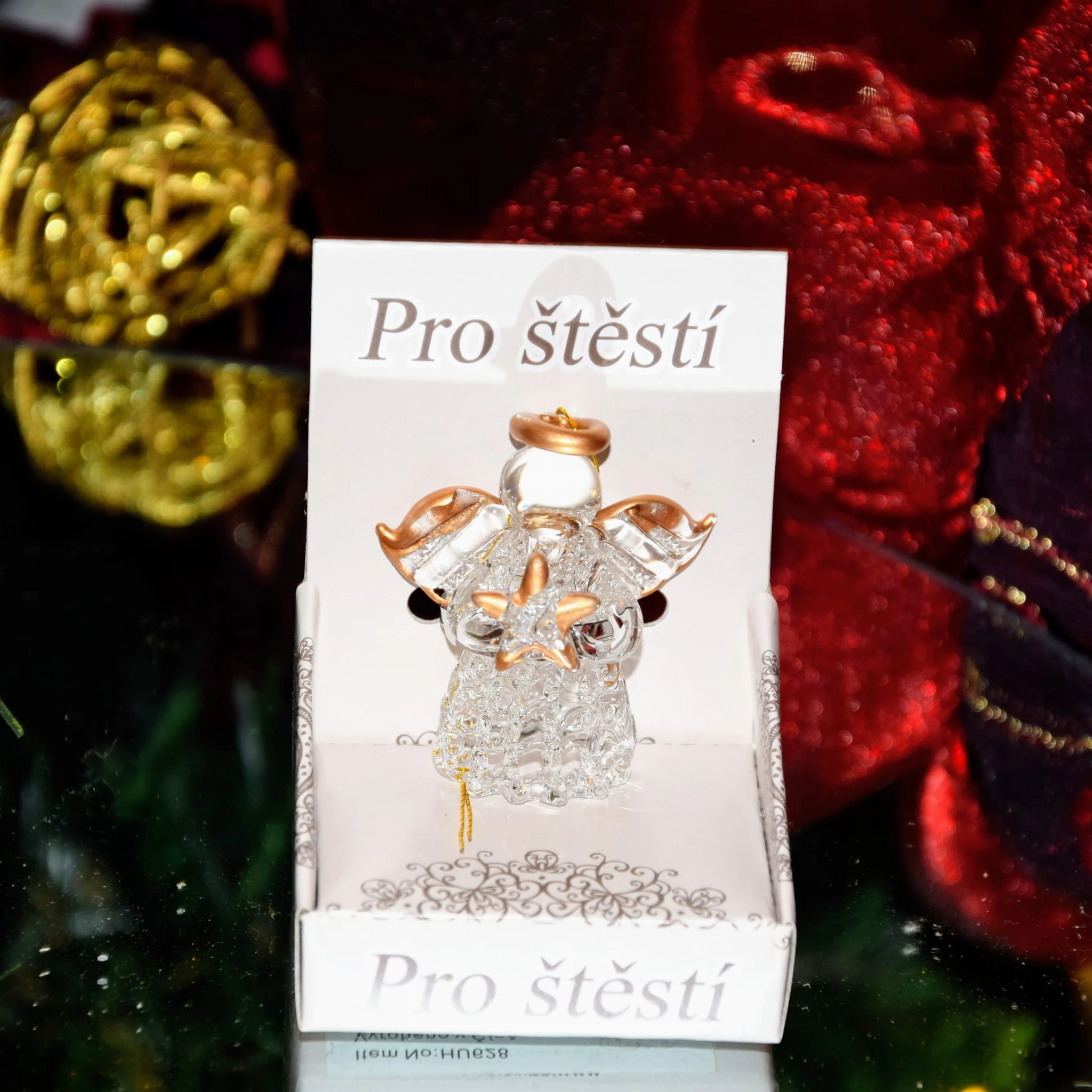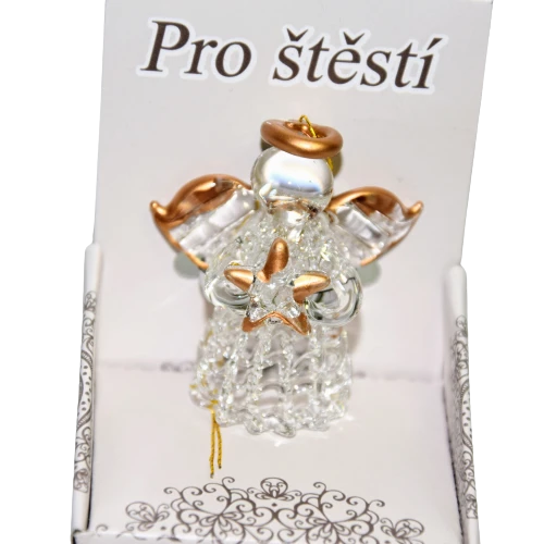 MAŁY SZKLANY ANIOŁ Z GWIAZDĄ 3x4,5x3 CM