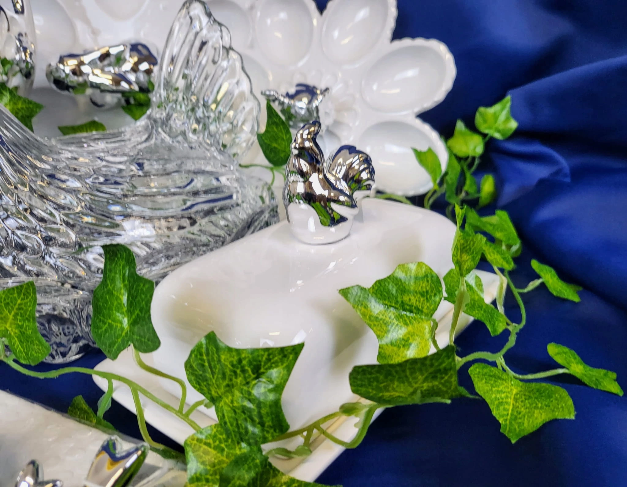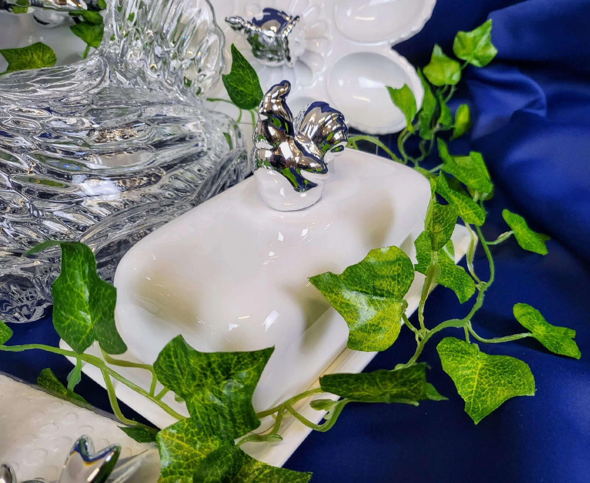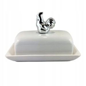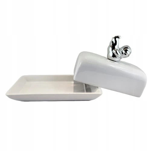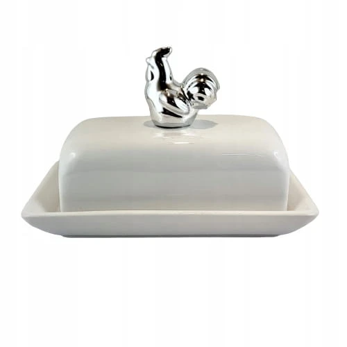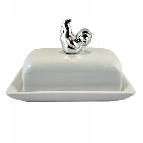 MASELNICZKA CERAMICZNA BIAŁA ZE SREBRNYM KOGUTEM