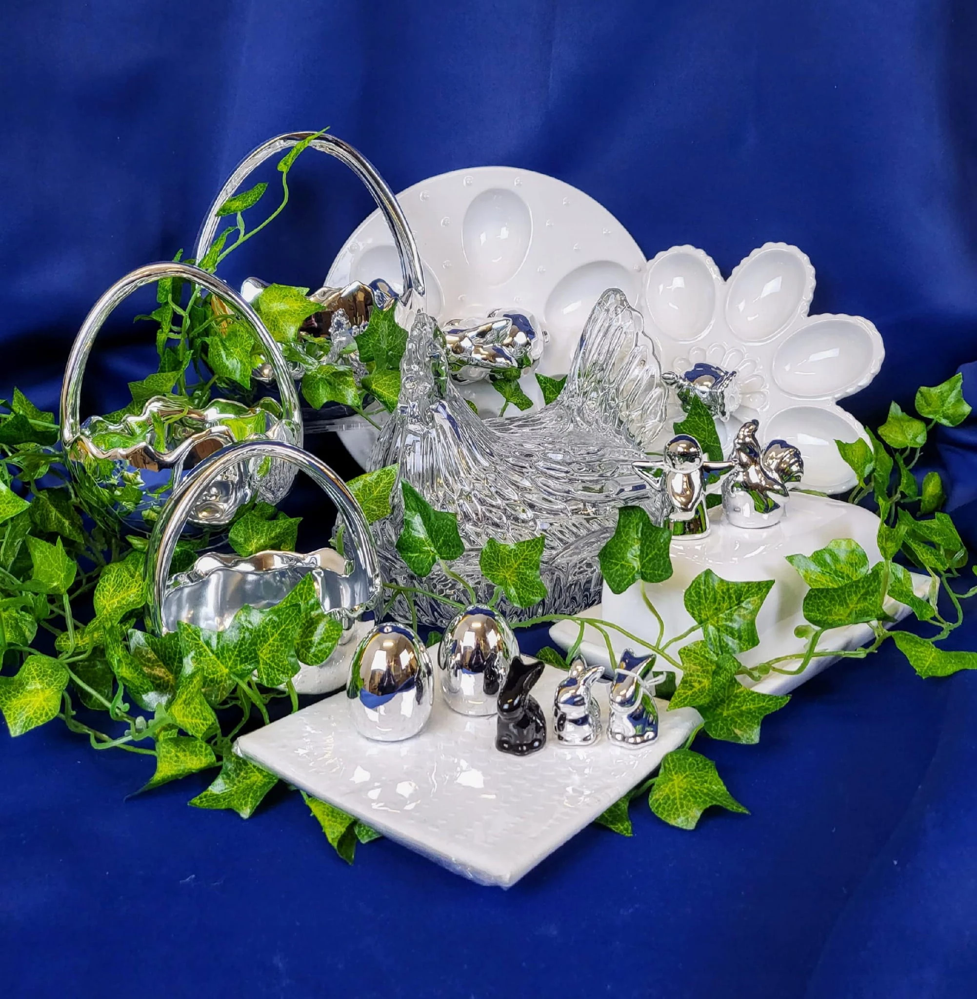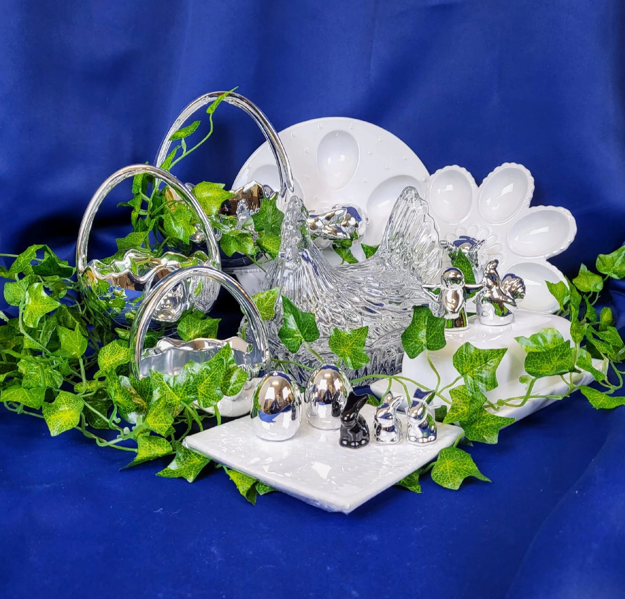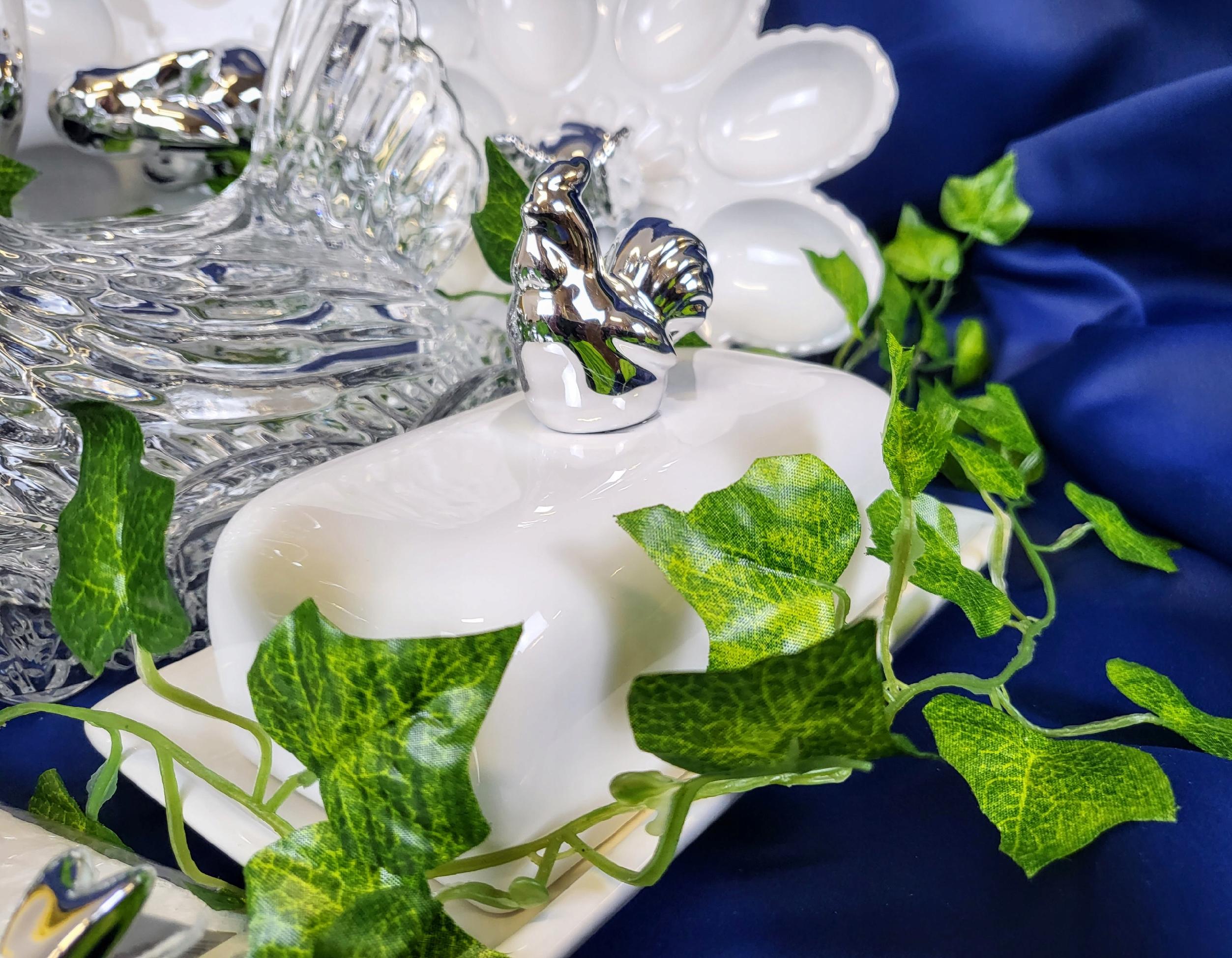 MASELNICZKA CERAMICZNA BIAŁA ZE SREBRNYM KOGUTEM
