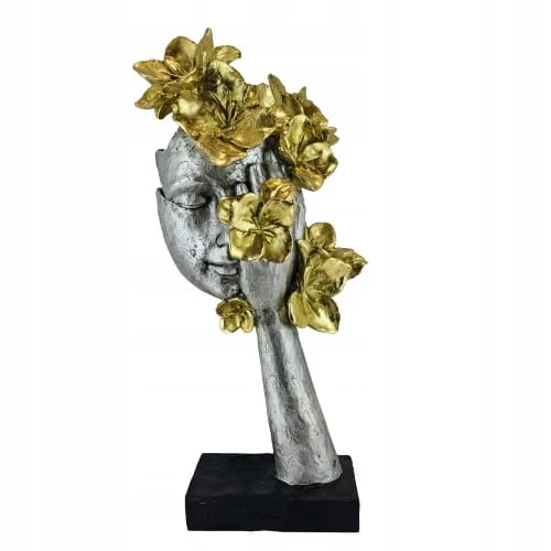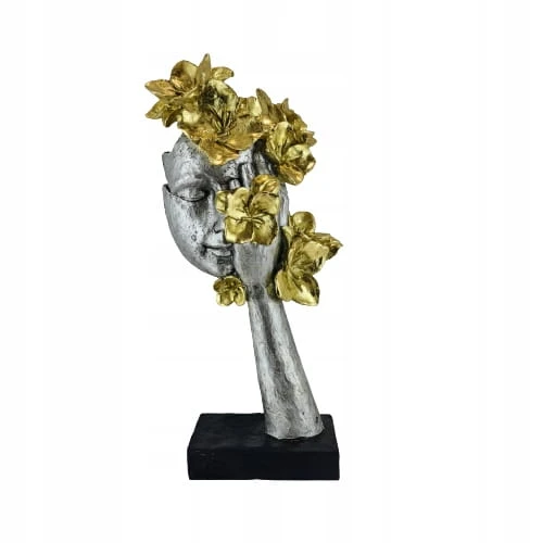 Postaw rzeźbę w salonie na stoliku by urozmaić wnętrze. Oryginalna figura zwraca uwagę precyzyjnym wykonaniem oraz teatralną formą. Figura w stylu vintage doskonale będzie wyglądać w Twoim biurze na półce. Ciekawa ręcznie malowana figurka, którą warto umieścić w pokoju dziecka na biurku lub półce. Złota, wysoka maska to ciekawa propozycja na prezent.