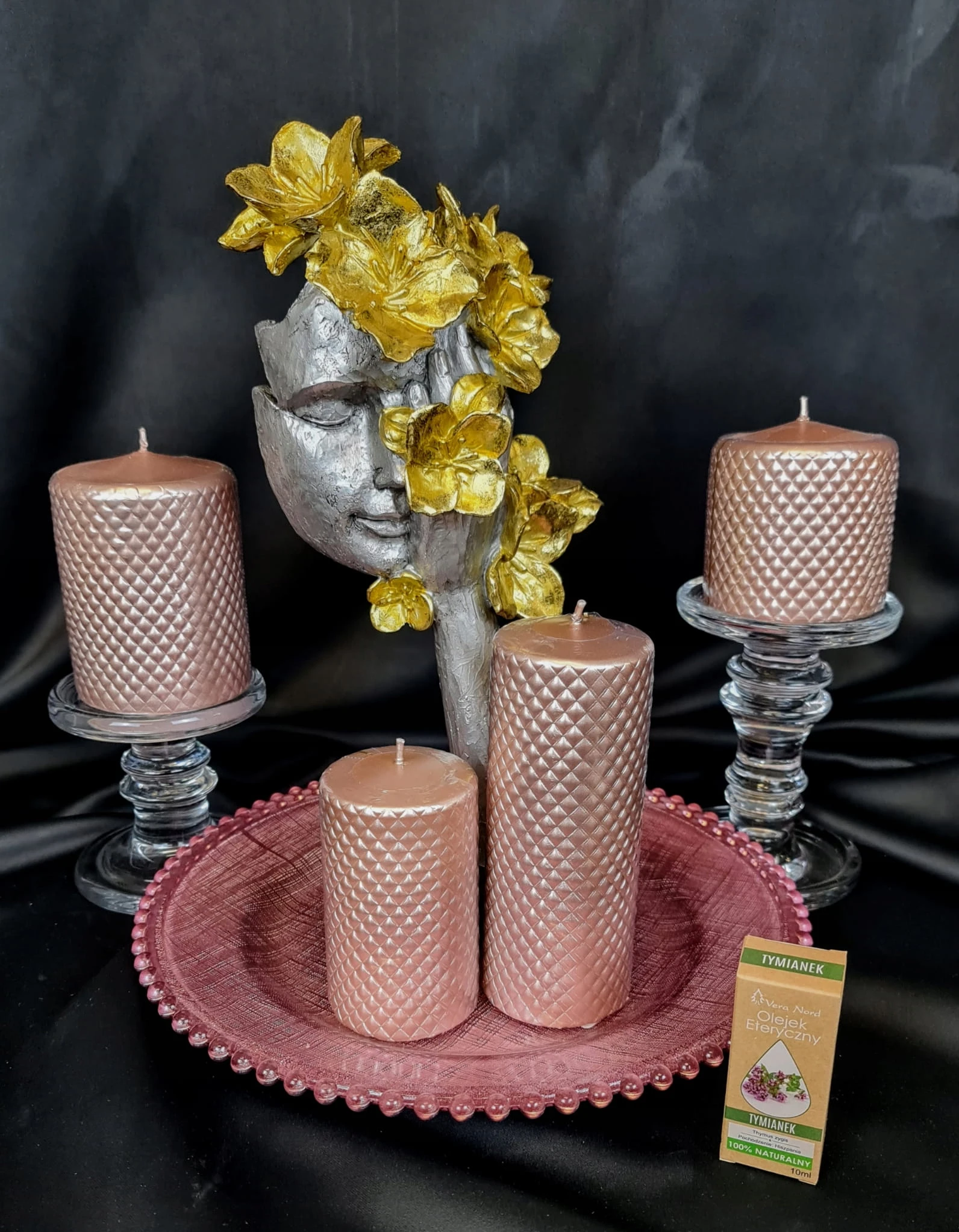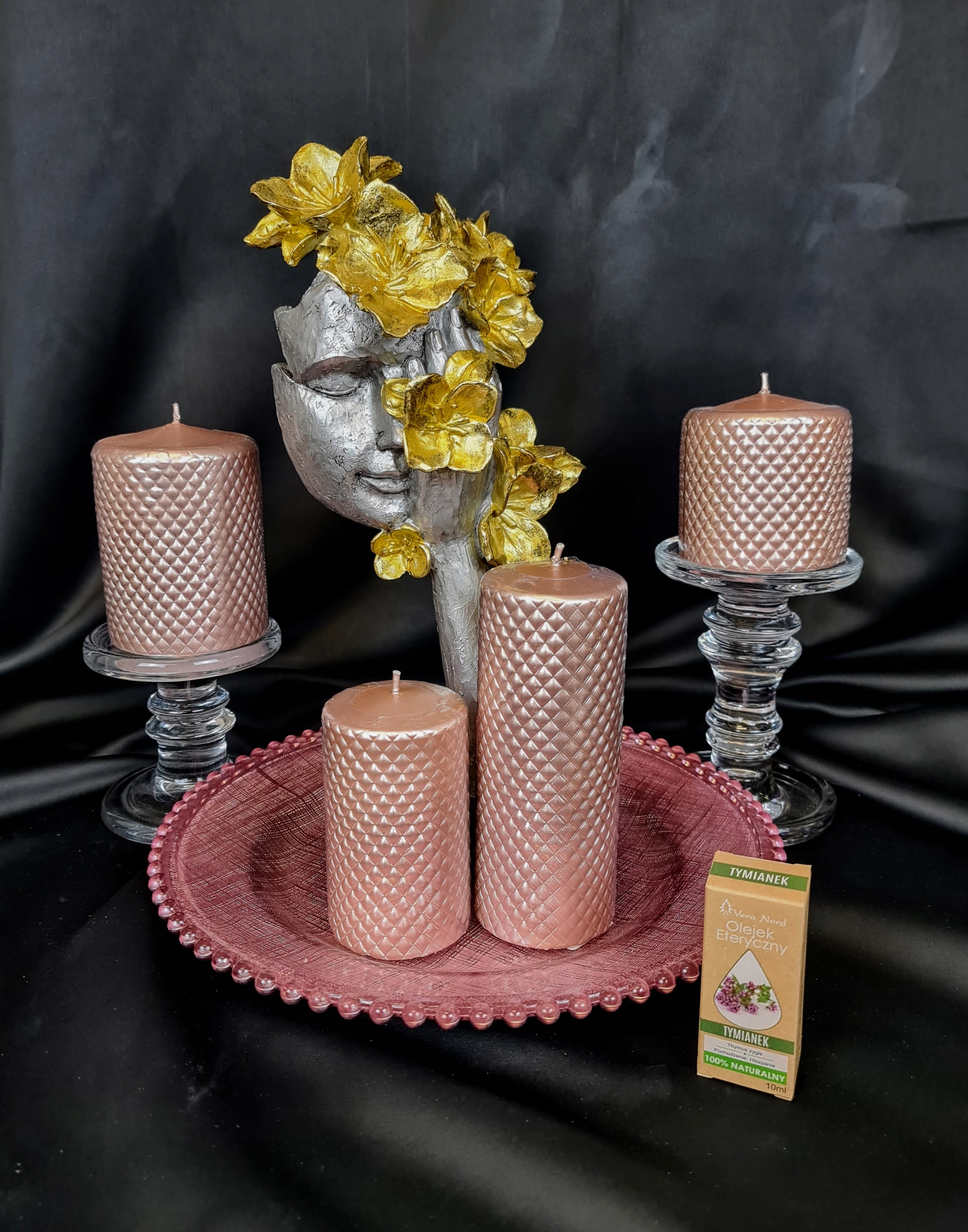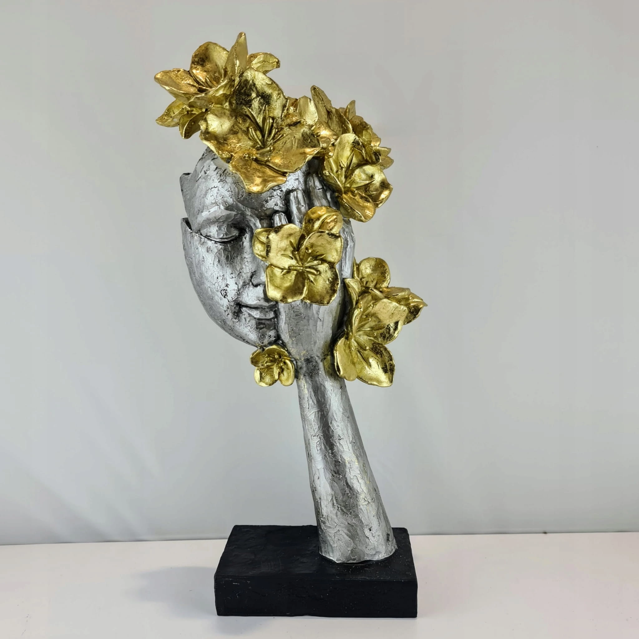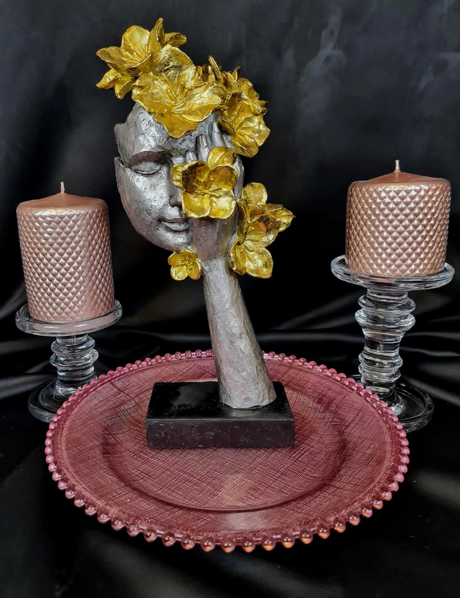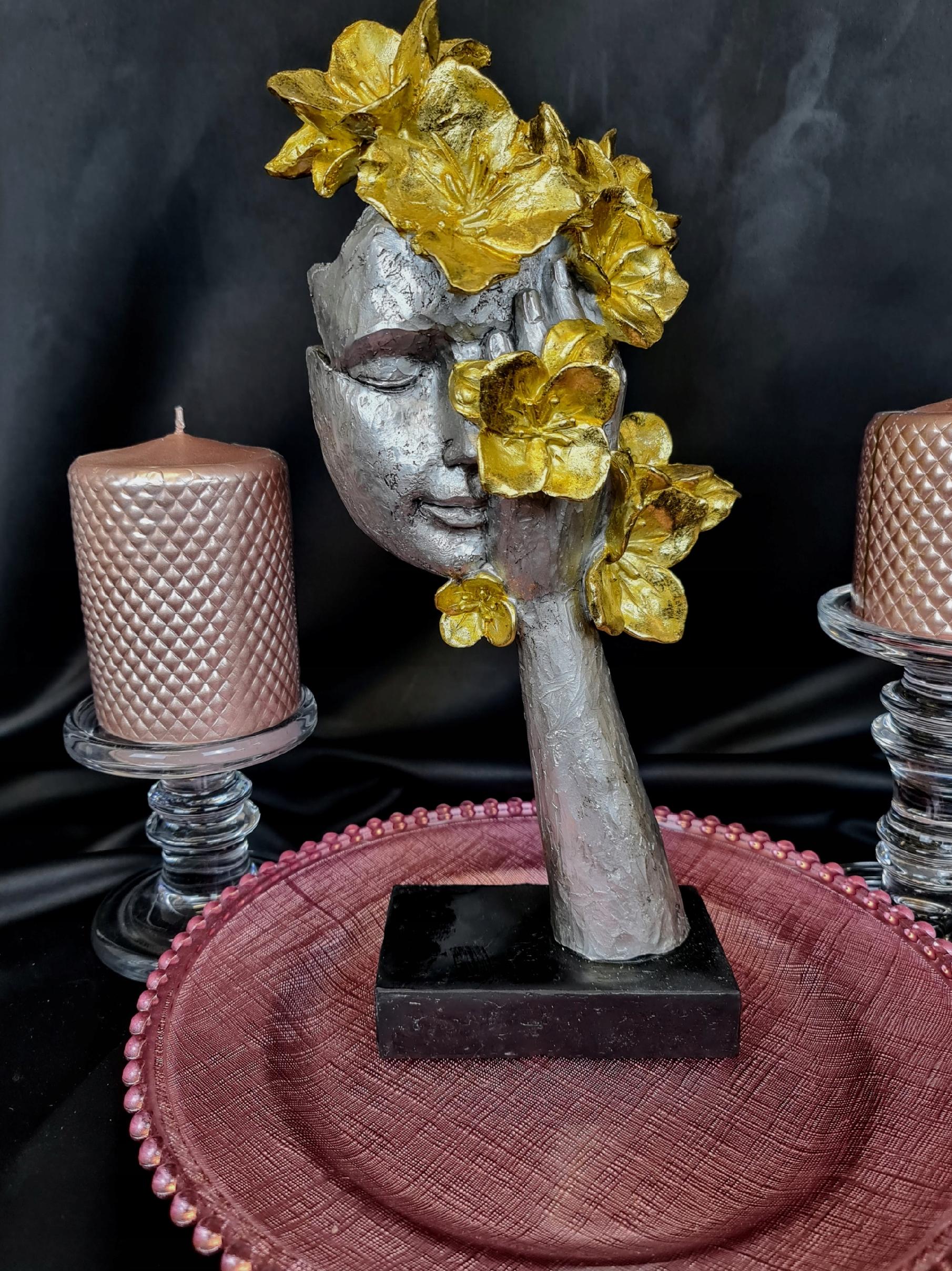 MASKA NA PODSTAWIE Z KWIATAMI SREBRNO-ZŁOTA