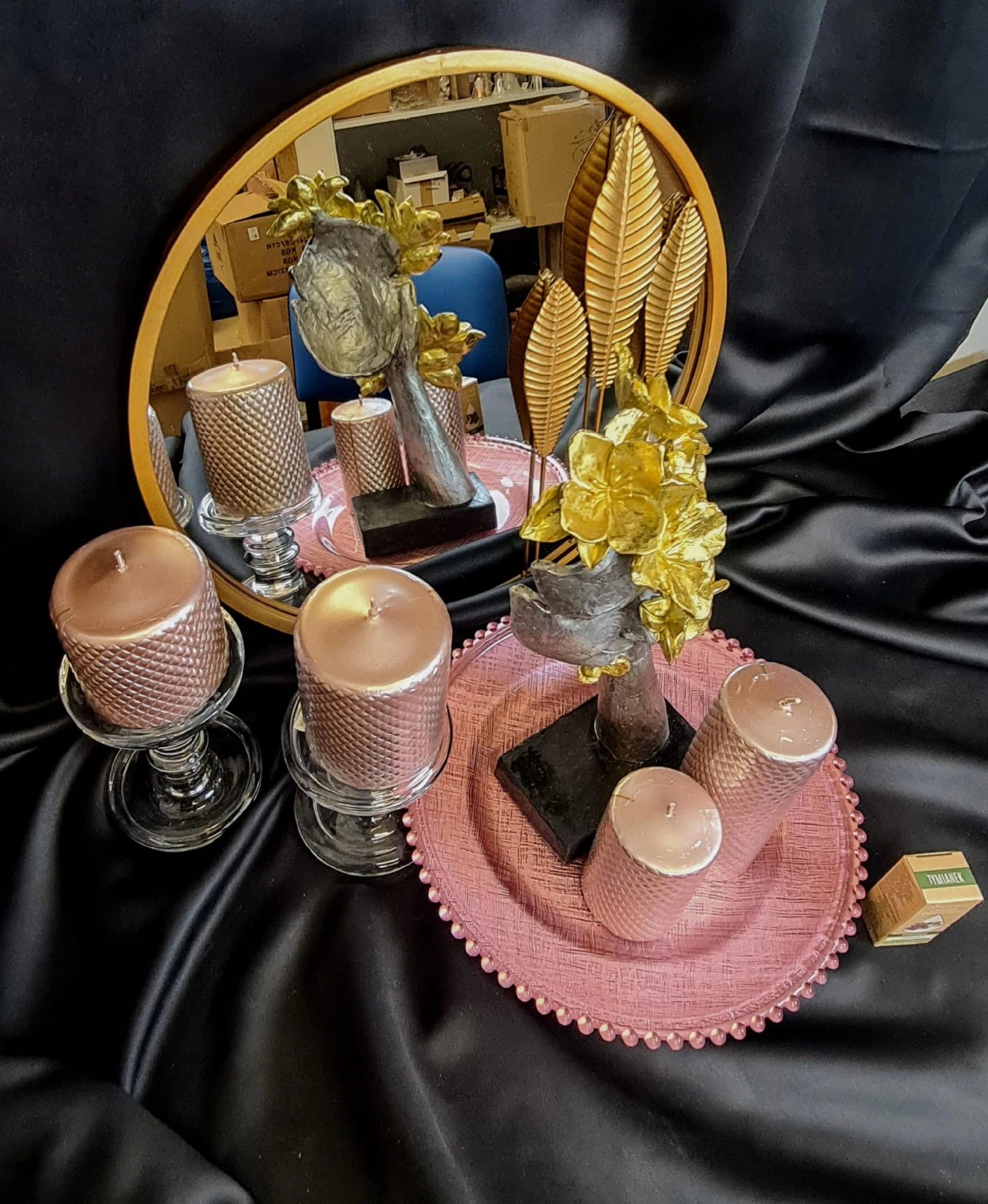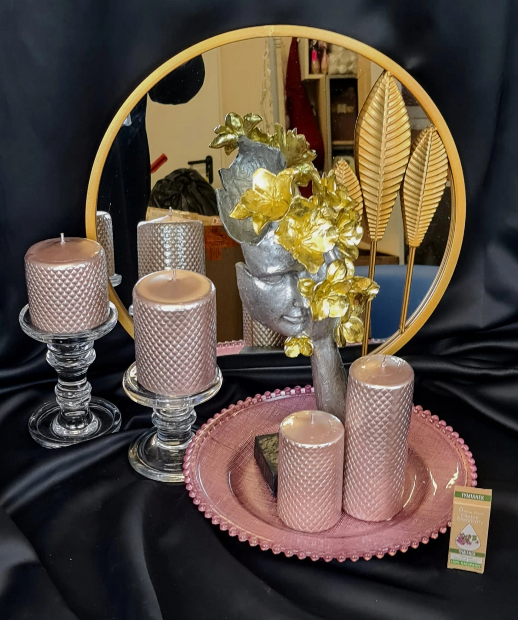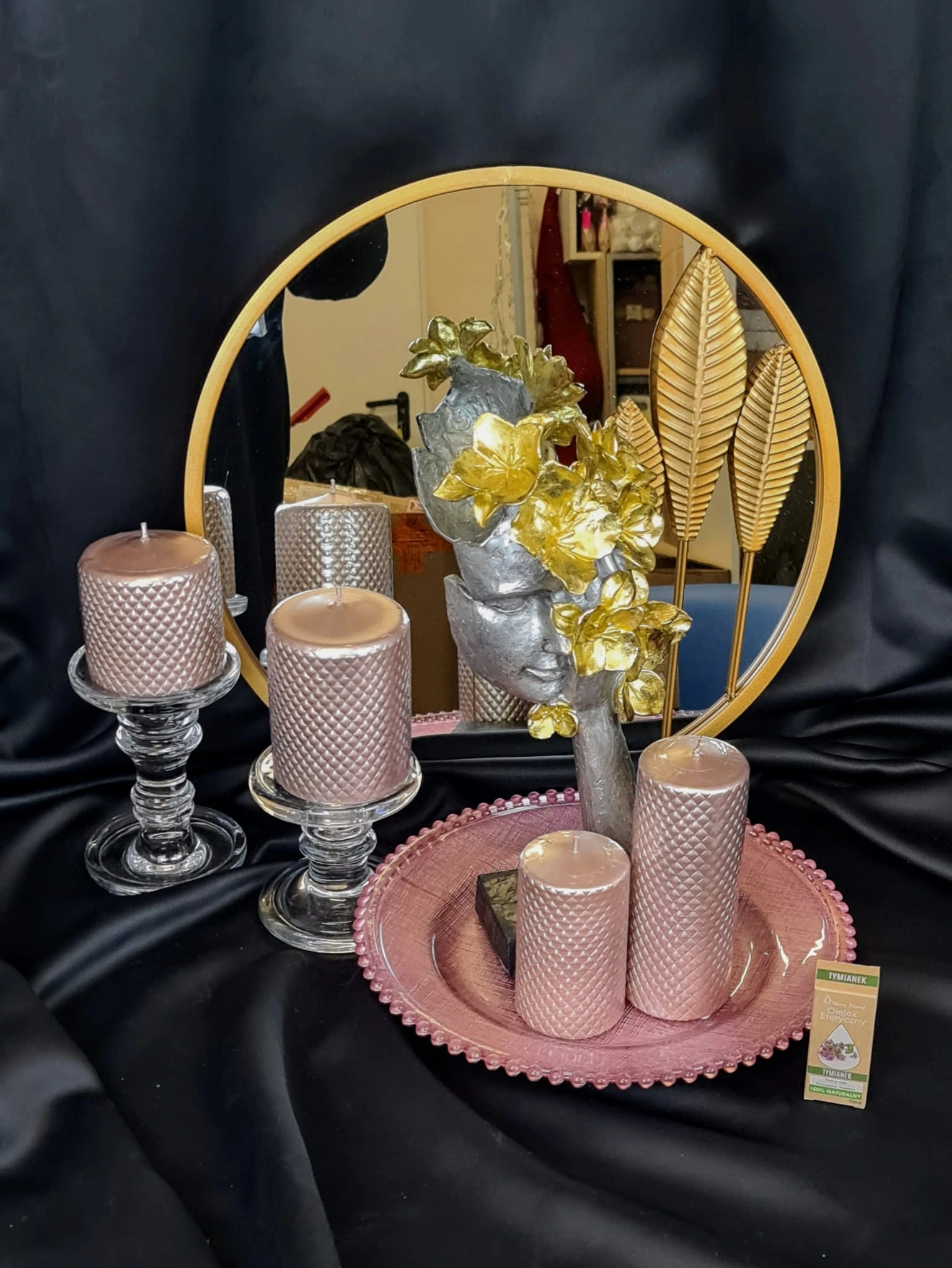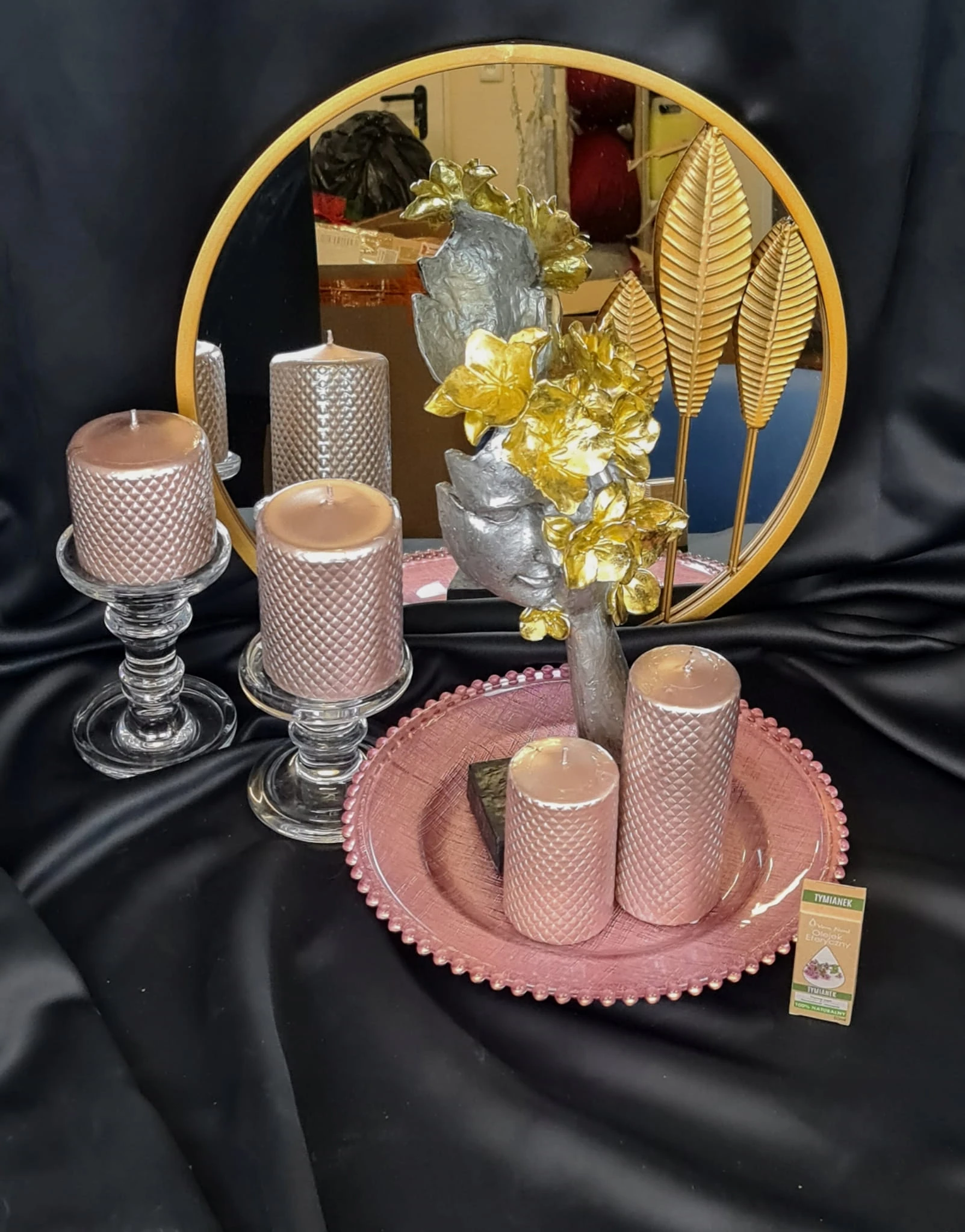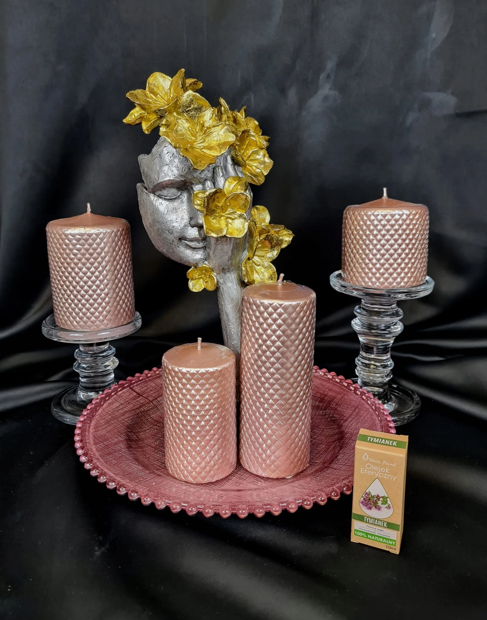 MASKA NA PODSTAWIE Z KWIATAMI SREBRNO-ZŁOTA