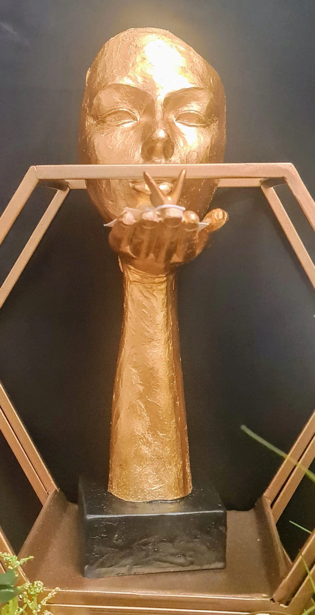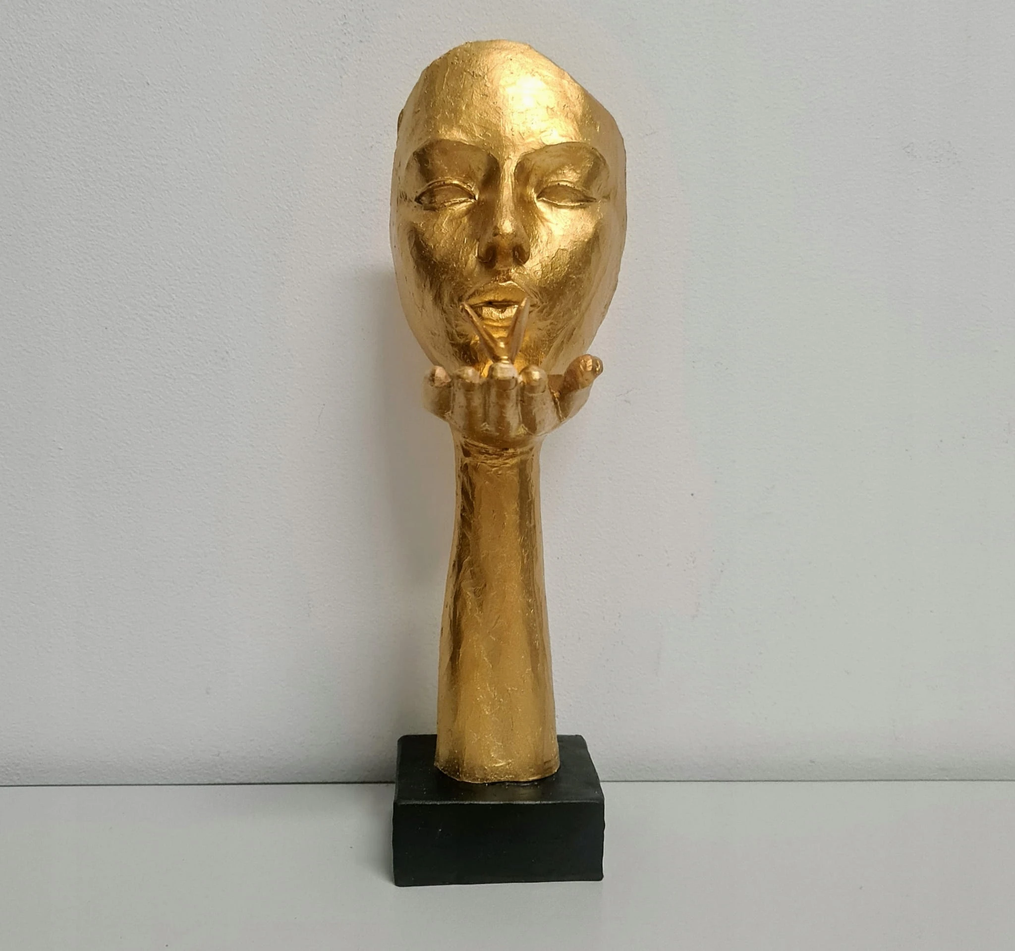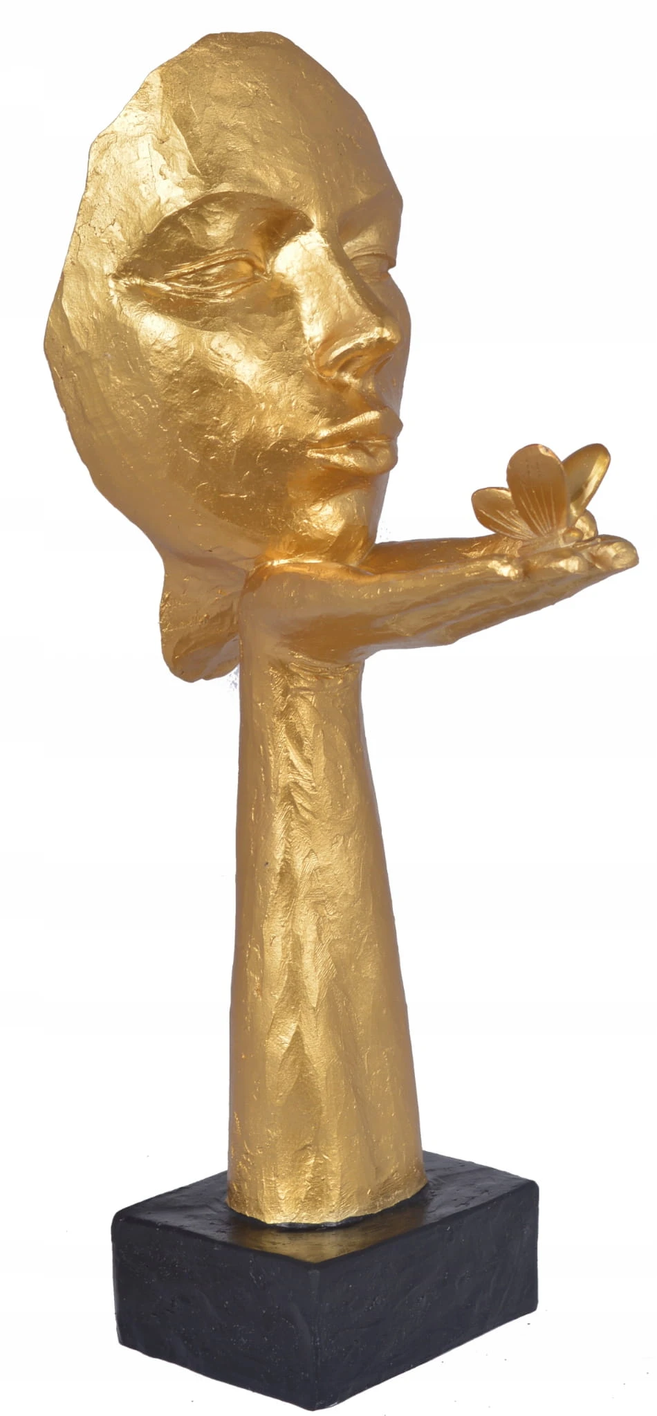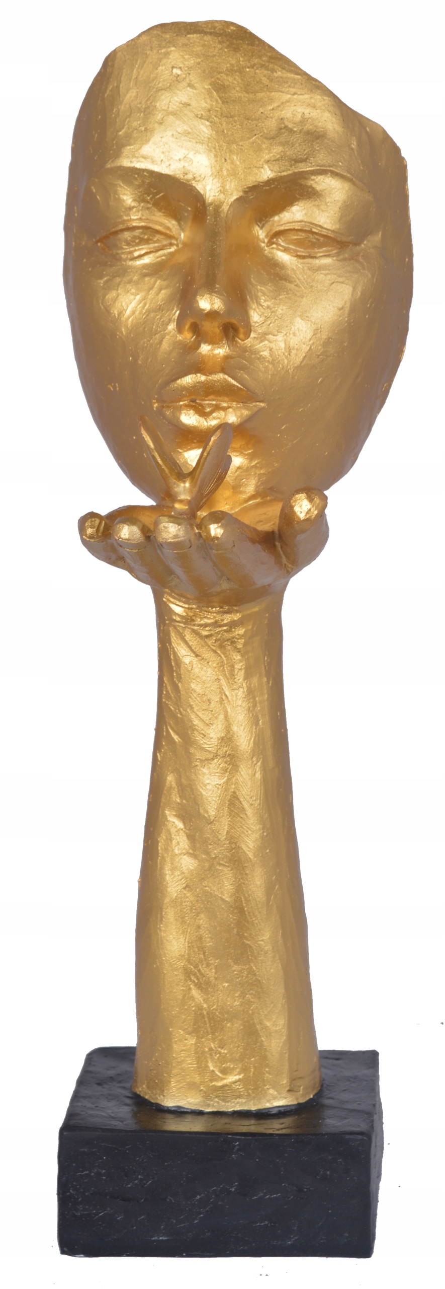 MASKA NA PODSTAWIE Z MOTYLKIEM ZŁOTA H34CM