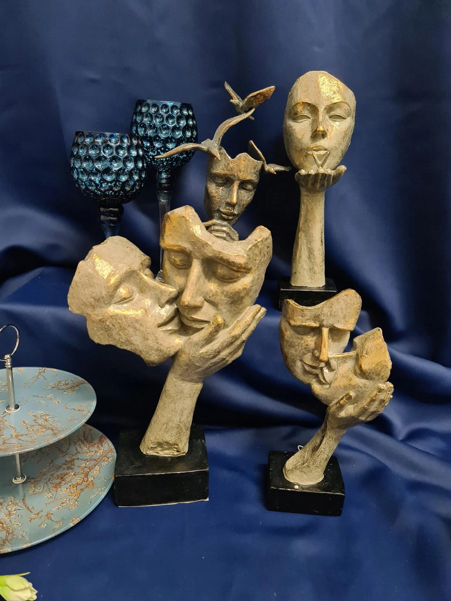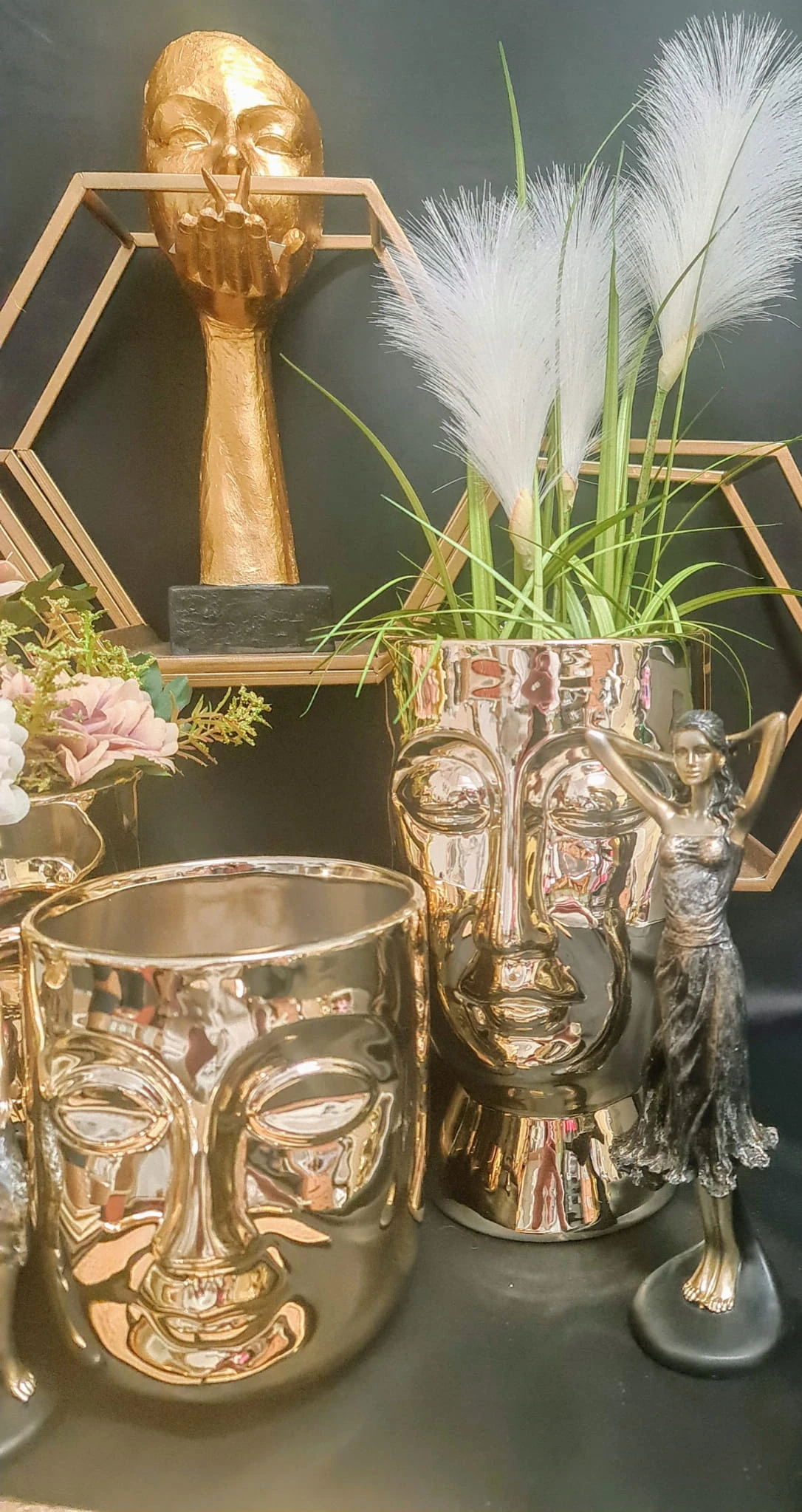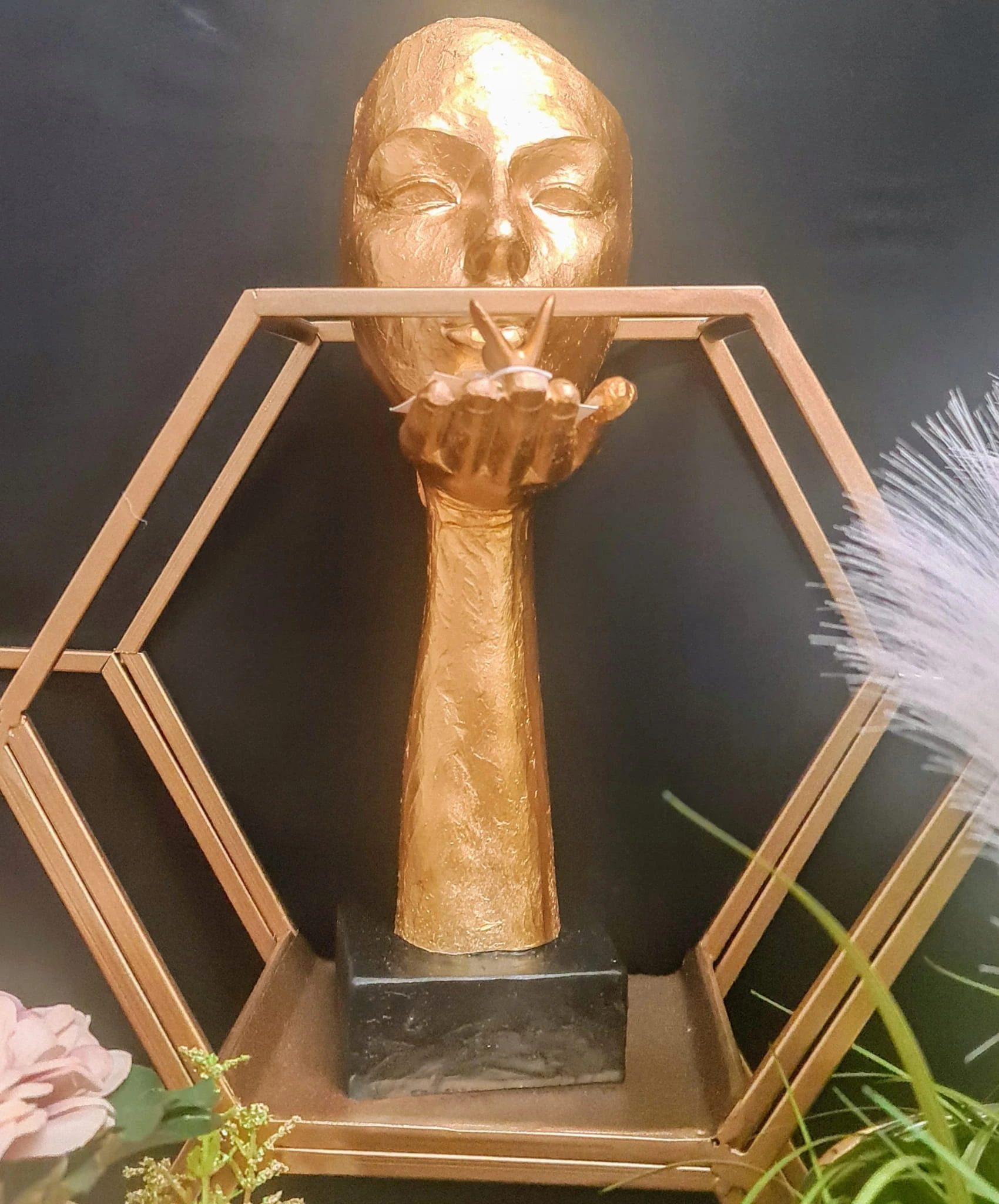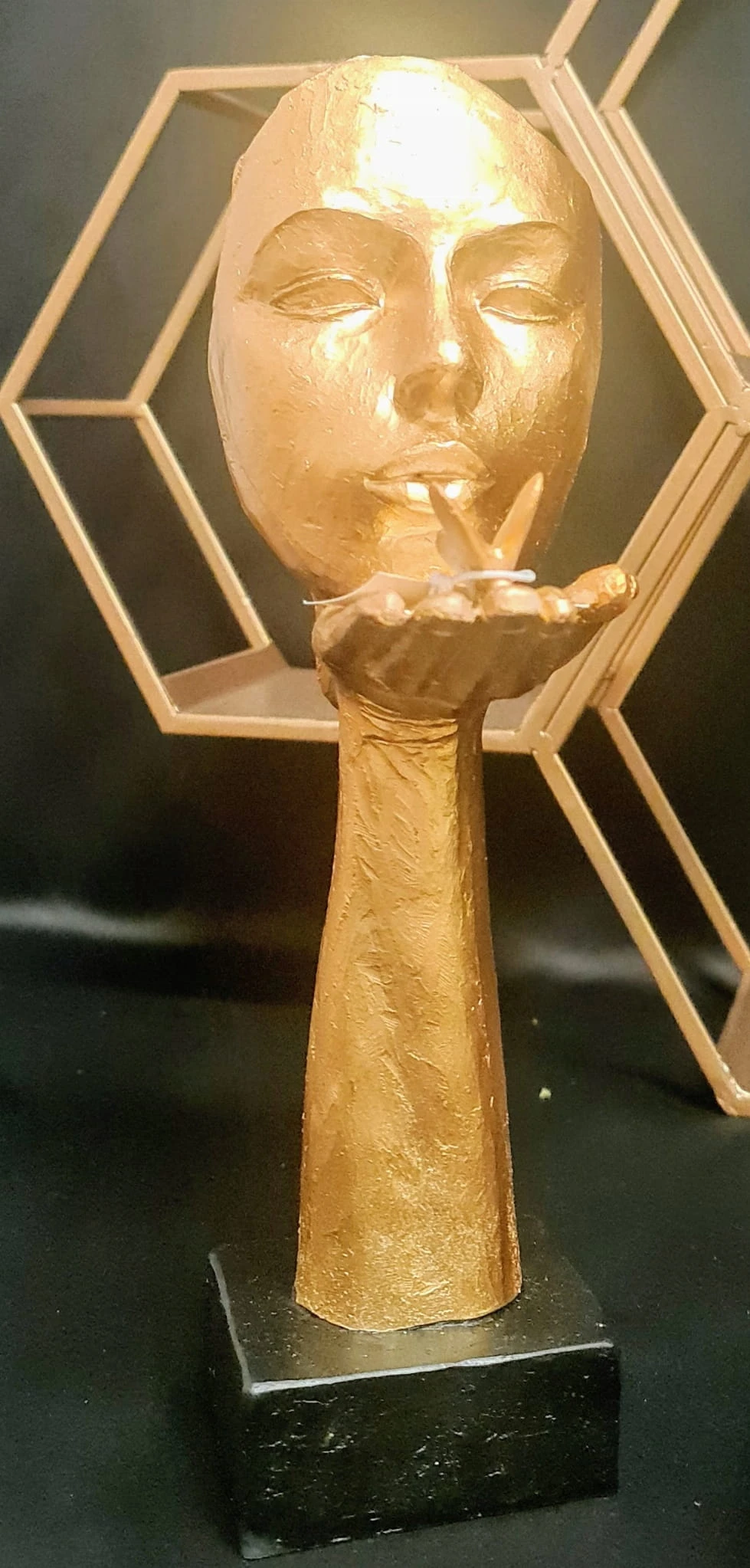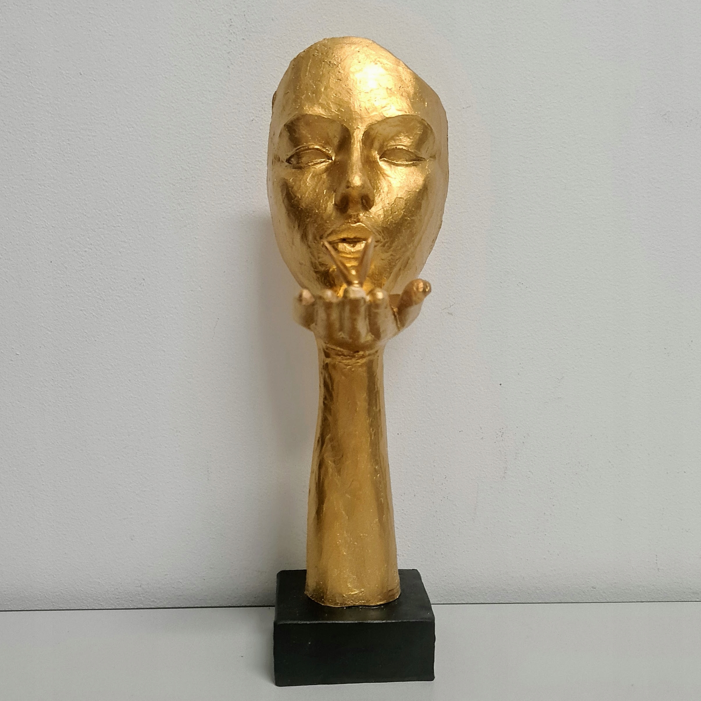 MASKA NA PODSTAWIE Z MOTYLKIEM ZŁOTA H34CM