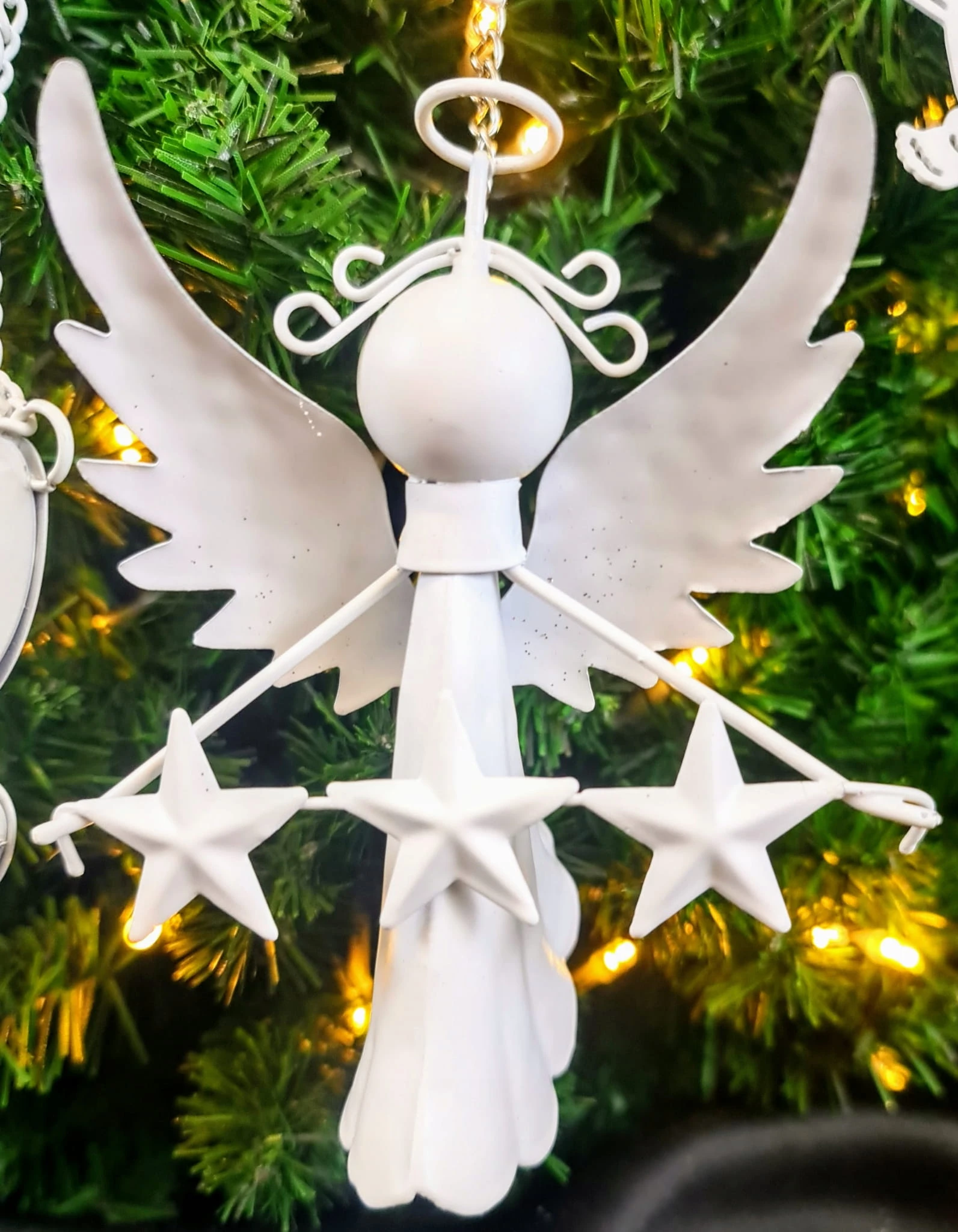 METAL ZAWIESZKA ANIOŁ 14CM BIAŁY BOŻE NARODZENIE