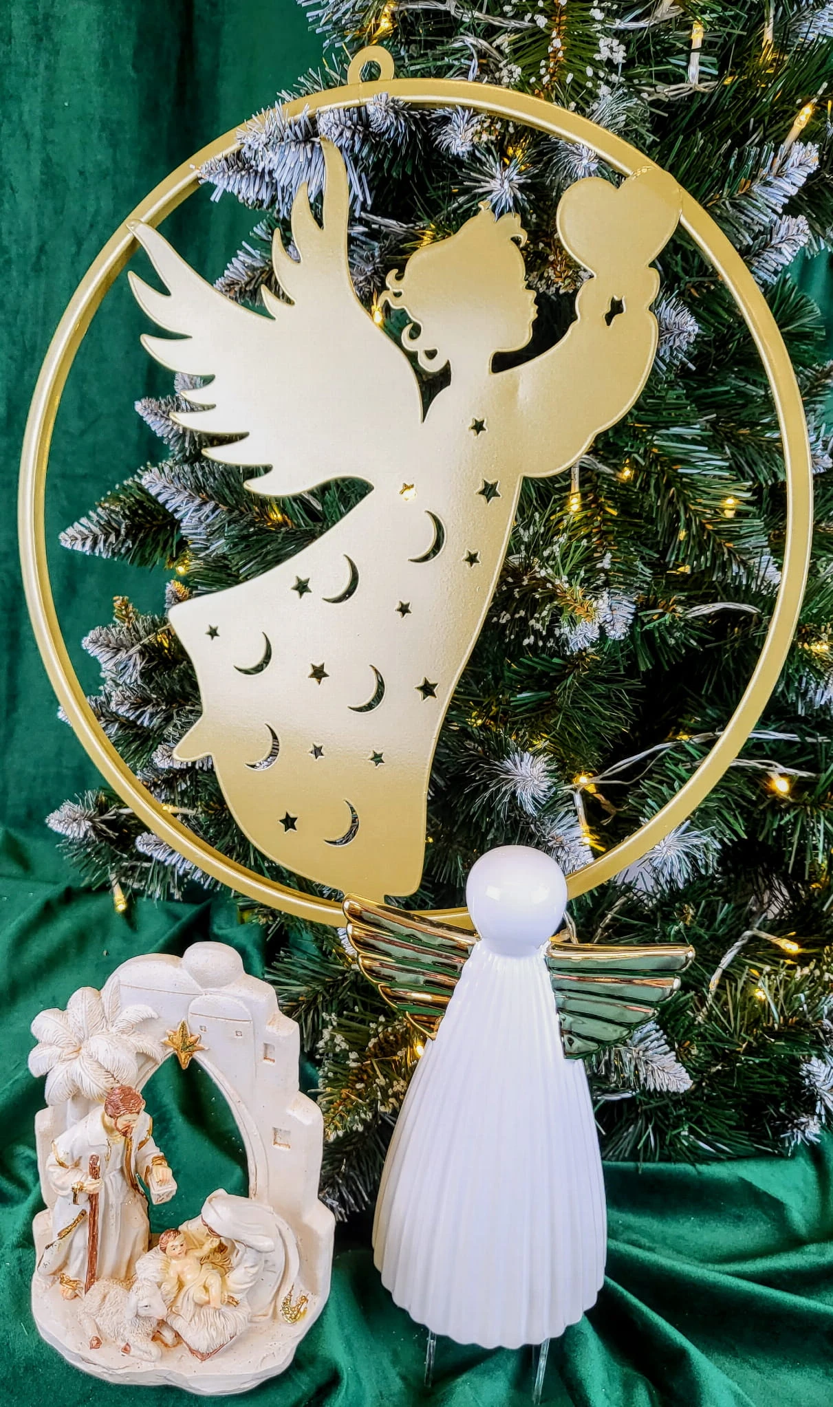 METALOWA DEKORACJA ŚCIENNA ANIOŁ ZŁOTA