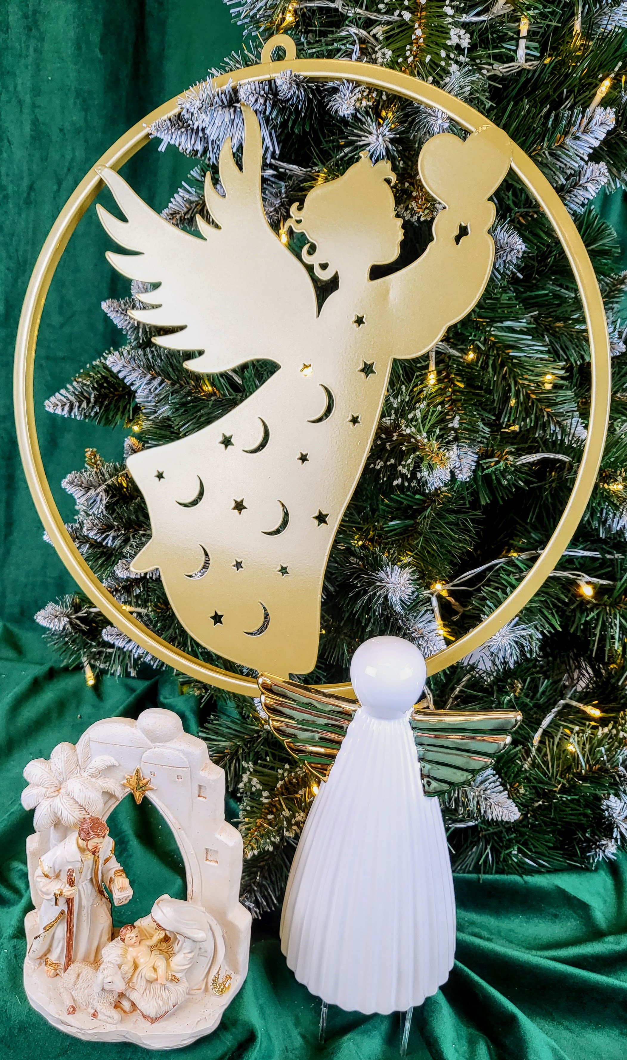 Zawieszka w kształcie dużego aniołka, będzie ciekawym akcentem jako ozdoba w oknie czy też w każdym innym, dowolnym miejscu, któremu chcemy nadać świąteczny charakter.