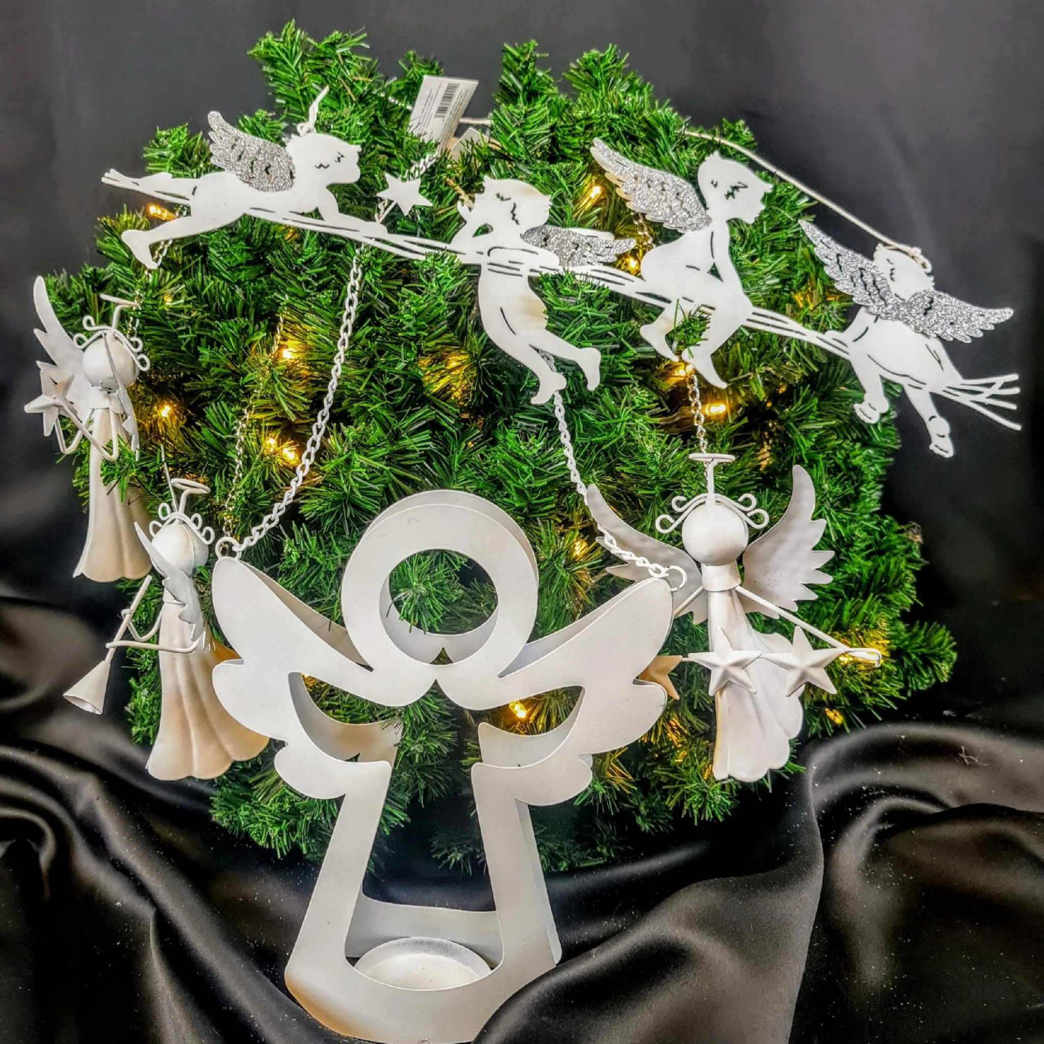 METALOWY ANIOŁ ŚWIECZNIK BIAŁY BOŻE NARODZENIE