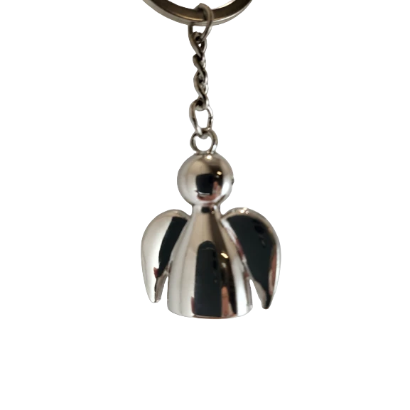 - metalowy brelok w kształcie anioła w srebrnym kolorze